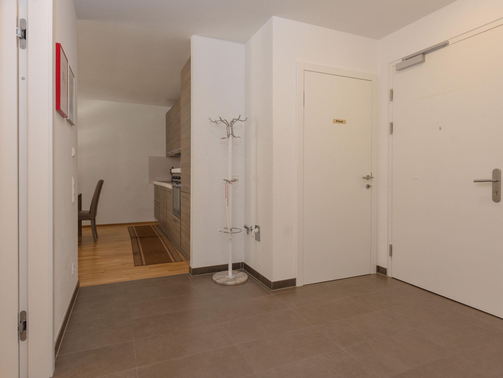 Zu dem Appartement gehört eine Loggia, ausgerichtet nach Süden, die vom Wohnraum sowie von einem Schlafzimmer aus zugänglich ist. Kostenfreies WLAN & Kabel TV lassen für den Gast keine Wünsche offen