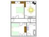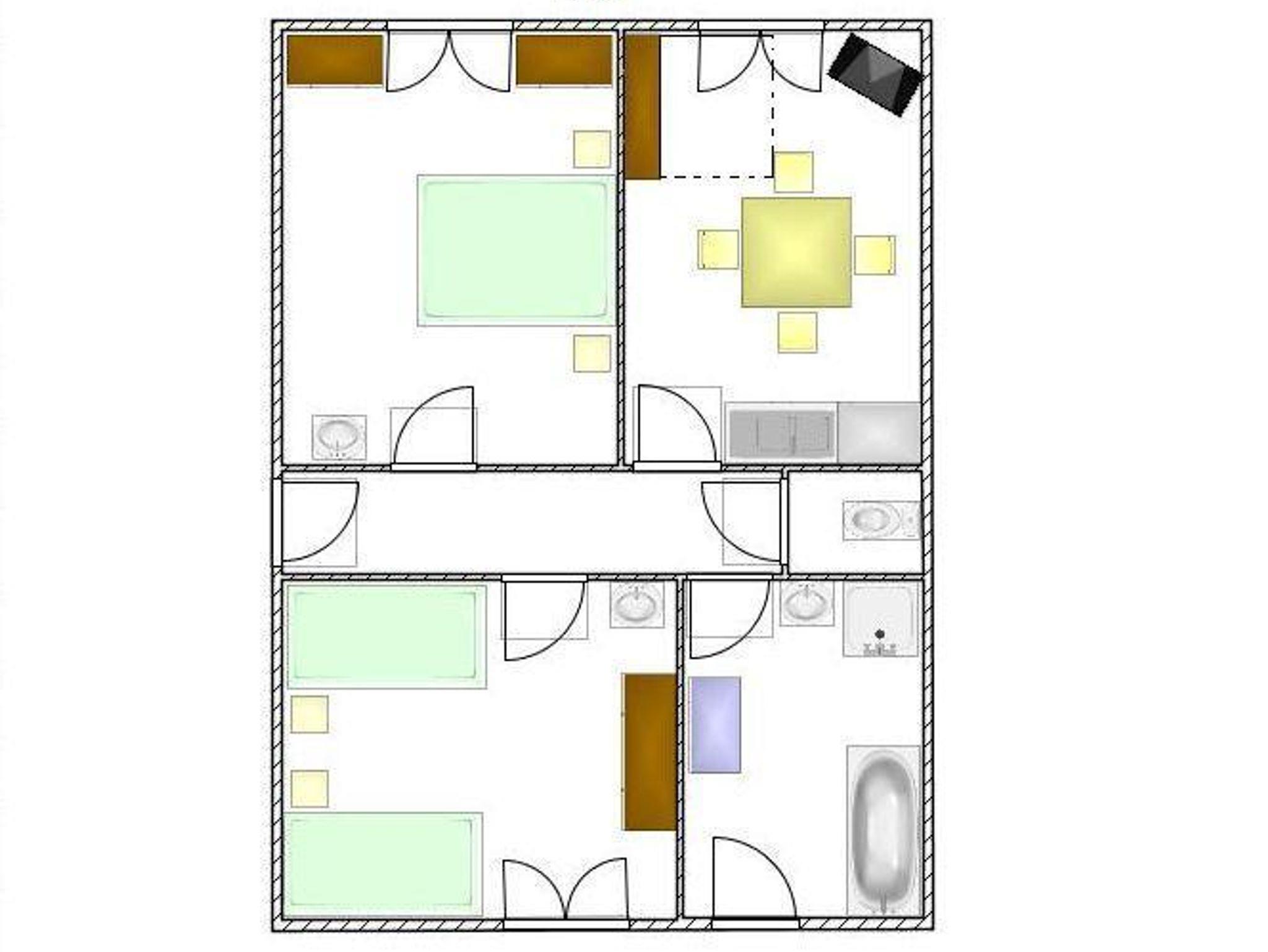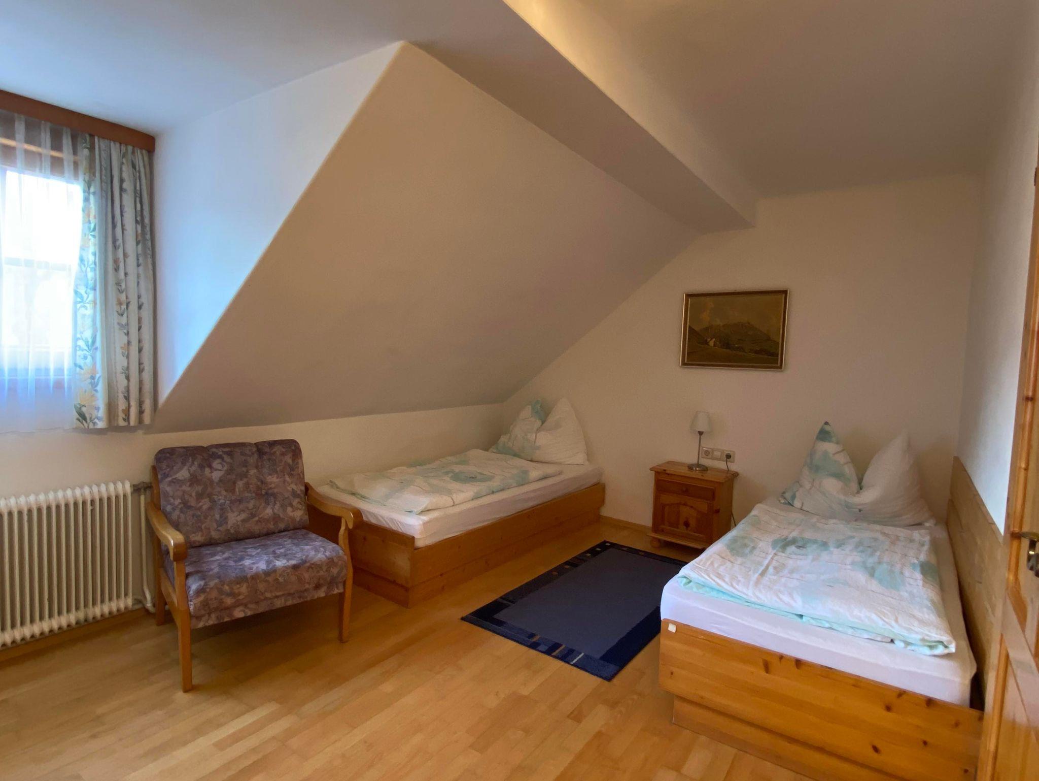 2 Doppelzimmer (eines davon entweder mit 2 Einzelbetten oder auch zusammenstellbar), Wohnküche, Dusche und extra WC
