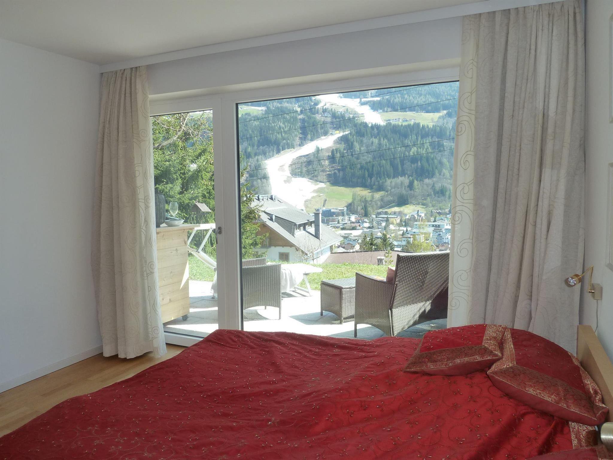 Das exklusive Apartment Leo am Sonnenhang befindet sich direkt in Schladming im malerischen steirischen Ennstal. Mit einer großzügigen Fläche von etwa 100 m² erstreckt sich dieses voll ausgestattete Appartement über eine Haushälfte und bietet einen atemberaubenden Blick auf Schladming, die Planai, die umliegenden Berge und die Hohen Tauern. Diese einzigartige Unterkunft vereint die Vorzüge eines erholsamen Bergurlaubs mit der Nähe zum Stadtzentrum. Beim Bau des Apartments wurden hochwertige Naturmaterialien verwendet, und ein moderner Baustil sowie ein liebevoll gestalteter Innenausbau tragen zu einer besonderen Atmosphäre bei. Das Apartment Leo am Sonnenhang steht für Gemütlichkeit und Komfort, nicht für ausufernde Partys - hier steht Erholung an erster Stelle. Die hochwertige Küche und die luxuriösen Badezimmer lassen keine Wünsche offen.