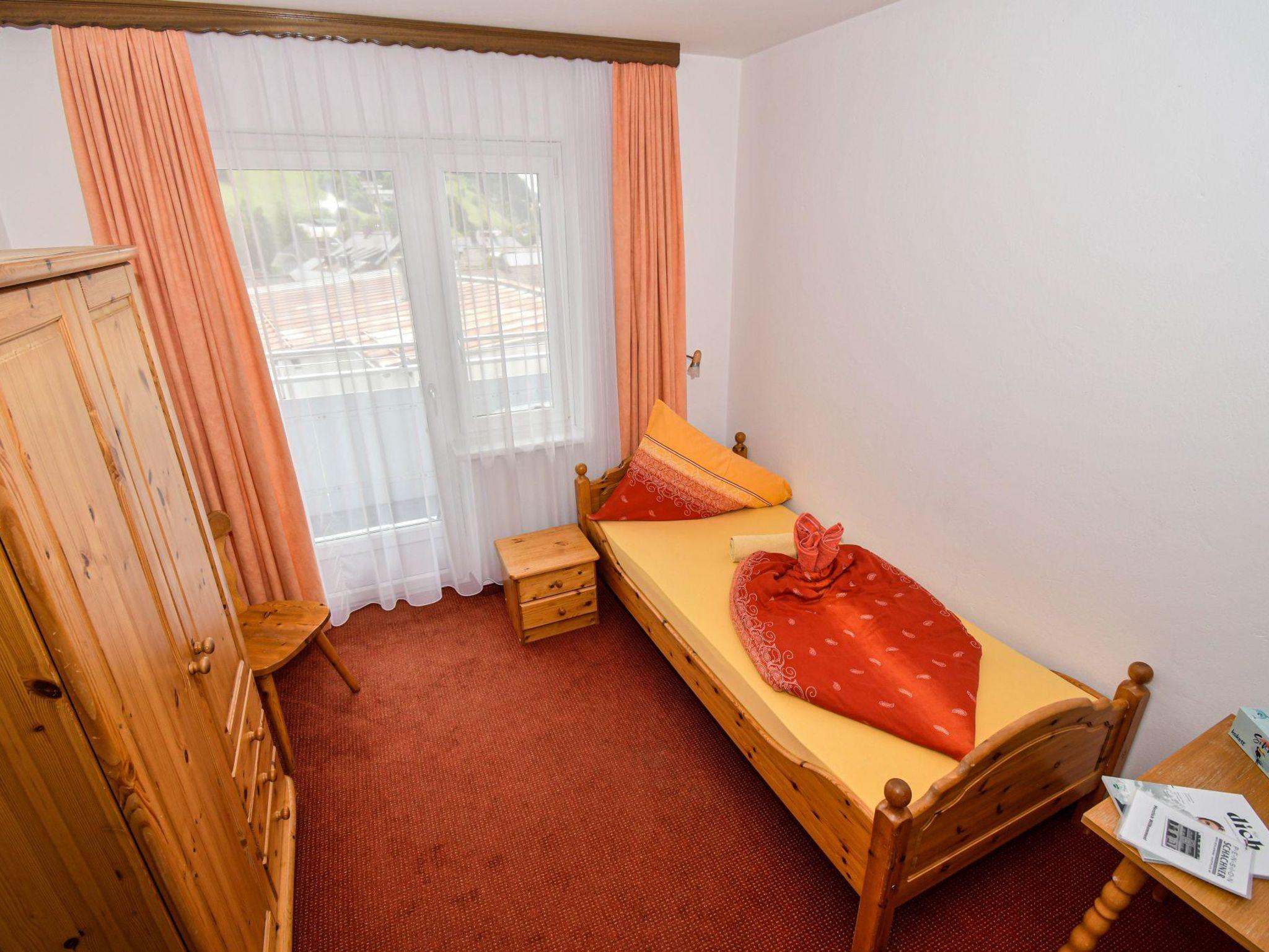 Gemütliches Einzelzimmer im rustikalem Stil mit Balkon und Blick auf Rohrmoos. Das Badezimmer und das WC befinden sich außerhalb des Zimmers auf der selben Etage und werden mit einem weiteren Einzelzimmer geteilt.