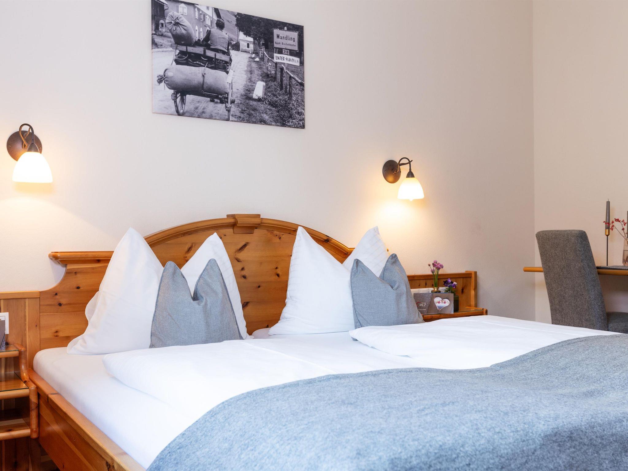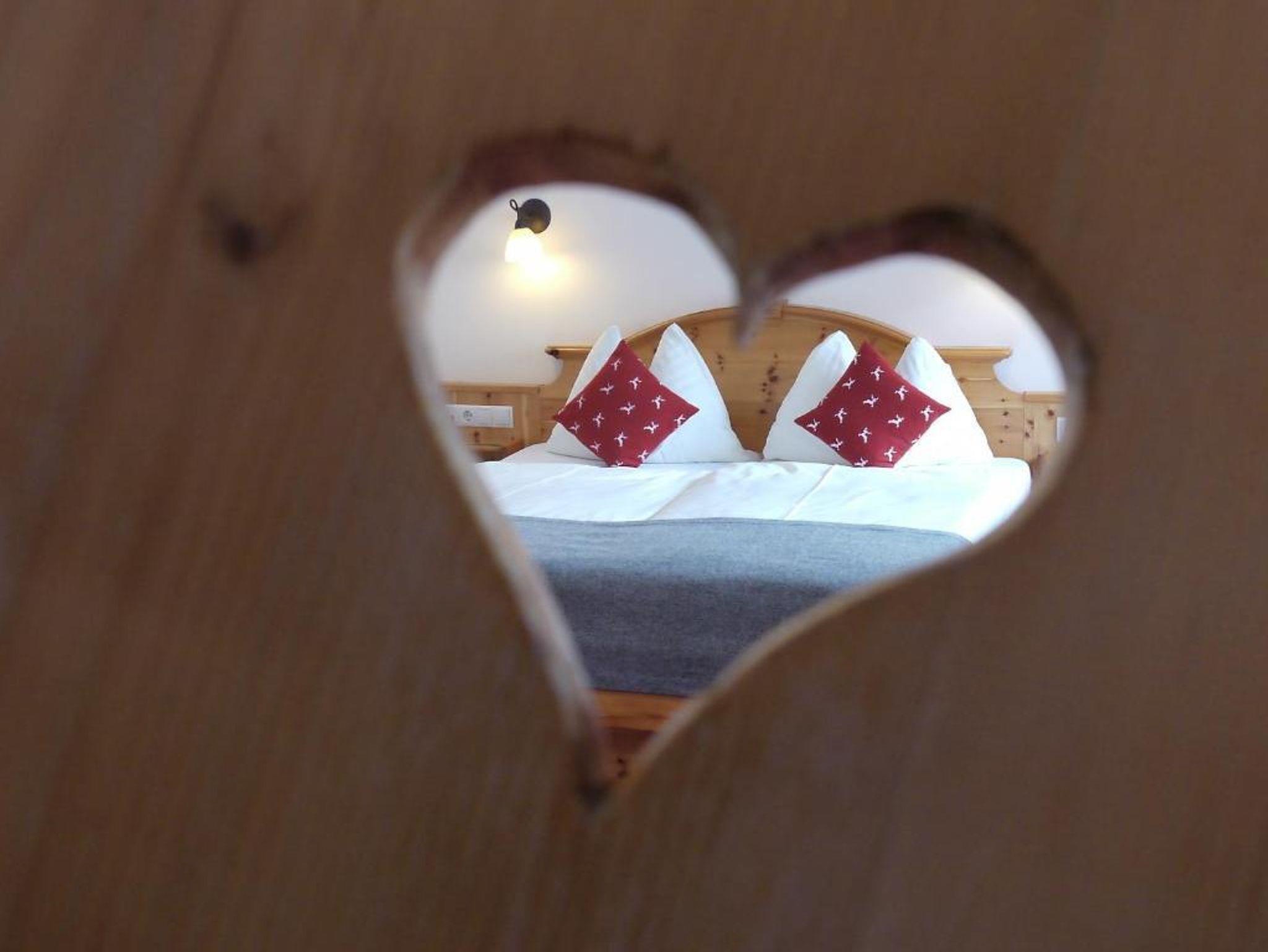 Bei der Einrichtung der Zimmer wurde bewusst darauf geachtet, Materialien aus der Region zu integrieren. Die Möbel wurden aus Zirbenholz gefertigt. Die besondere Eigenschaft der Zirbe, den Herzschlag zu verlangsamen, führt dazu, dass Dein Herz sich täglich eine Stunde Arbeit spart und Du erholt in den neuen Tag startest.