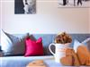 Die Bäder wurden mit Fliesen in Marmor aus der Region gestaltet und das Sofa aus dem typischen Schladminger Loden verleiht dem Zimmer eine gemütliche Atmosphäre.