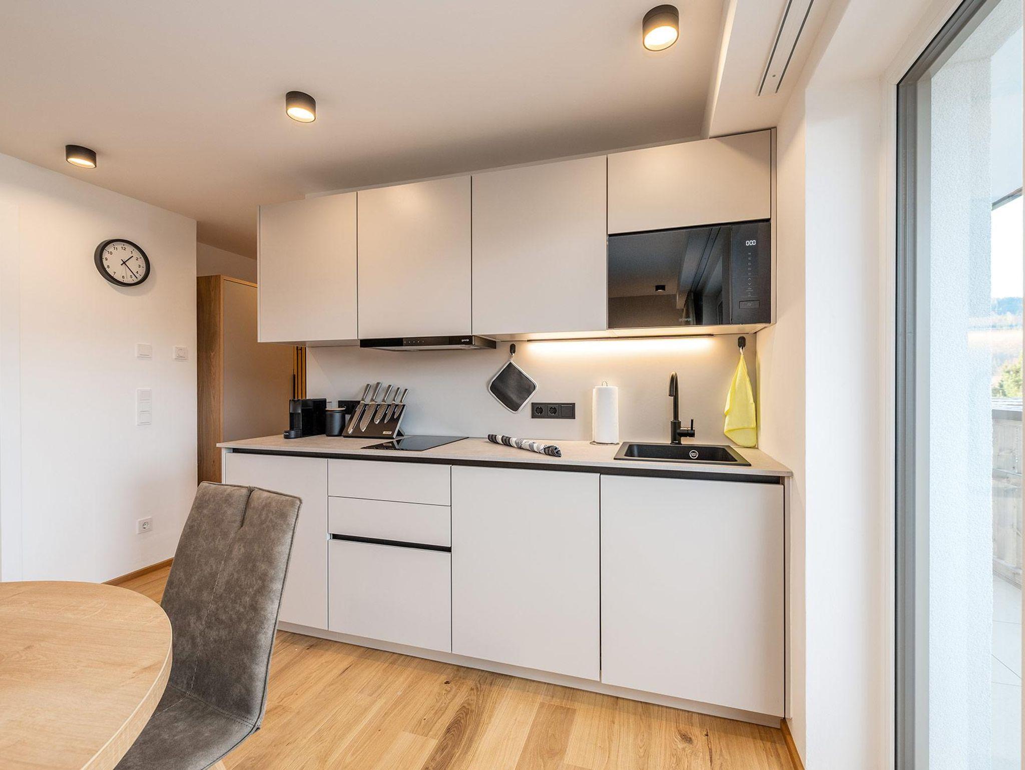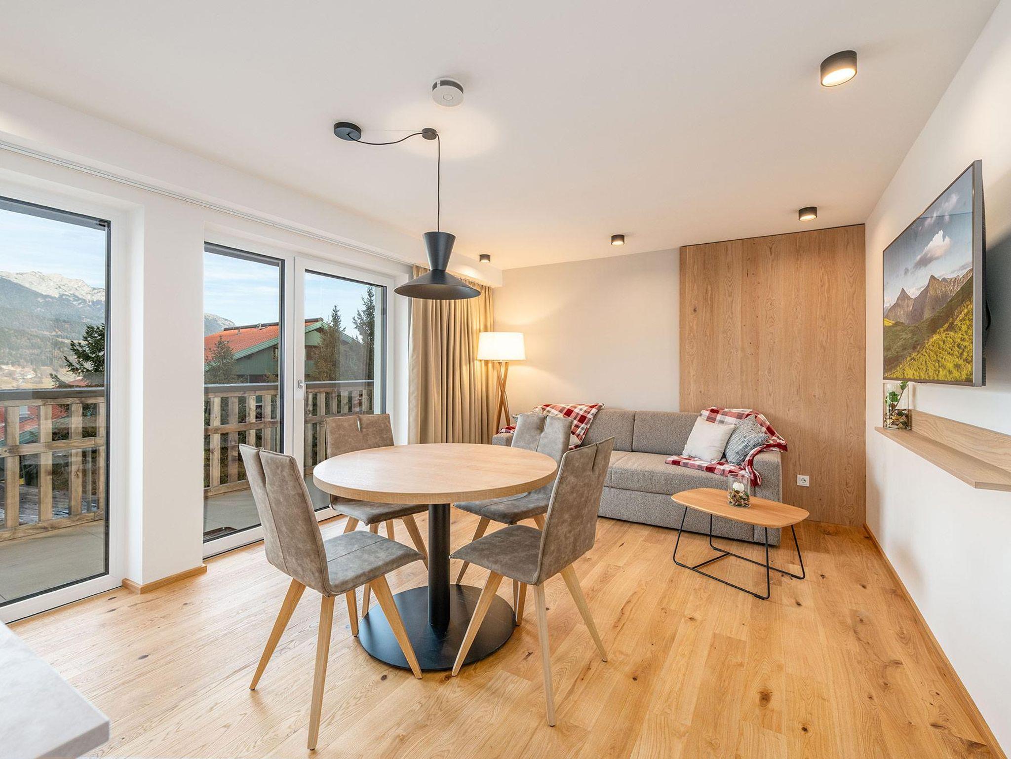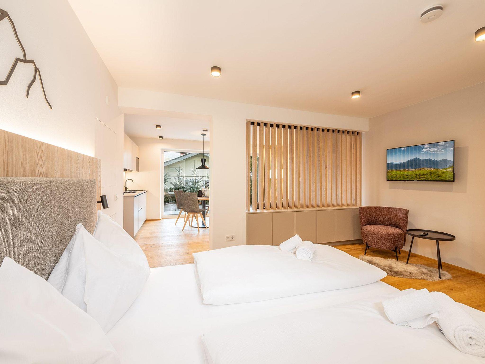 Dieses hochwertig komplett neu ausgebaute Apartment vereint zeitlose Tischlerqualität mit alpiner Eleganz – geschaffen für Gäste mit Sinn für Design, Lage und Aussicht. Auf 47 m² erwartet Sie ein stilvoller Rückzugsort mit getrenntem Wohn- und Schlafzimmer, der durch warme Materialien, klare Linien und eine geschmackvolle Einrichtung überzeugt.