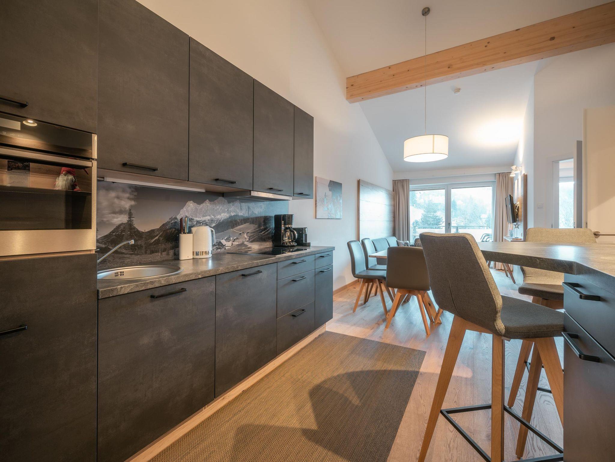 Eben alles was man so braucht. By the way: Das Auto kannst du in der Tiefgarage lassen. Servus im Gustav – 8 Appartements von Smart bis Sky – außerdem mit dabei: Private Sauna im Appartement, eigene Terrasse oder Balkon Top 8 hat keine Balkon, komplett ausgestattete Küchen mit allem PiPaPo, 1-2 Schlafzimmer und Bäder sowie eine Aussicht nach Westen auf die Hochwurzen und das eine oder andere Chi-Chi.
