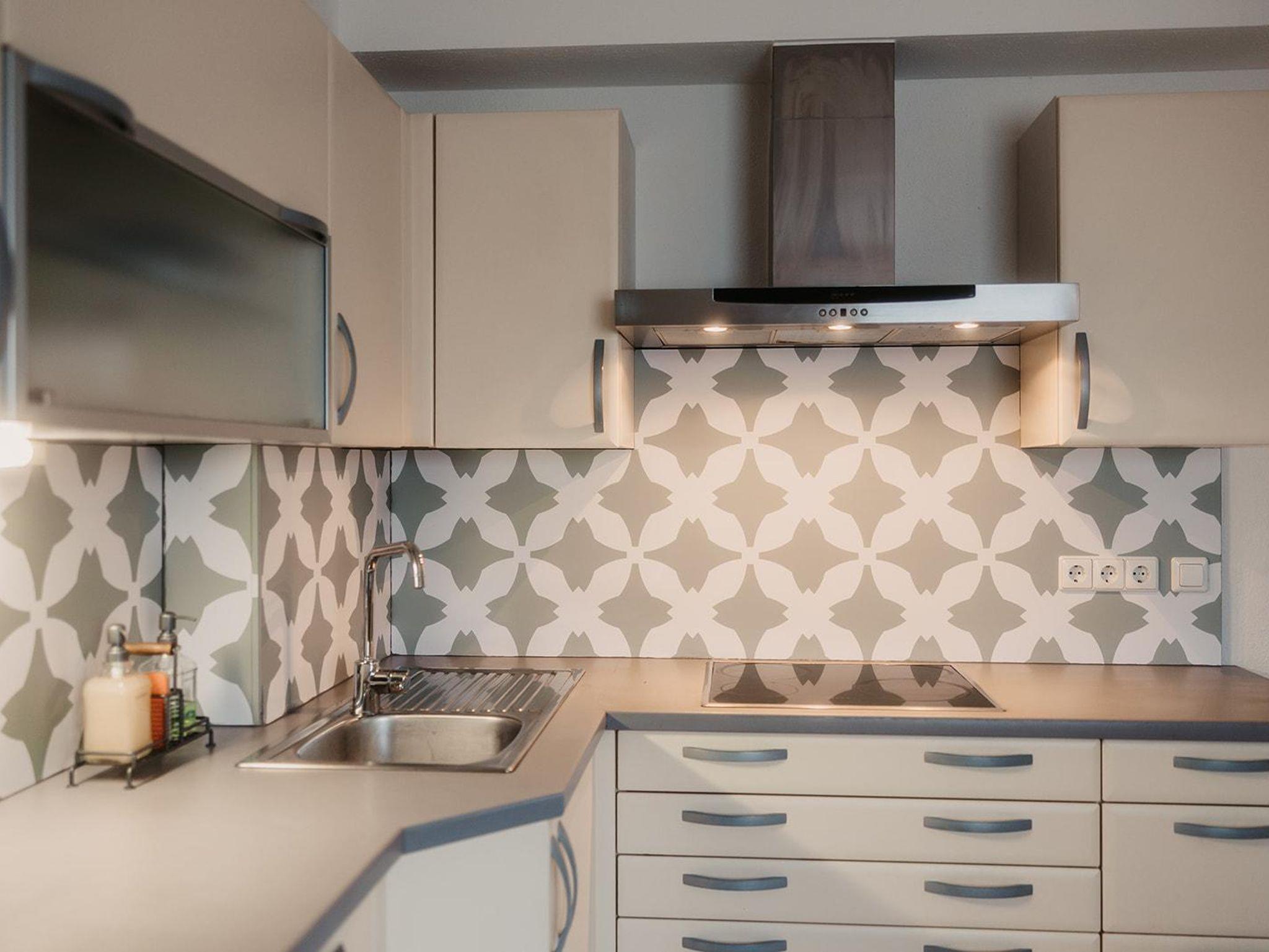 Die Küche ist gut ausgestattet und du hast von Kaffeemaschine, Toaster über Mikrowelle alles da.