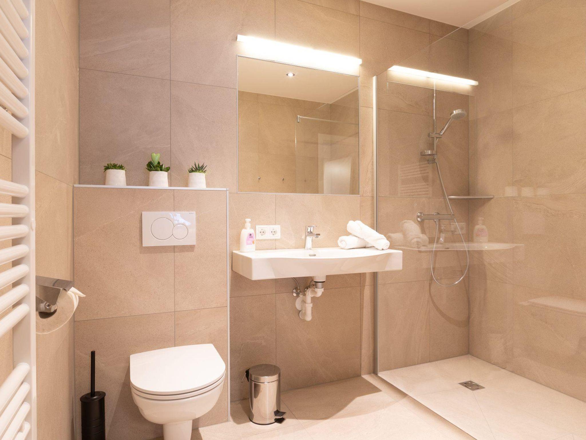 Die neuen Appartements befinden sich im Parterre, in dem 3 - 5 Personen auf ca. 45 m² Wohnfläche Platz finden und verfügen über ein Badezimmer. Die Küche ist voll ausgestattet und bietet einen einladenden Wohn- und Essbereich mit großem Esstisch und Schlafsofa. Bettwäsche und Handtücher sind inklusive.