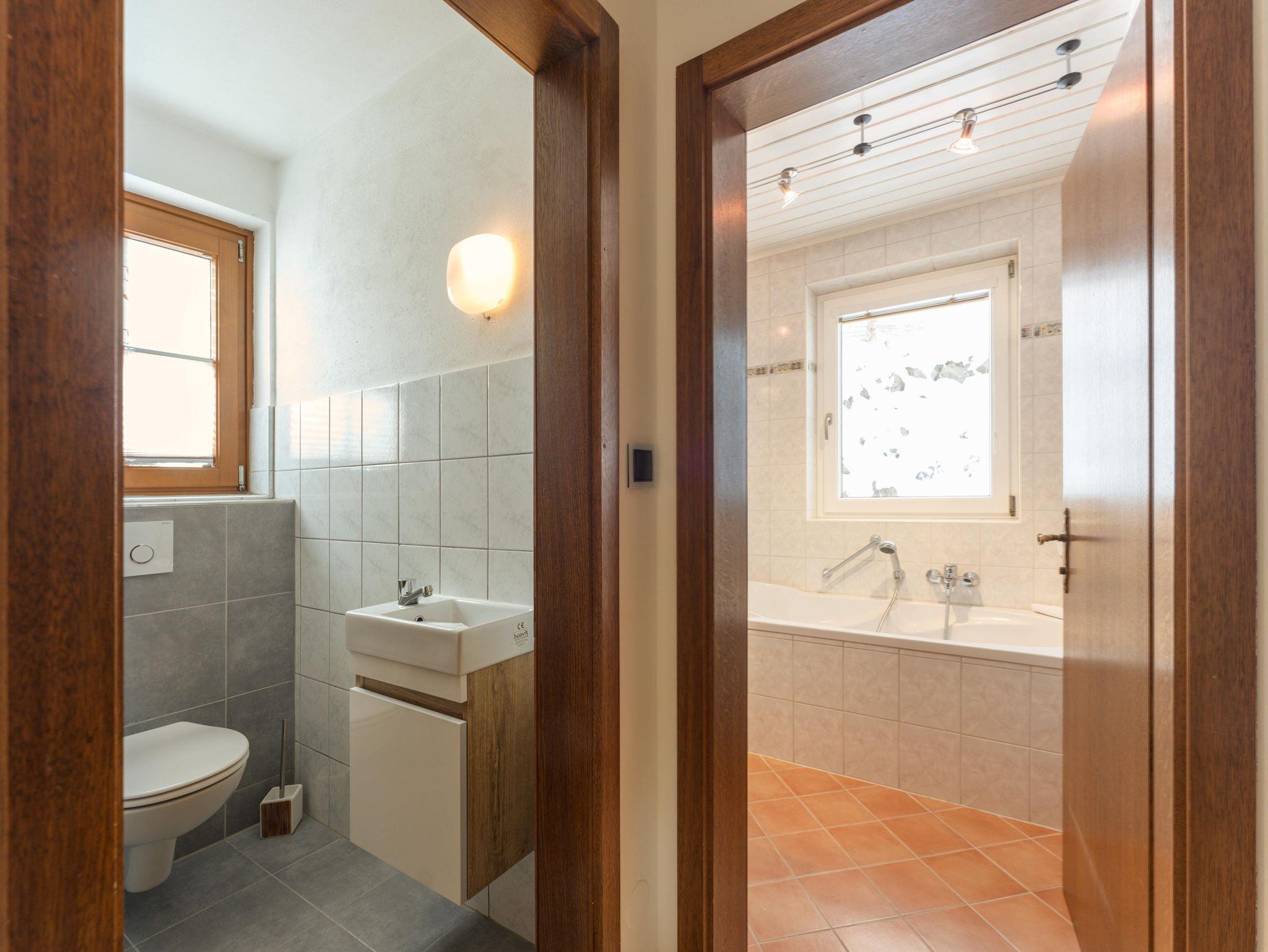 Top 2: 4 Personen - Im 2. Stock des Hauses teilt sich die Wohnfläche von 60 m² in eine Küche mit Essbereich, 2 separate Schlafzimmer mit Flatscreen, zwei Badezimmer sowie einen großzügigen Vorraum. Zudem verfügt die Ferienwohnung über zwei getrennte, großzügige Balkone die nach Nord sowie nach Süd ausgerichtet sind. Die Ausstattung des Appartements ist elegant-rustikal und zeichnet sich vor allem durch Komfort und Gemütlichkeit aus.