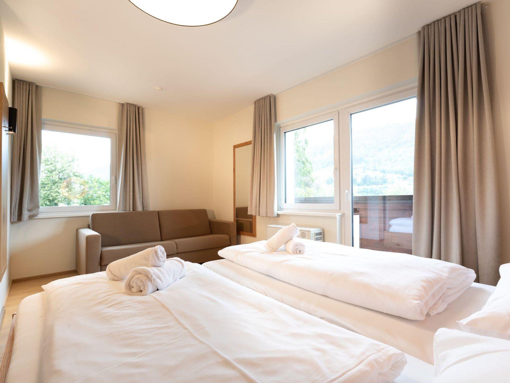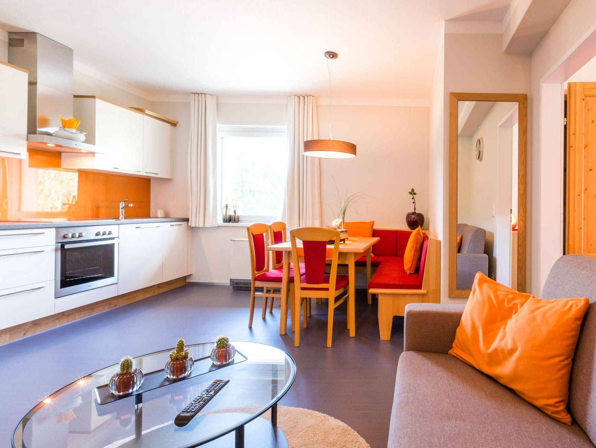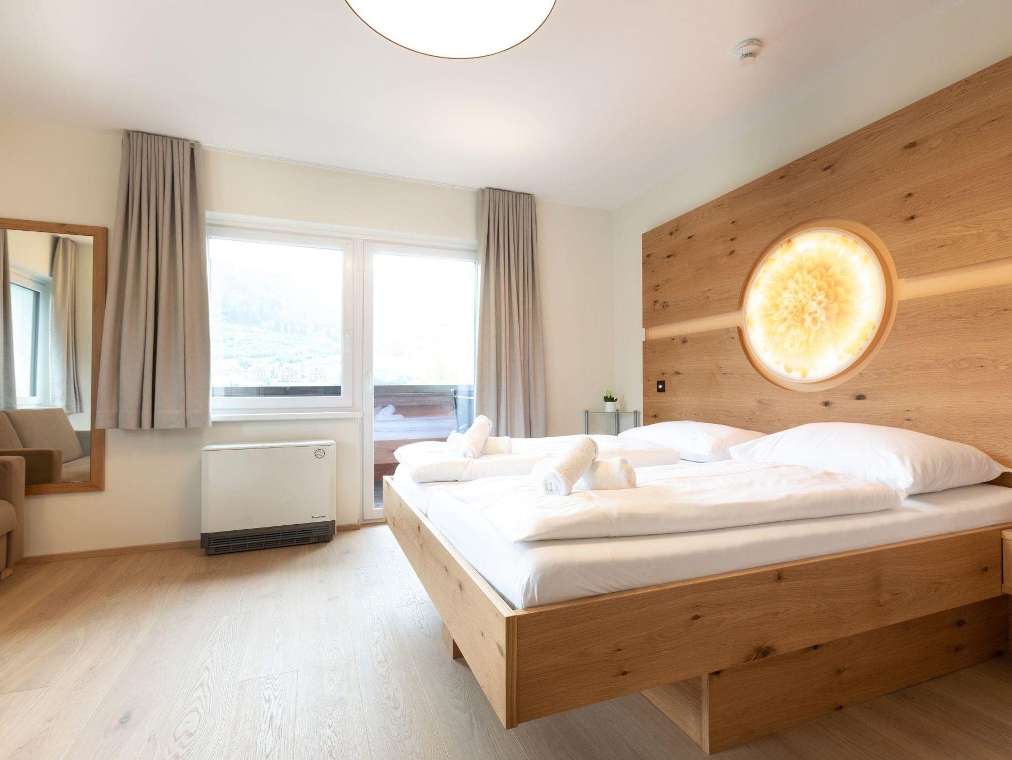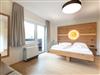 In der Kategorie Appartement Family 1 Schlafzimmer mit Balkonsteht Ihnen ein besonders familienfreundliches Zweiraumappartement im zweiten Stock zur Verfügung, in dem 3 – 6 Personen auf ca. 48 m² Wohnfläche urlauben. Erholung und angenehme Träume finden Sie im Familienschlafzimmer mit King-Size-Bett, Doppelcouch und Dusche mit WC. Die Küche ist voll ausgestattet und bietet einen einladenden Wohn- und Essbereich mit großem Esstisch und Doppelcouch. Bettwäsche und Handtücher sind inklusive. Vom großzügigen Balkon aus blicken Sie zum eindrucksvollen Dachstein-Massiv.