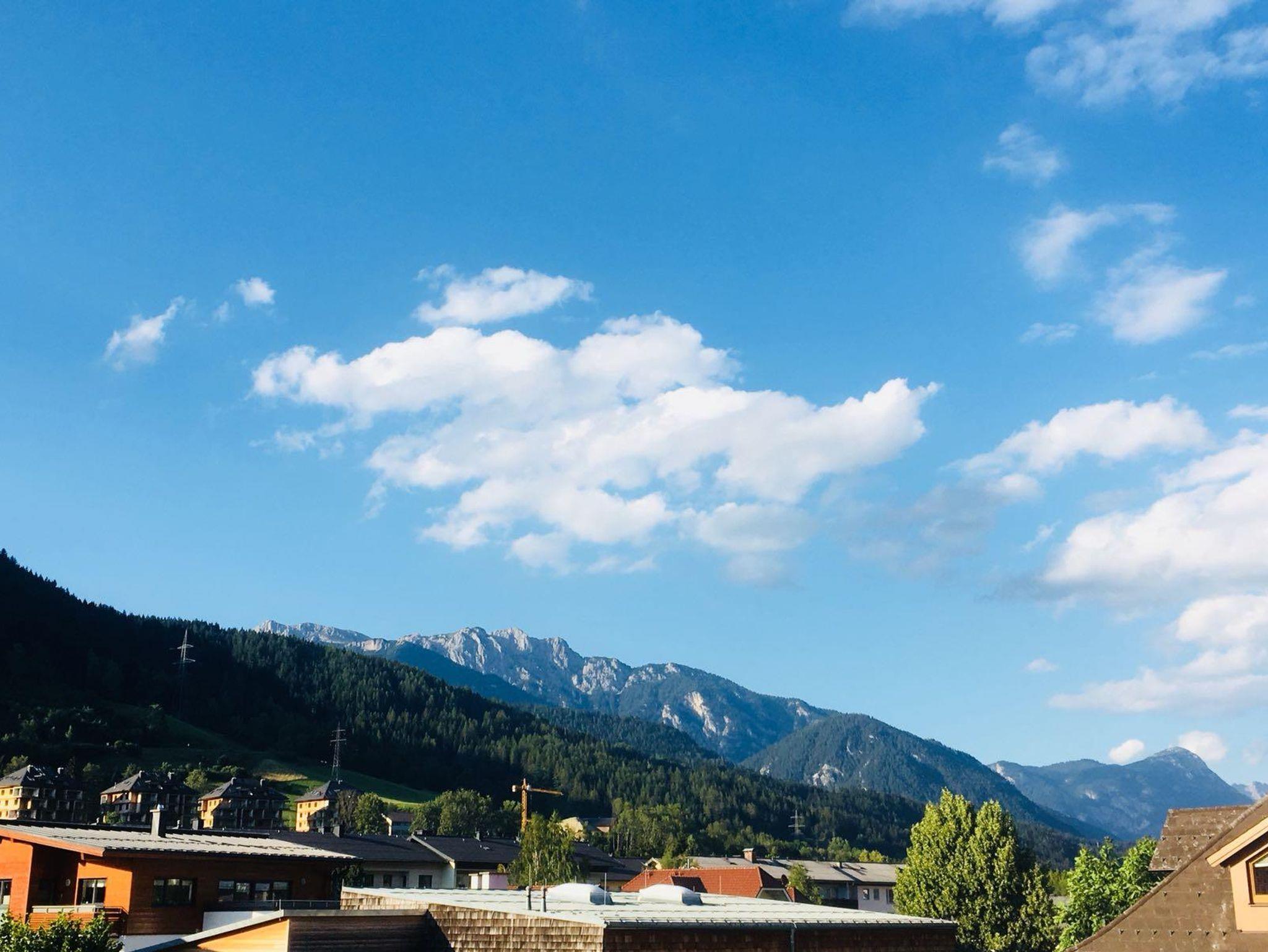 Die Loggia bieten Ihnen einen Panoramablick auf die Berge Planai und Dachstein Massiv.