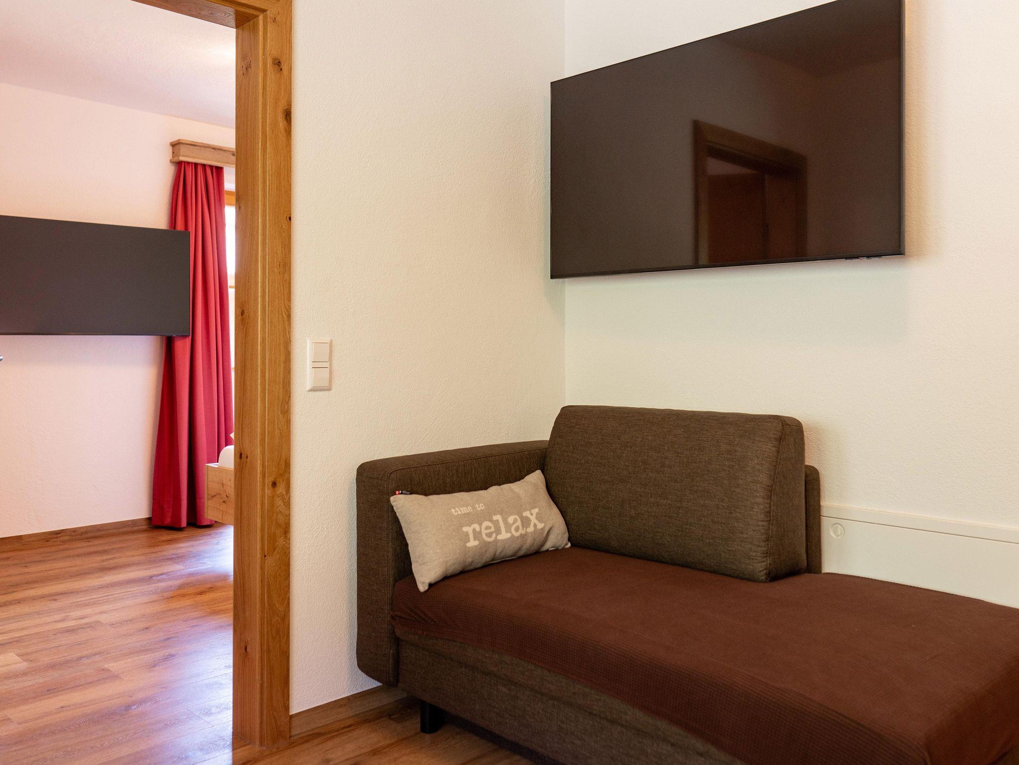 Die Ferienwohnung Bergidyll ist ideal für 2 Erwachsene und 1 bis 2 Kinder. Großer Balkon mit gutem Blick und perfekt für den Nachmittagsschlaf. Das Appartement hat eine Wohnküche mit Schlafcouch für 1 Person in Top Qualität, ein Schlafzimmer mit Doppelbett und Zusatzbett, ein Badezimmer mit Dusche und WC und einen Balkon.