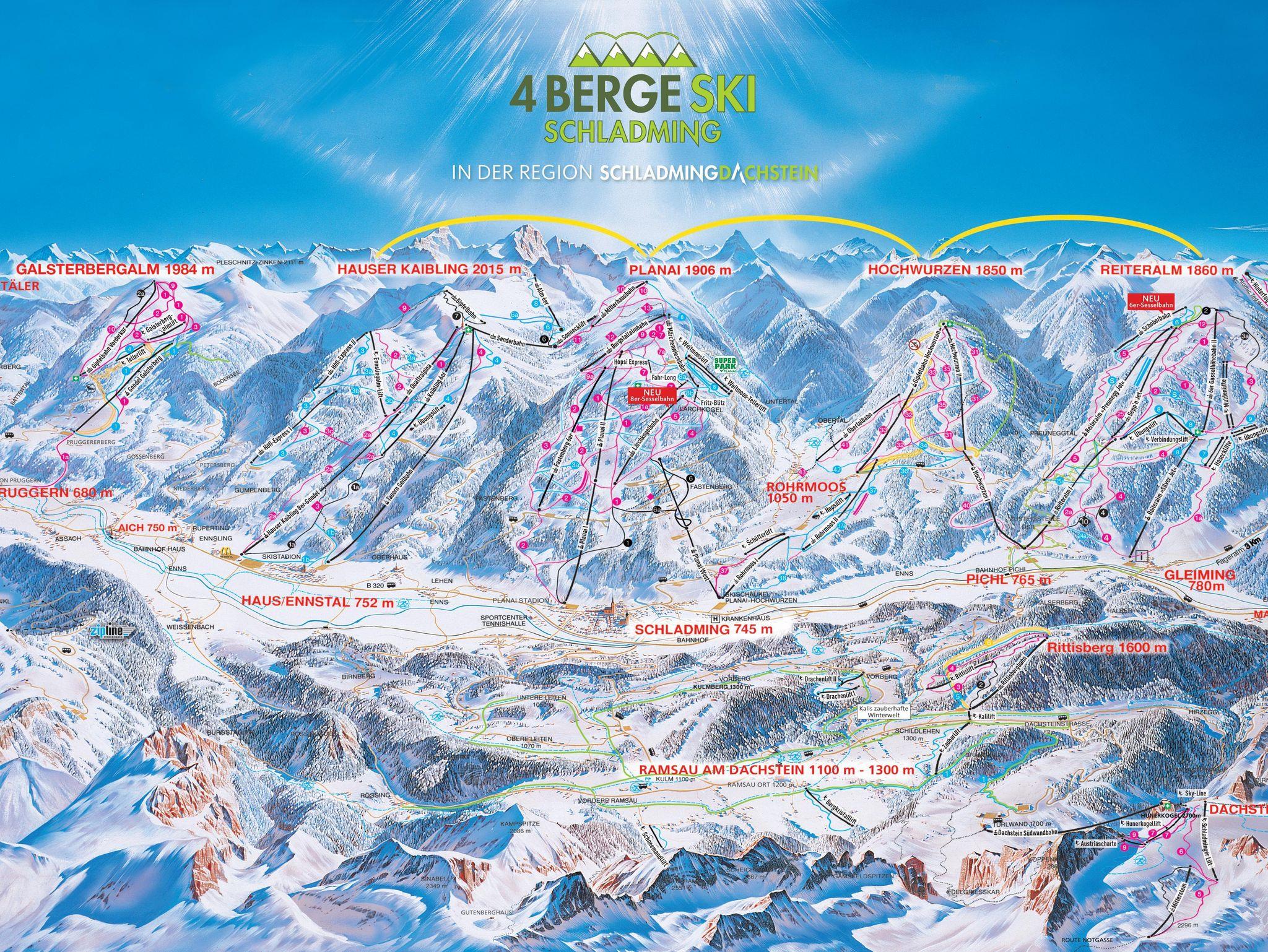 • Winter: In nur 5 Gehminuten erreichst du die Skipiste und steigst in die 4-Berge-Skischaukel (Planai – Hochwurzen – Hauser Kaibling – Reiteralm) ein. Schneeschuh- und Winterwanderwege, die Rodelbahn auf der Hochwurzen (Tag & Nacht) sowie ein weitläufiges Langlaufloipennetz sind ebenfalls schnell erreichbar.