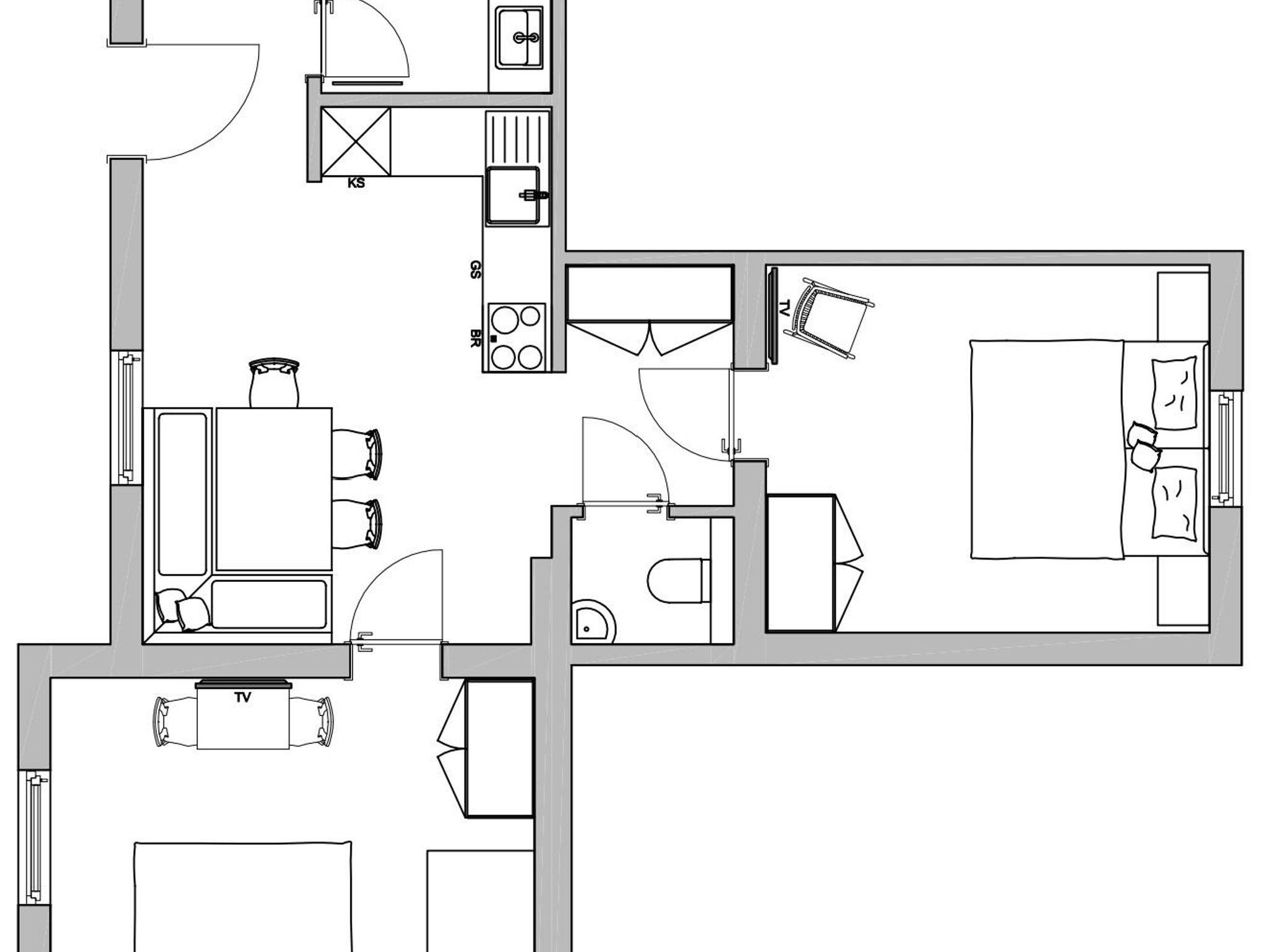 Die Ferienwohnung verfügt über zwei getrennte Schlafzimmer – beide mit TV – sowie eine voll ausgestattete Küche, in der Kaffee, Tee und wichtige Gewürze bereits für dich bereitstehen. Badezimmer und WC sind getrennt, und eine Waschmaschine sorgt für zusätzlichen Komfort. Kostenloses Internet ist selbstverständlich inklusive.