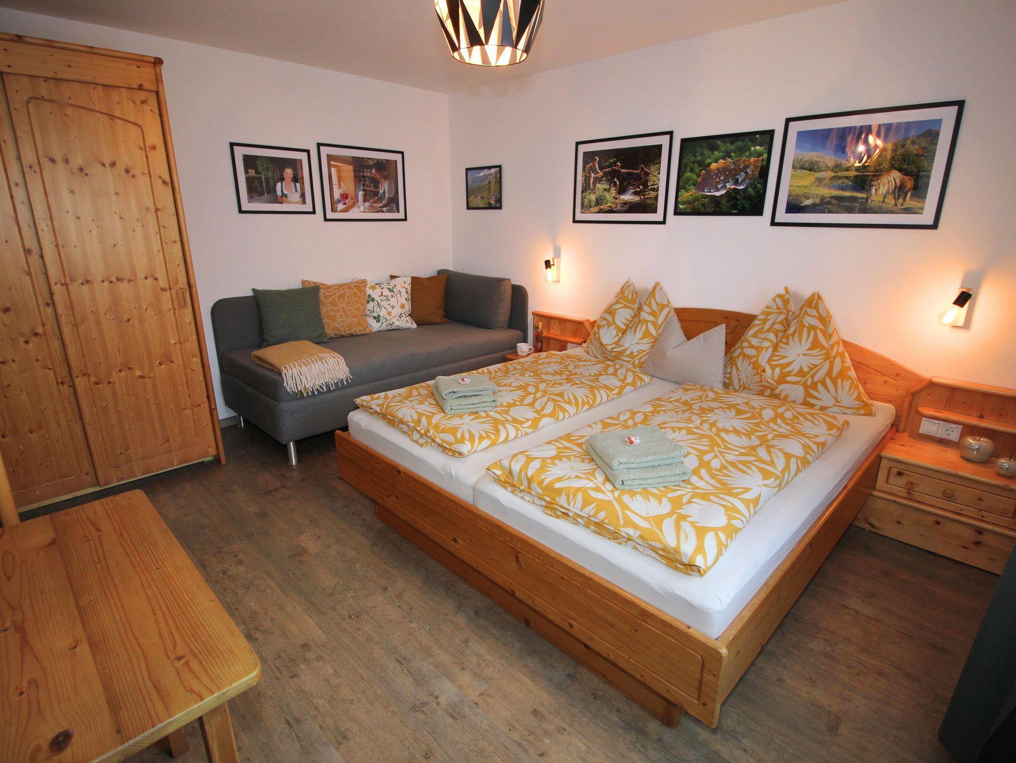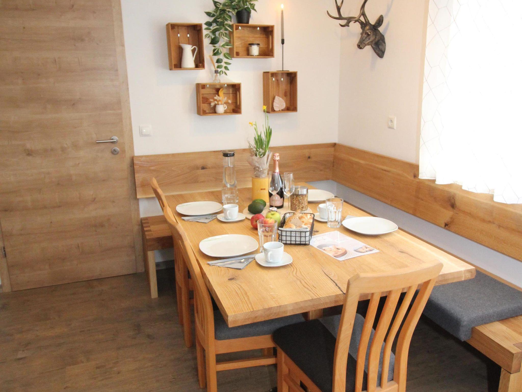 Unsere gemütliche Ferienwohnung für bis zu 5 Personen bietet zwei getrennte Schlafzimmer, eine voll ausgestattete Küche mit Kaffee, Tee und Gewürzen sowie einen großzügigen Essbereich. Badezimmer mit Waschmaschine, separates WC und ein kleiner Außenbereich mit Sitzgelegenheit sorgen für Komfort. Gitterbett und Hochstuhl sind auf Anfrage verfügbar. Wintersportler schätzen Skiraum mit Absperrmöglichkeit und Skischuhheizung. Ebenerdig, zentral gelegen und mit fantastischem Blick auf die umliegenden Berge und das Dachsteinmassiv.