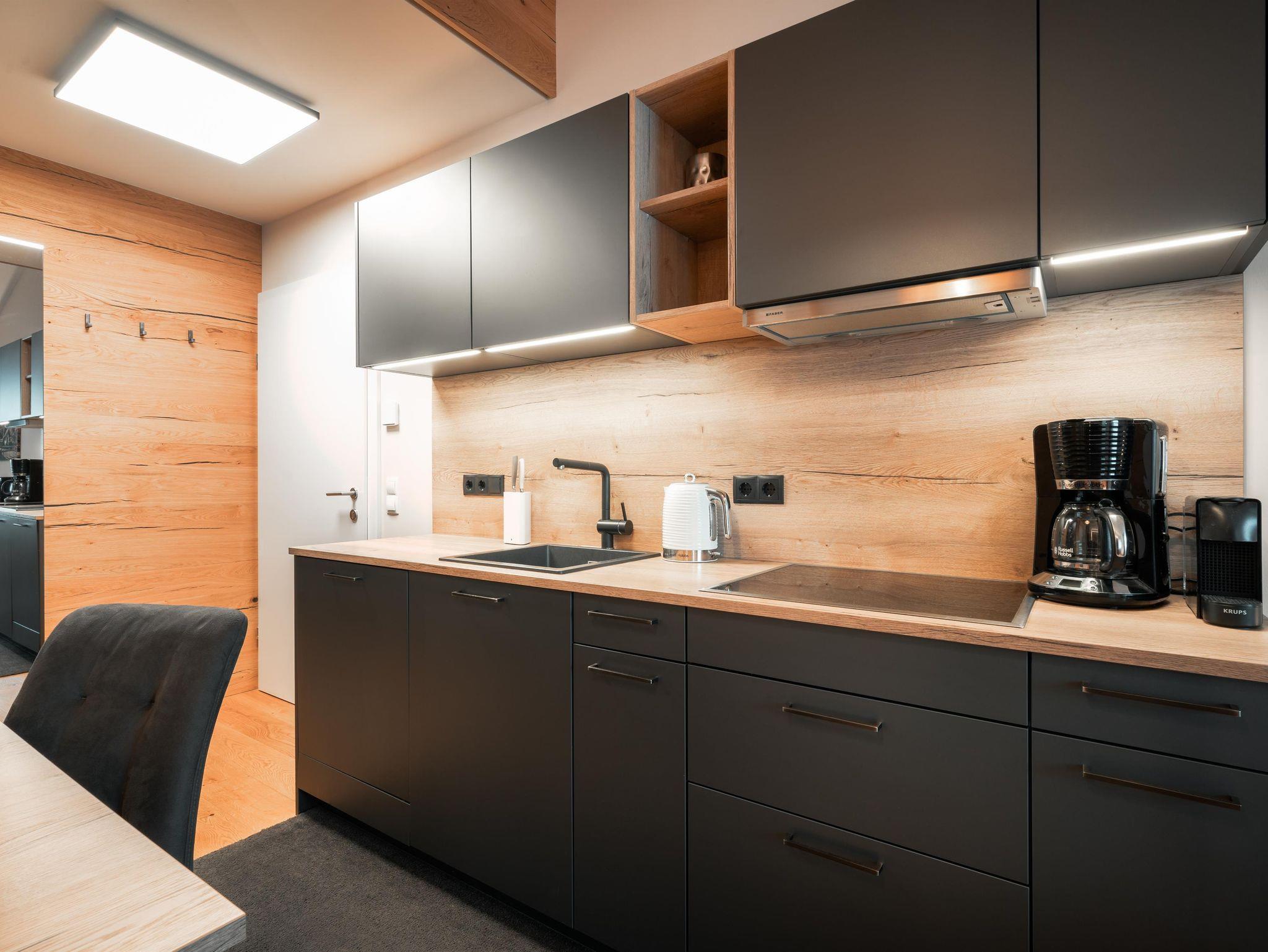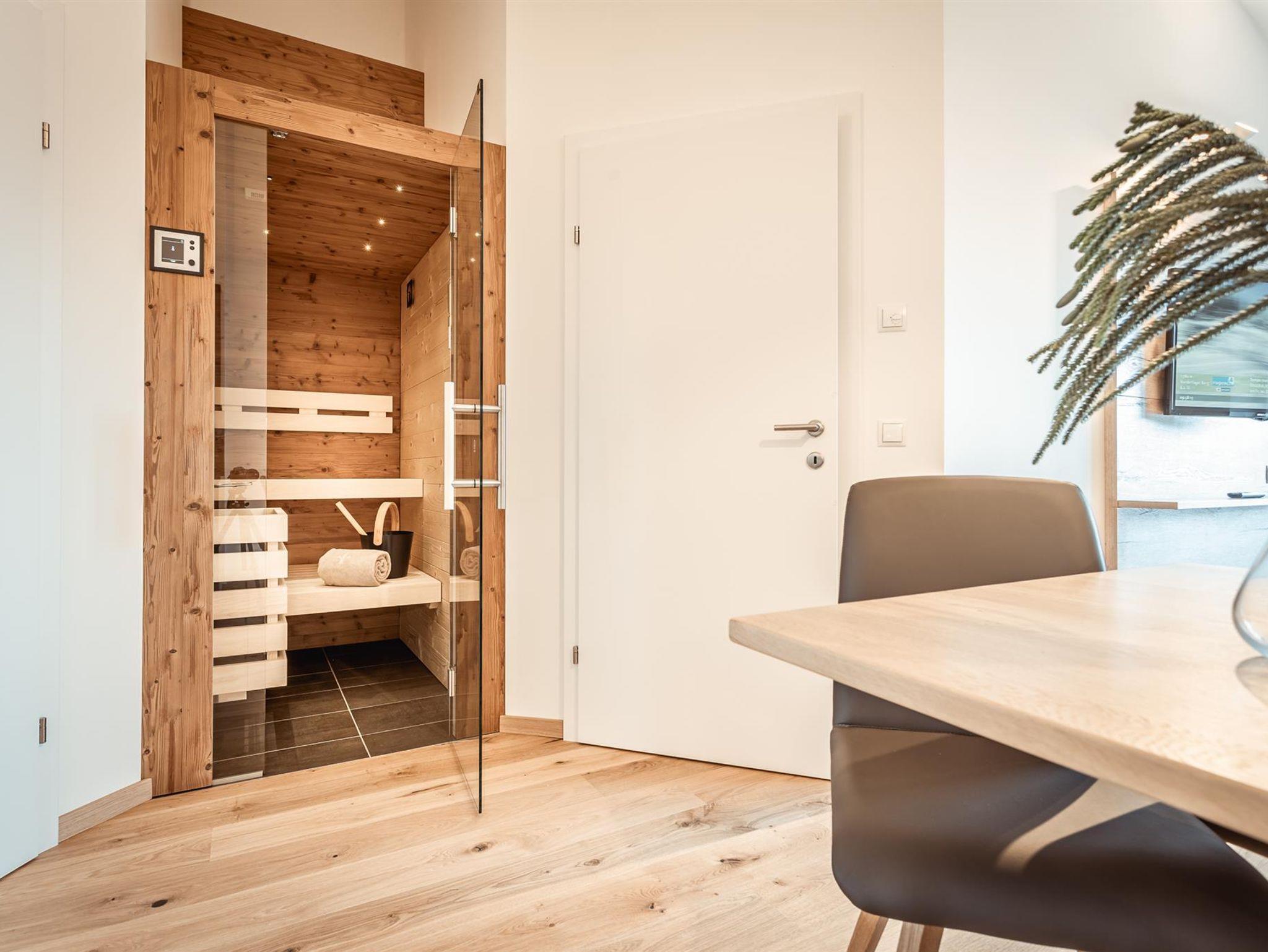Eben alles was man so braucht. By the way: Das Auto kannst du in der Tiefgarage lassen. Servus im Gustav – 8 Appartements von Smart bis Sky – außerdem mit dabei: Private Sauna im Appartement, eigene Terrasse oder Balkon Top 8 hat keine Balkon, komplett ausgestattete Küchen mit allem PiPaPo, 1-2 Schlafzimmer und Bäder sowie eine Aussicht nach Westen auf die Hochwurzen und das eine oder andere Chi-Chi.