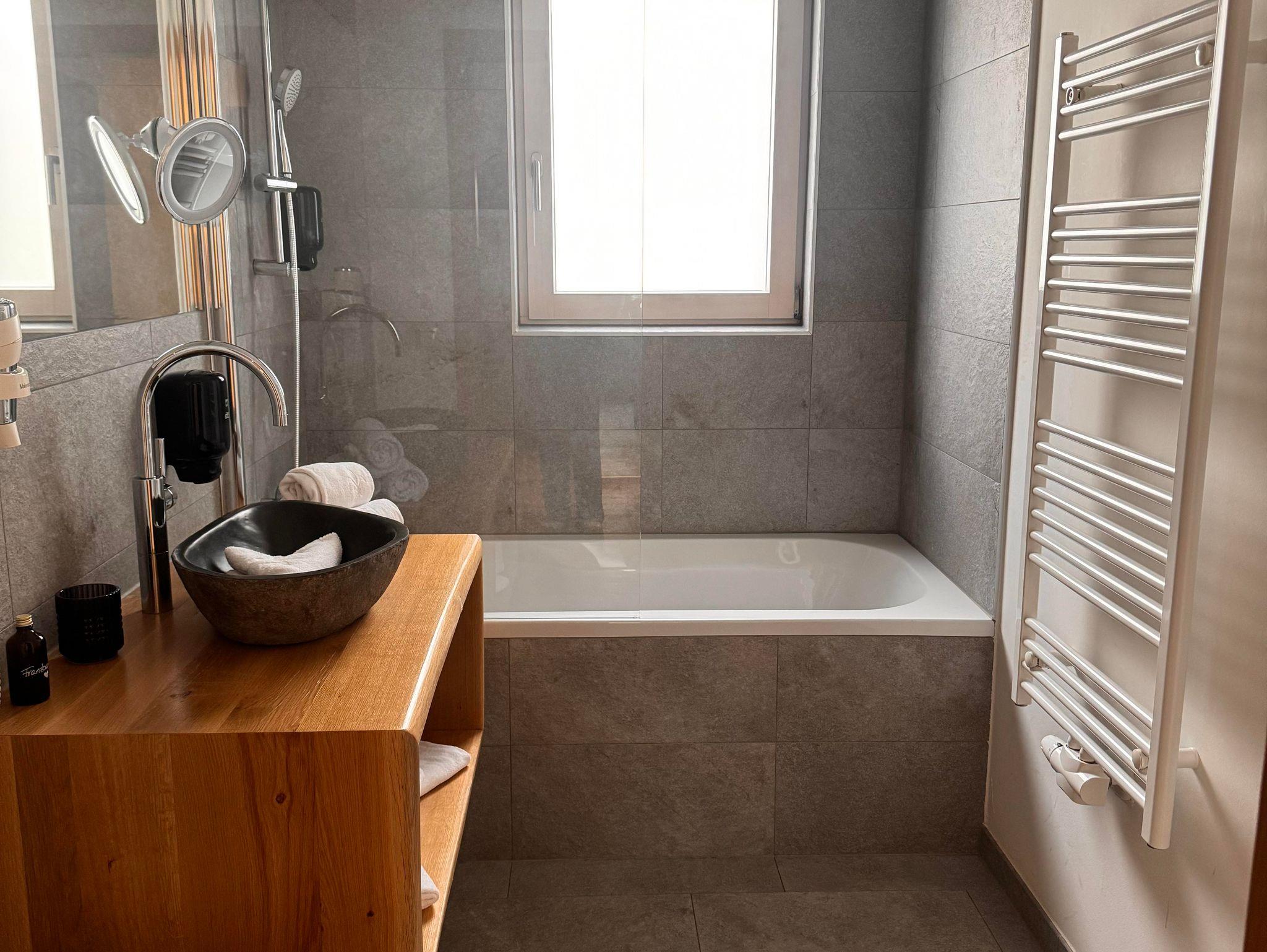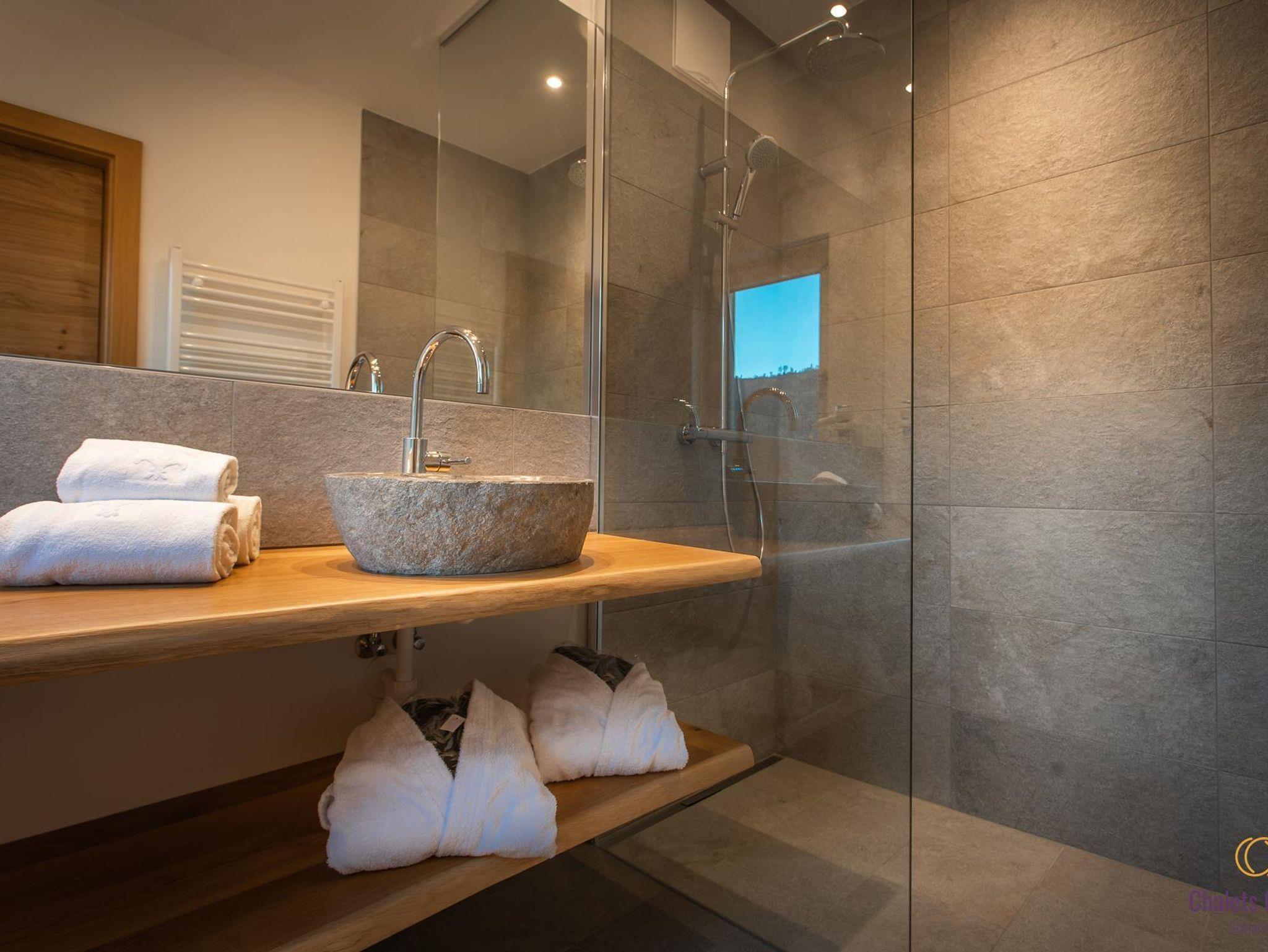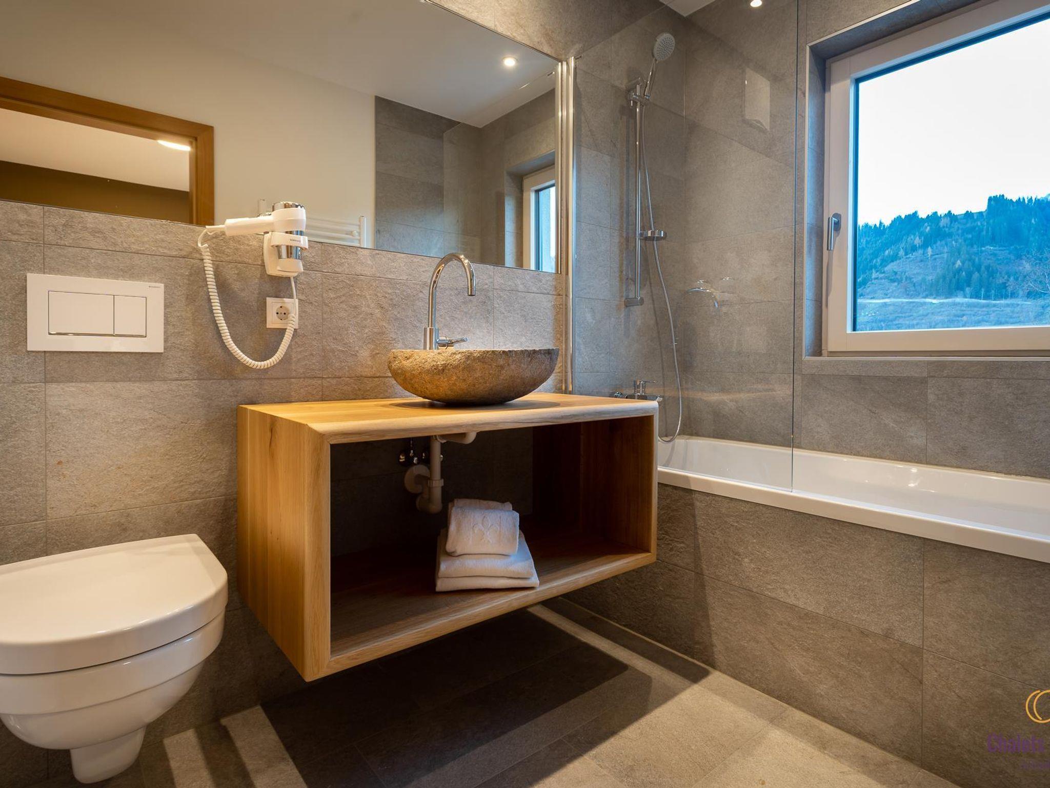 • 1 Bad mit Natursteinbecken und Regendusche / oder Wanne – en suite / oder separat