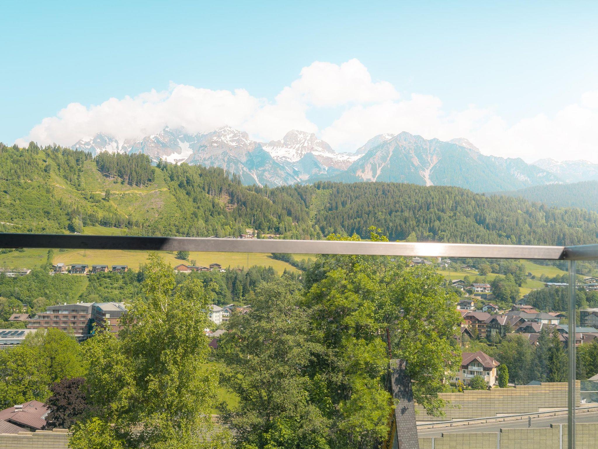 360 Grad patentierter garantierter Panoramablick auf den Dachstein , das Ennstal, nach Schladming und Rohrmoos! Alle Appartements verfügen über einen Balkon, eine Terrasse oder einen kleinen Garten, die XXL Terrassen mit Blick auf den Dachstein unserer TOPS und unseres LOFT sind einzigartig und für unsere Gäste unvergesslich!