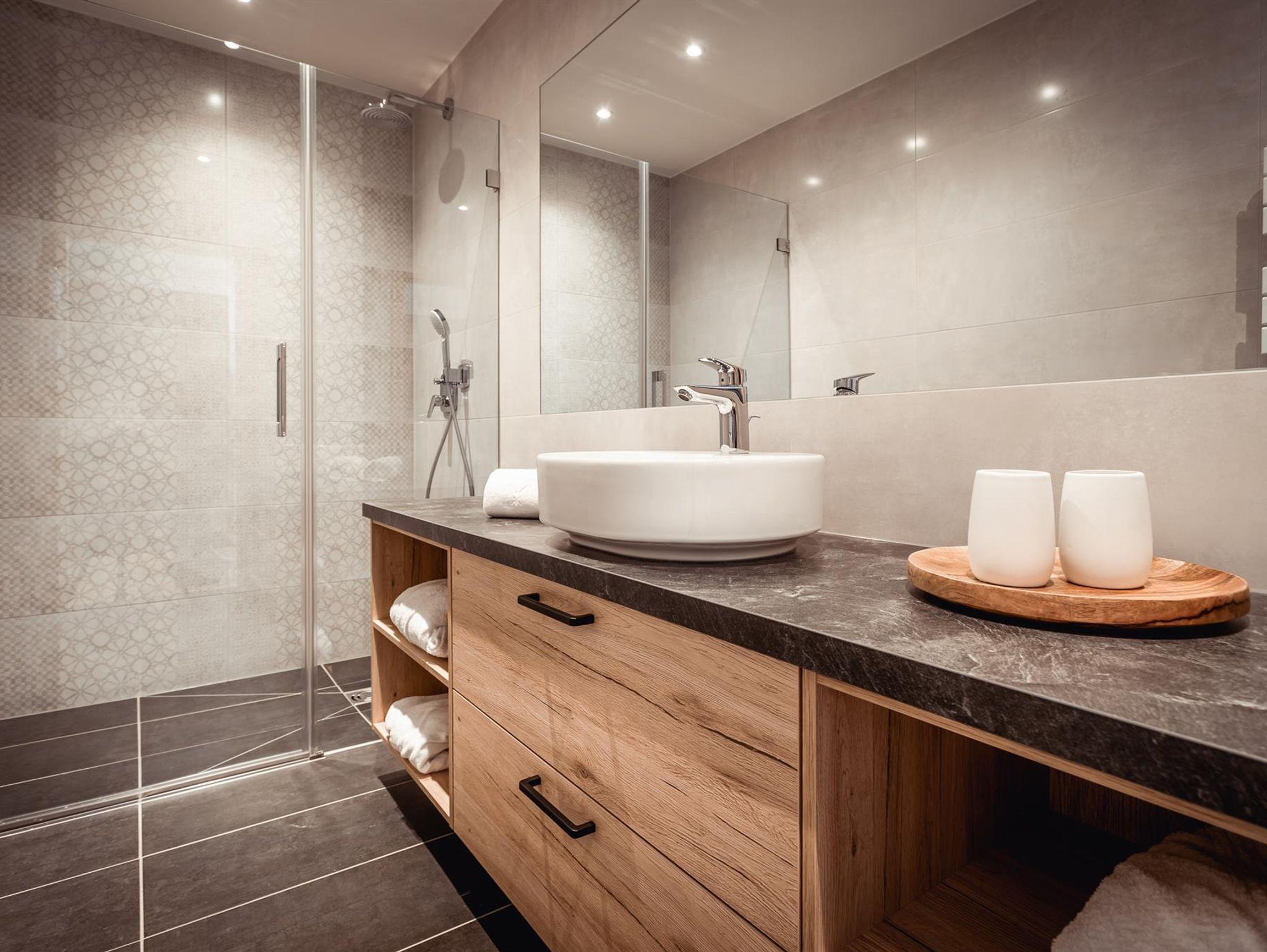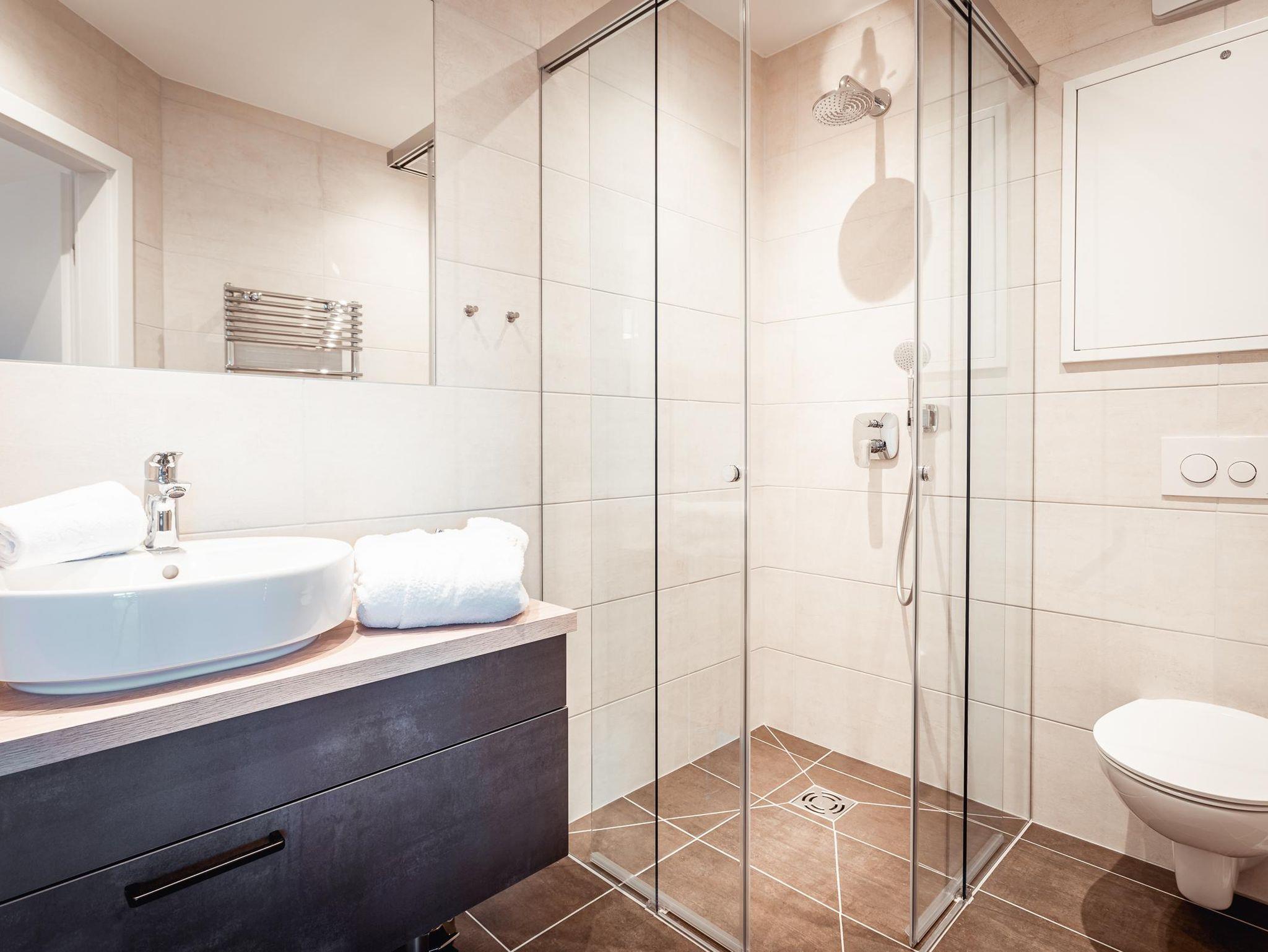 - 2 Bäder mit Regendusche, Waschtisch und WC