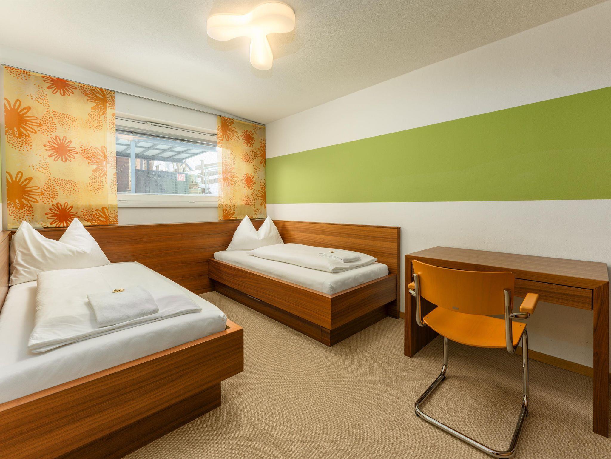 - 2 Schlafzimmer 1x Doppelbett 1x zwei Einzelbetten (kann für eine dritte Person - Kind bis 12 Jahre - vergrößert werden)