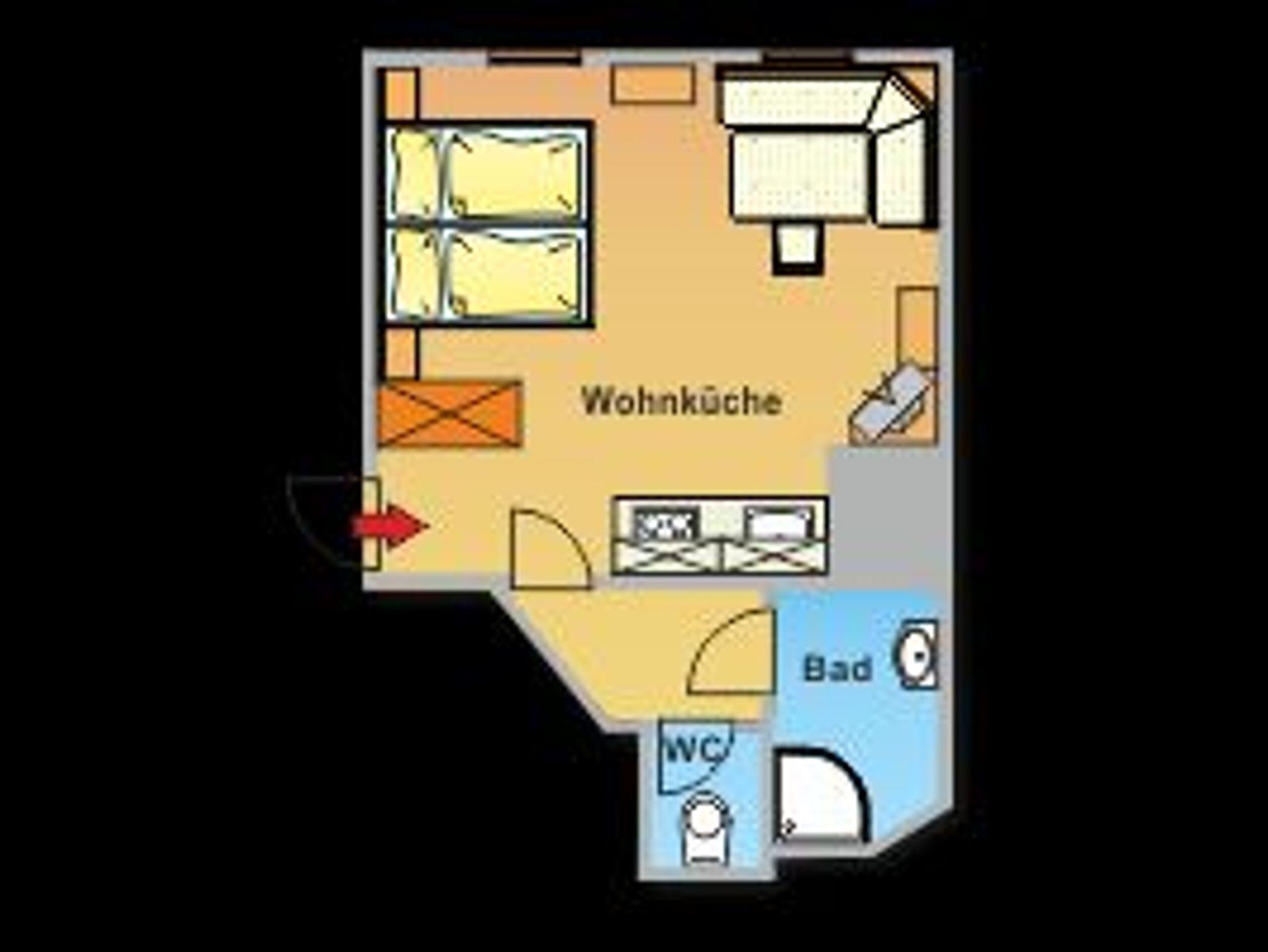 - 1 Wohn-Schlafraum 1x Doppelbett