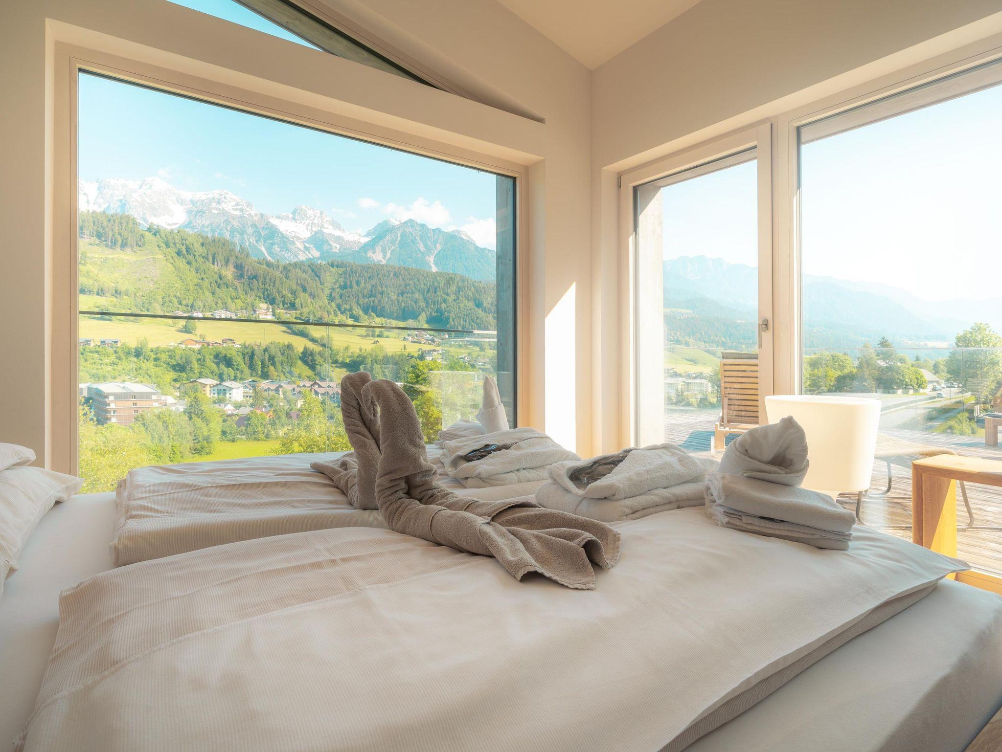 Top-Apartmentanlage, super Service mit der Möglichkeit, das Frühstück im Zimmer einzunehmen, das in Corona-Zeiten sehr vorteilhaft ist. Frühstück ist sehr abwechslungsreich und liebevoll dekoriert. Die Wohnung war top ausgestattet und bietet einen einzigartigen Blick auf das Dachsteinmassiv. Sehr zentral gelegen. Man fühlt sich einfach wohl.