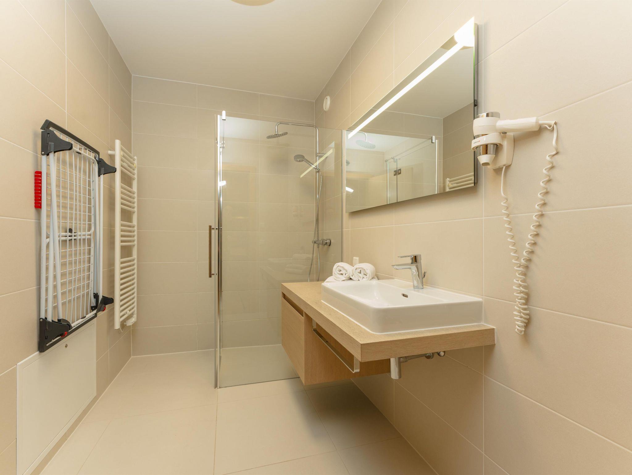 The apartments are very nice, great chodce Of materials and except for the kitchen upper shelf’s opening in logically we found no flows. The only thing I would welcome a bit more service/attention to the spa area. Also the number of towels dedicated is rather limited and linen for the sauna would be a nice touch too. But overall really happy about our stay and looking forward to returning soon. Best, Petr