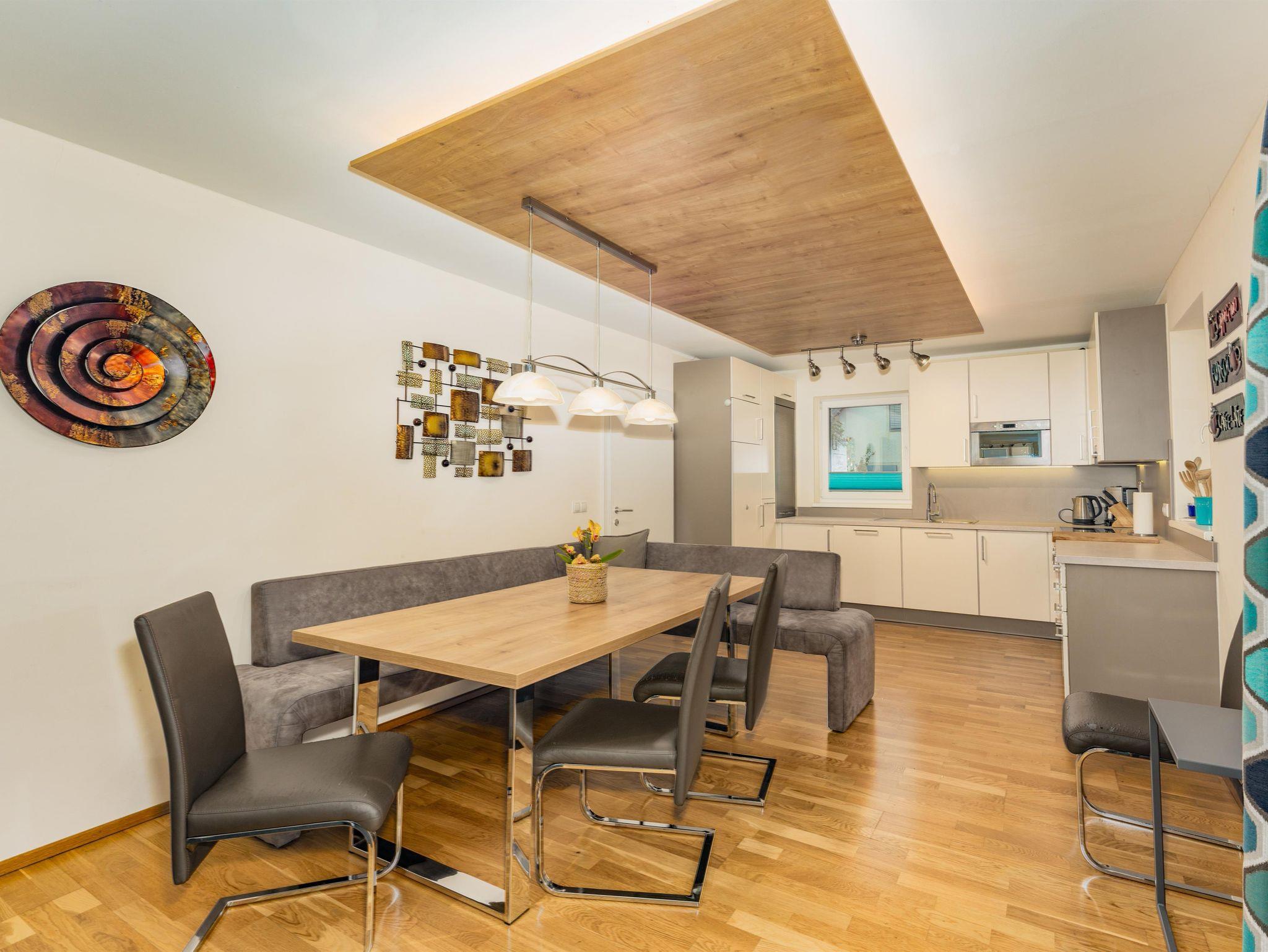 Sie wünschen eine zentrale Lage (5 Gehminuten in das Zentrum), möchten aber dennoch Ihren Sommer- oder Winterurlaub mit viel Ruhe und Sonne verbinden, dann ist das Appartement Alpenglocke genau das richtige Feriendomizil für Sie. Die Innenausstattung überzeugt mit viel Moderne, Tradition und Komfort und vermittelt folglich Wohlfühlfaktor pur. Auf 2 Etagen - 115m² Wohnfläche bietet das Appartement alles was das Herz begehrt. Eine großzügige Wohnküche, 4 SEPARATE Schlafzimmer, 2 Badezimmer sowie einen großen Balkon mit traumhaftem Ausblick auf die Berge. In Richtung Süden befindet sich eine großzügige Sonnenterrasse mit Gartengarnitur und einem Garten, der Sonnenschein den ganzen Tag garantiert. Auf der Rückseite des Hauses erwarten Sie eine weitere Sonnenterrasse und ein Garten mit Grill, Tisch und Stühlen für die Nachmittags- oder Abendsonne im Sommer.