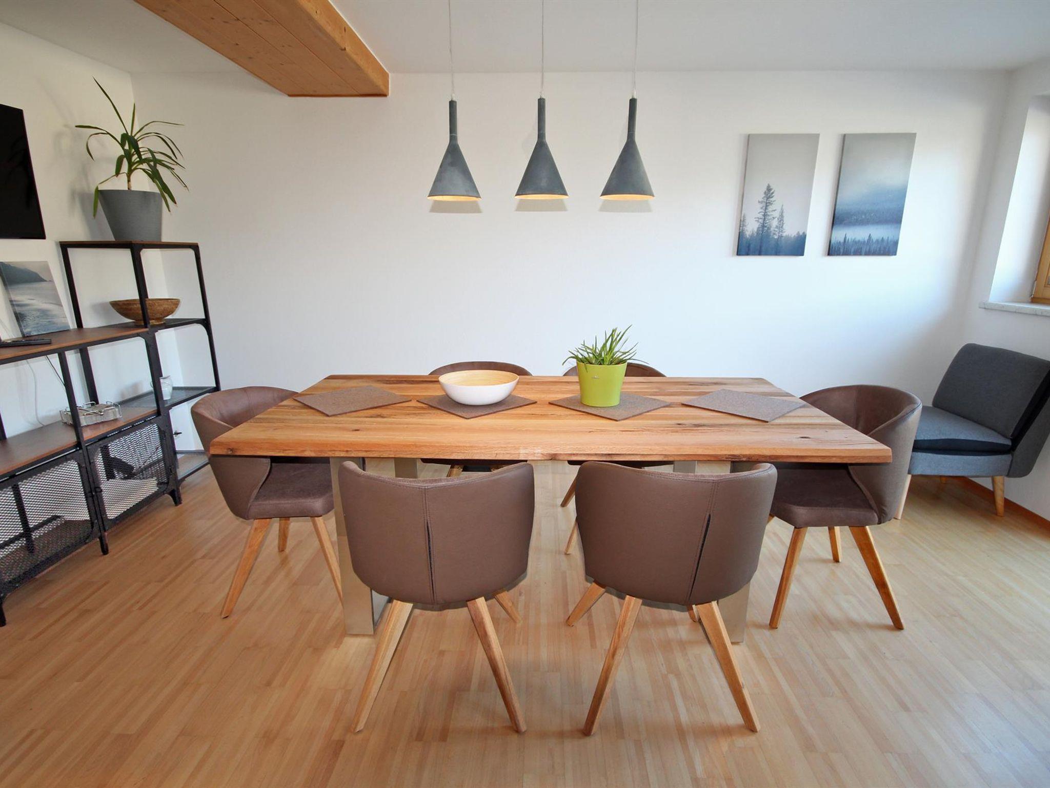 Wie der Name bereits verspricht, bietet das Appartement Ennst(h)aler den atemberaubendsten Ausblick ins Ennstal und das Dachsteingebirge. In sonniger Hanglage in Rohrmoos, nur ein Stückchen oberhalb der pulsierenden Stadt Schladming, erleben Sie die schönsten Urlaubstage im Jahr. Das neu renovierte, stilvolle Appartement Ennst(h)aler, von welchem die Pisten der Planai West nur ca. 400 Meter entfernt sind, überzeugt mit hohem Wohnkomfort auf 2 Etagen und 135 m² Wohnfläche und einer Komplettausstattung mit alpinem Charme. Ein großzügiger Koch-Ess-Wohnbereich mit voll ausgestatteter Küche, Esstisch und TV, 4 separate Schlafzimmer (2x Doppelbett + 2x Französisches Bett), 2 Badezimmer und eine kleine aber feine Wohnecke mit Sofa und TV bieten ausreichend Platz für bis zu 8 Personen. Die Aussicht genießen Sie von allen Räumlichkeiten am besten aber von der sonnigen Terrasse mit Grill. Ihre Skiausrüstung ist direkt vor dem Appartement bestens verwahrt. W-Lan, Kabel TV und Parkplätze, direkt vor dem Haus, stehen ebenso kostenfrei zur Verfügung.