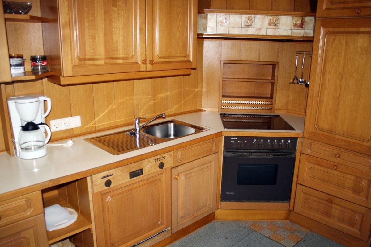 Voll ausgestattete Küche: Elektroherd, Backofen, Kühlschrank mit Gefrierfach, Geschirrspüler, Mikrowelle, Kaffeemaschine, Toaster, Mixer & Aufschnittmaschine