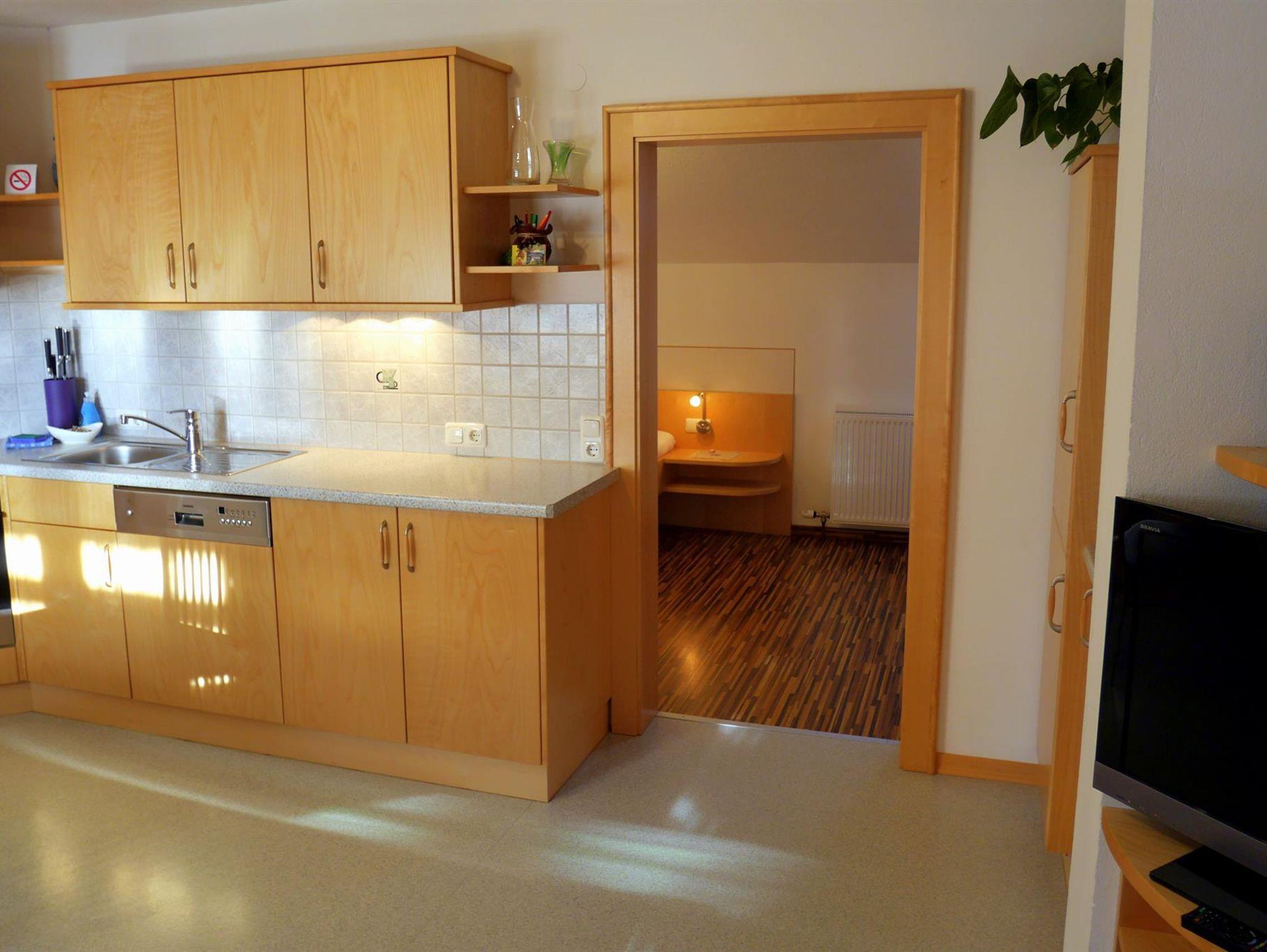 Wohnung für 2-5 Personen: 1 Dreibettzimmer und 1 Doppelzimmer, 1 Bad/WC, 1 große Wohnküche mit Geschirrspüler, Radio, SAT-TV und ein großer sonniger Balkon.