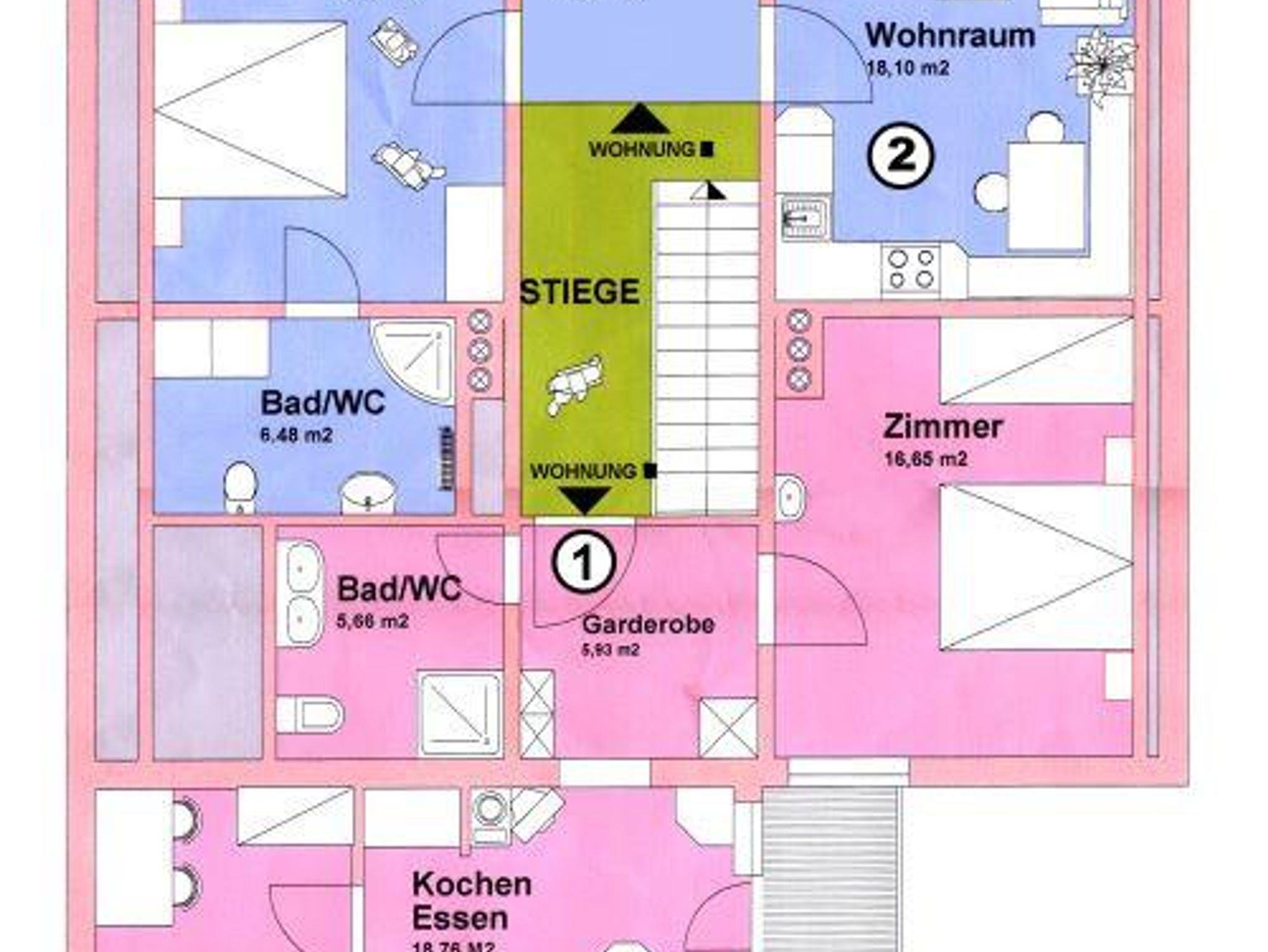 Ferienhof Rindler, WOHNUNG 1/2 Schlafräume/Dusche, WC