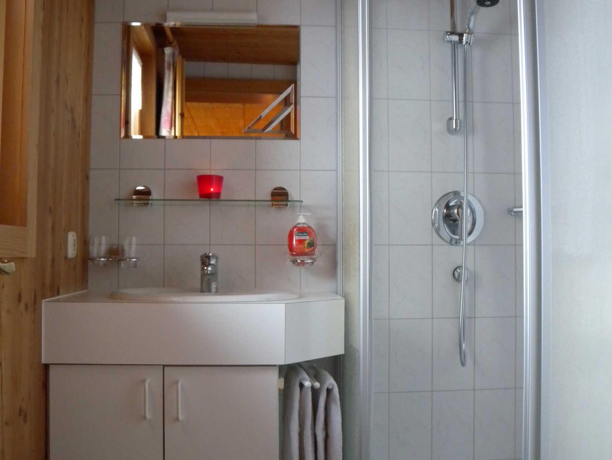 ausgestattete Wohn-Ess-Küche sowie Bad mit Dusche und WC.