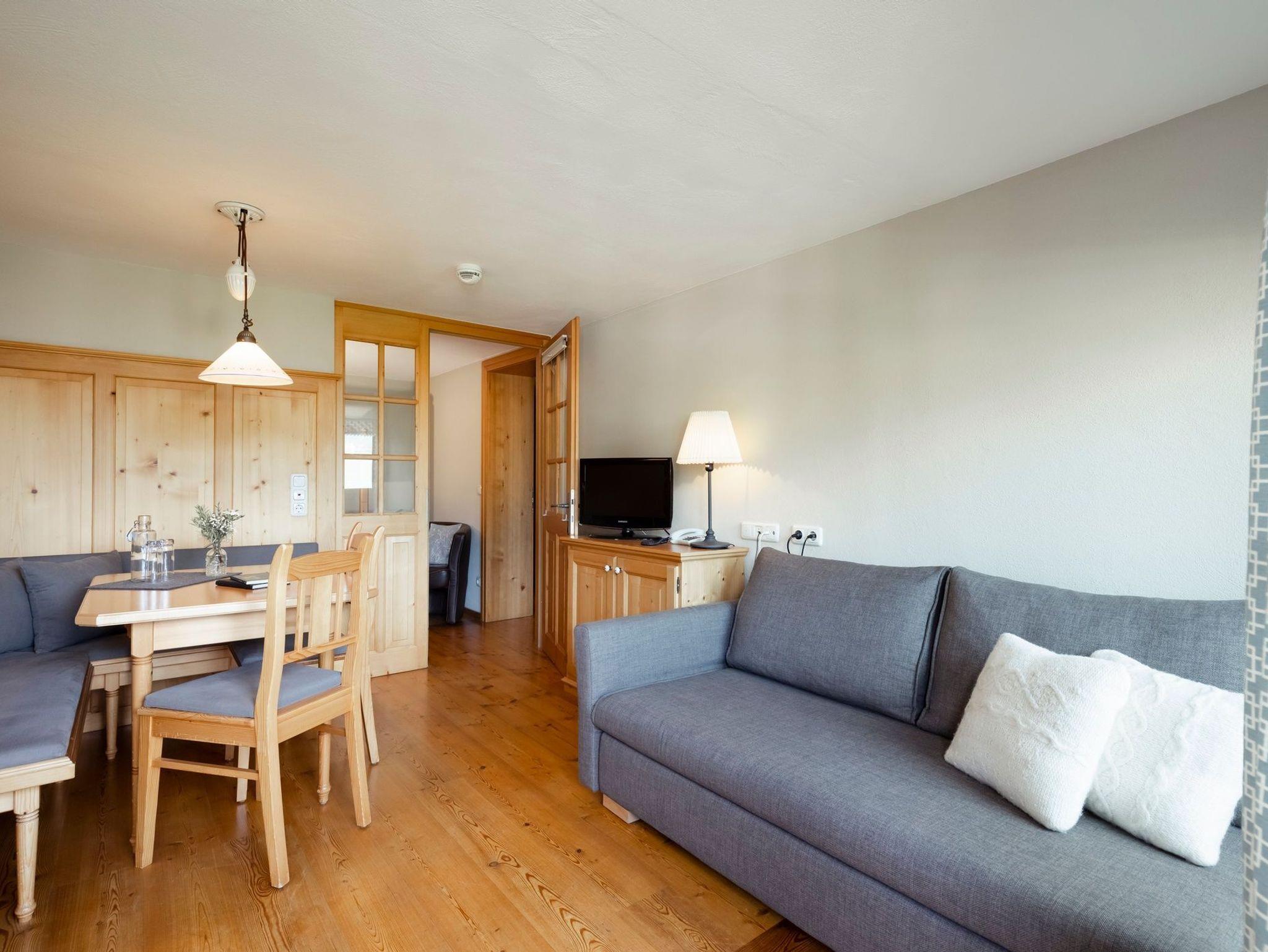 Ca. 45m2 große Juniorsuite im gemütlichen Landhausstil. Geräumiger Wohn- und Schlafbereich mit Sitzecke und Lehmofen. Mit Couch, Balkon und zusätzlichem Schlafraum mit Stockbett. Badezimmer mit Dusche und WC. TV, Safe, Telefon, Wifi