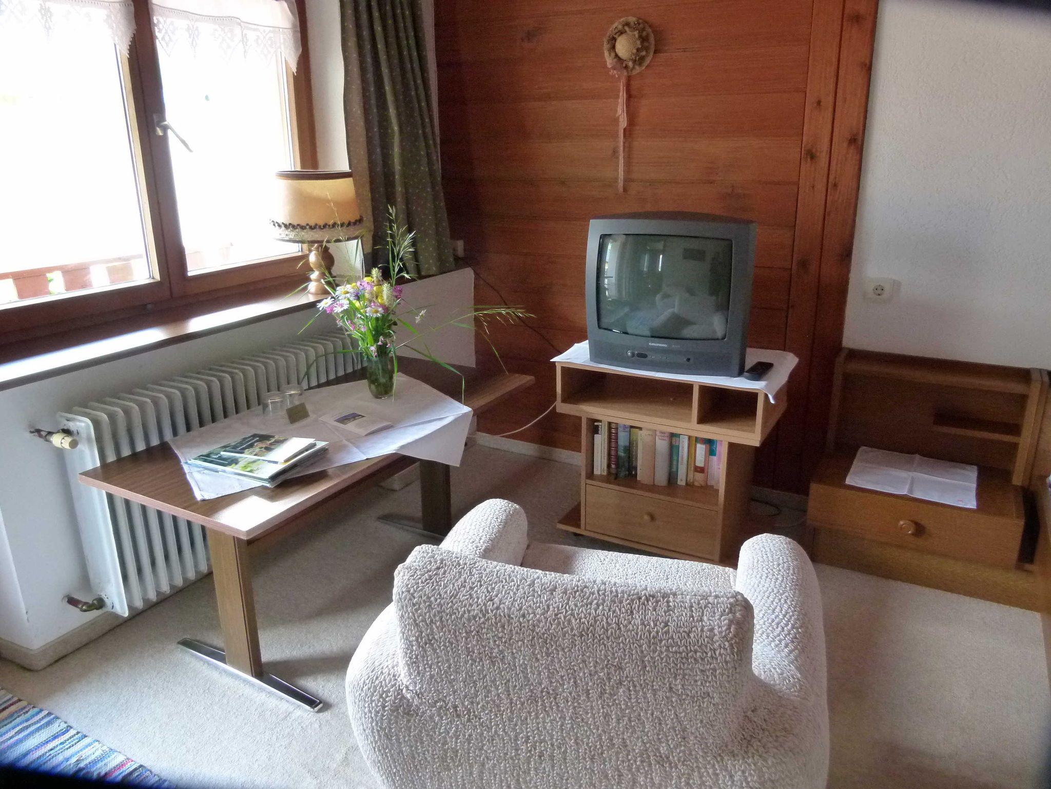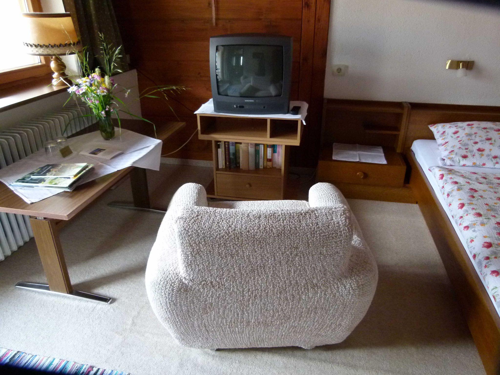 Ein Flachbildschirm und WLAN sind auch vorhanden. Gemütliche Polsterhussen und Tisch mit Unterlagen zur Gestaltung Ihres Urlaubes, darunter auch die beliebten BW- Bücher zum Studieren. Eine Leselampe können Sie gerne auch benützen.