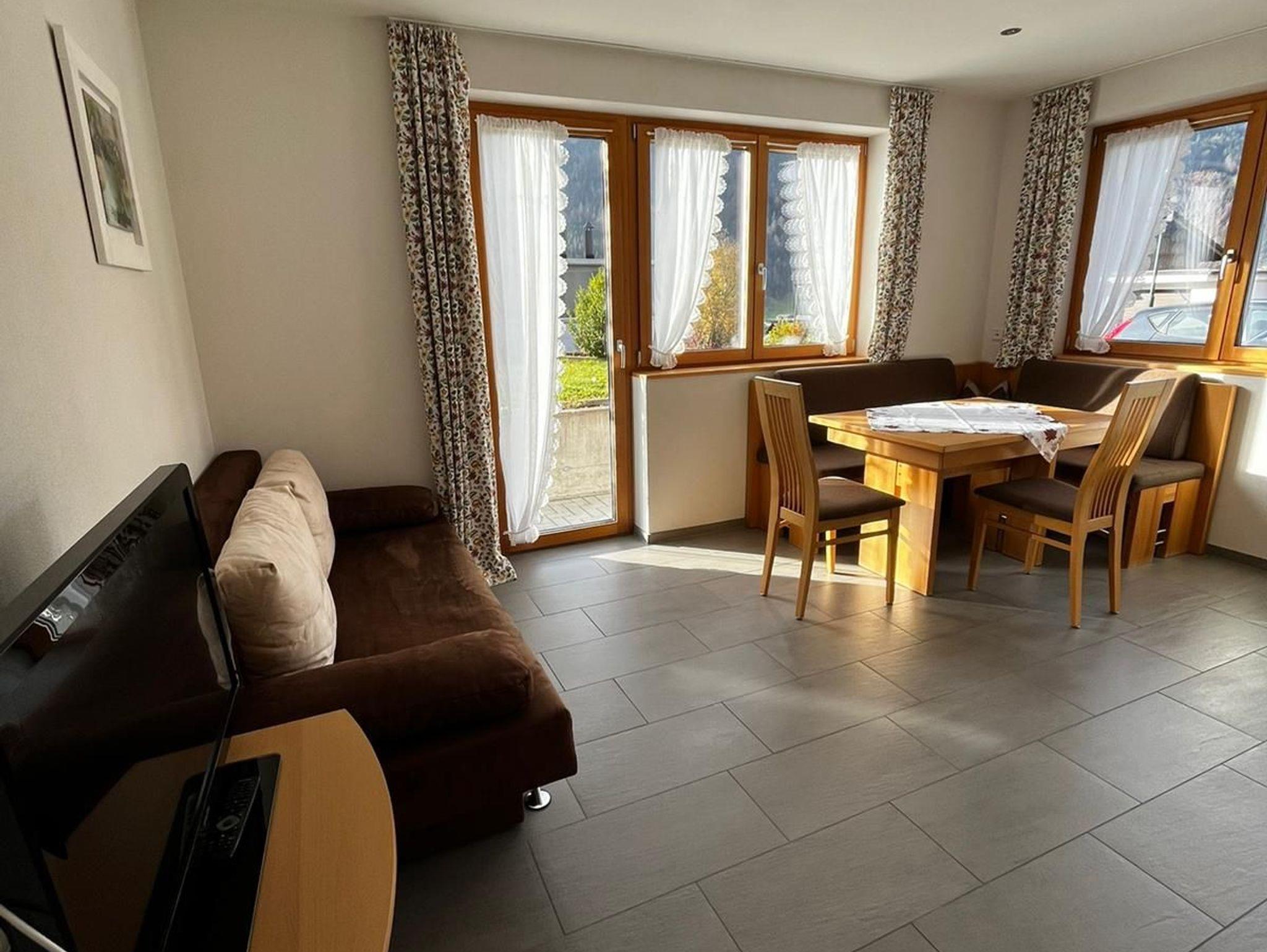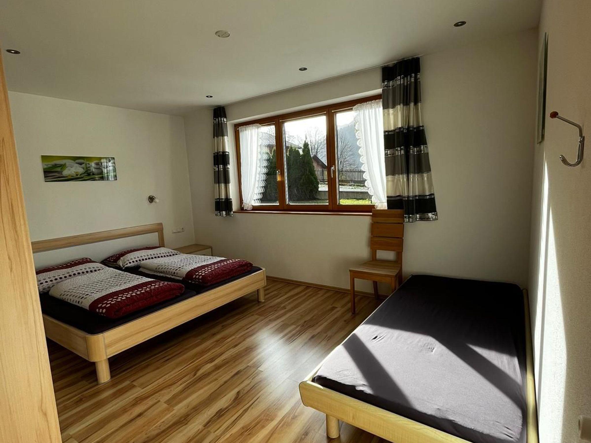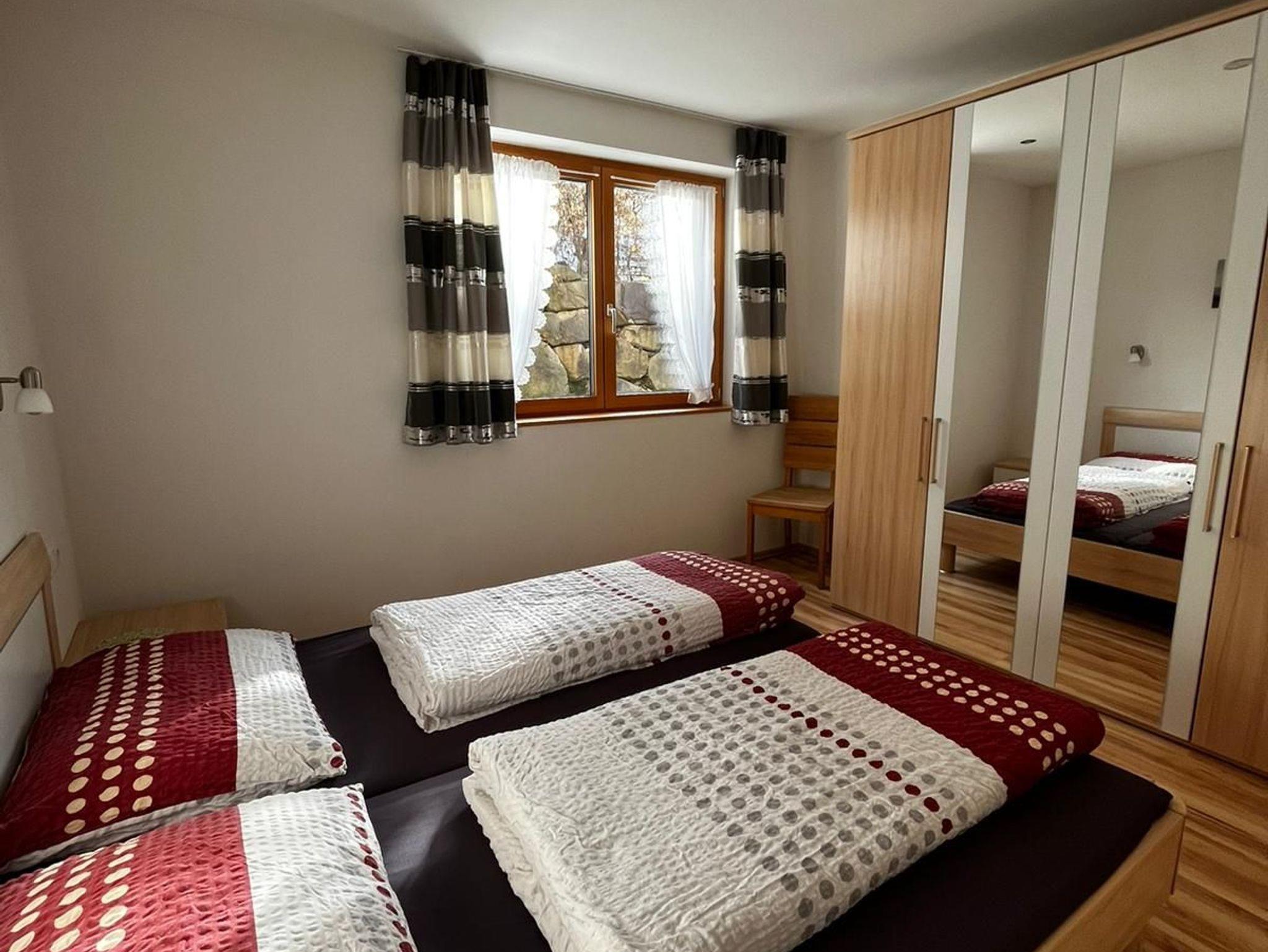 Die große, gemütlich eingerichtete Ferienwohnung hat einen ebenerdigem Zugang. Die Wohnung besteht aus Wohnküche mit ausziehbarer Couch, 1 Doppelzimmer und einem Schlafzimmer für 3 Personen, Bad, TV, WLAN, Gartenzugang. Hier können Sie an sonnigen Tagen gemütliche Stunden erleben und die Beschaulichkeit der Bergwelt genießen.