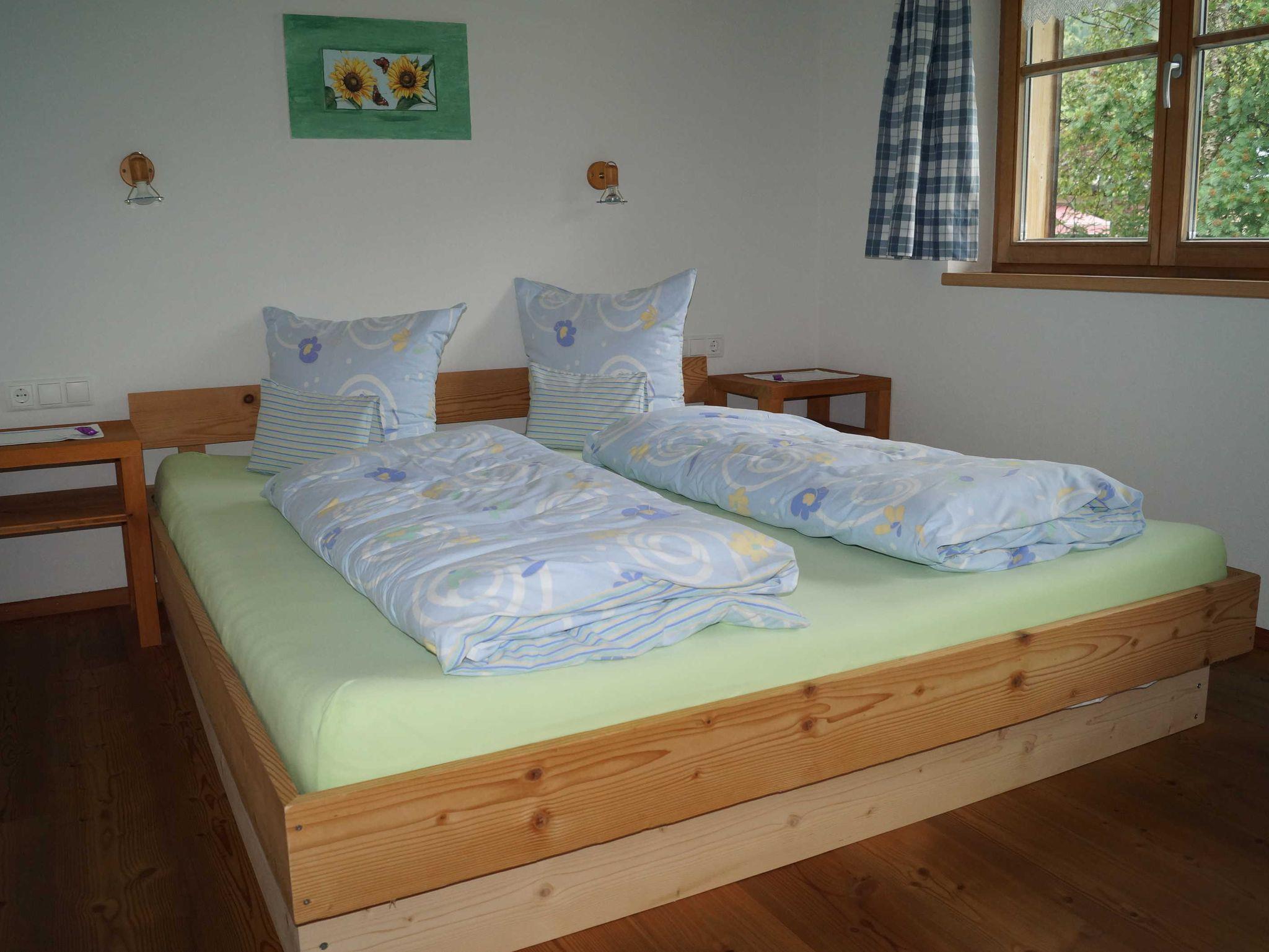 Unsere Wohnung 2 hat ca. 40 m². Sie besteht aus einem Doppelzimmer, einer Wohnküche mit Couch und einer Dusche mit WC. Außerdem verfügt sie über eine große Terrasse.