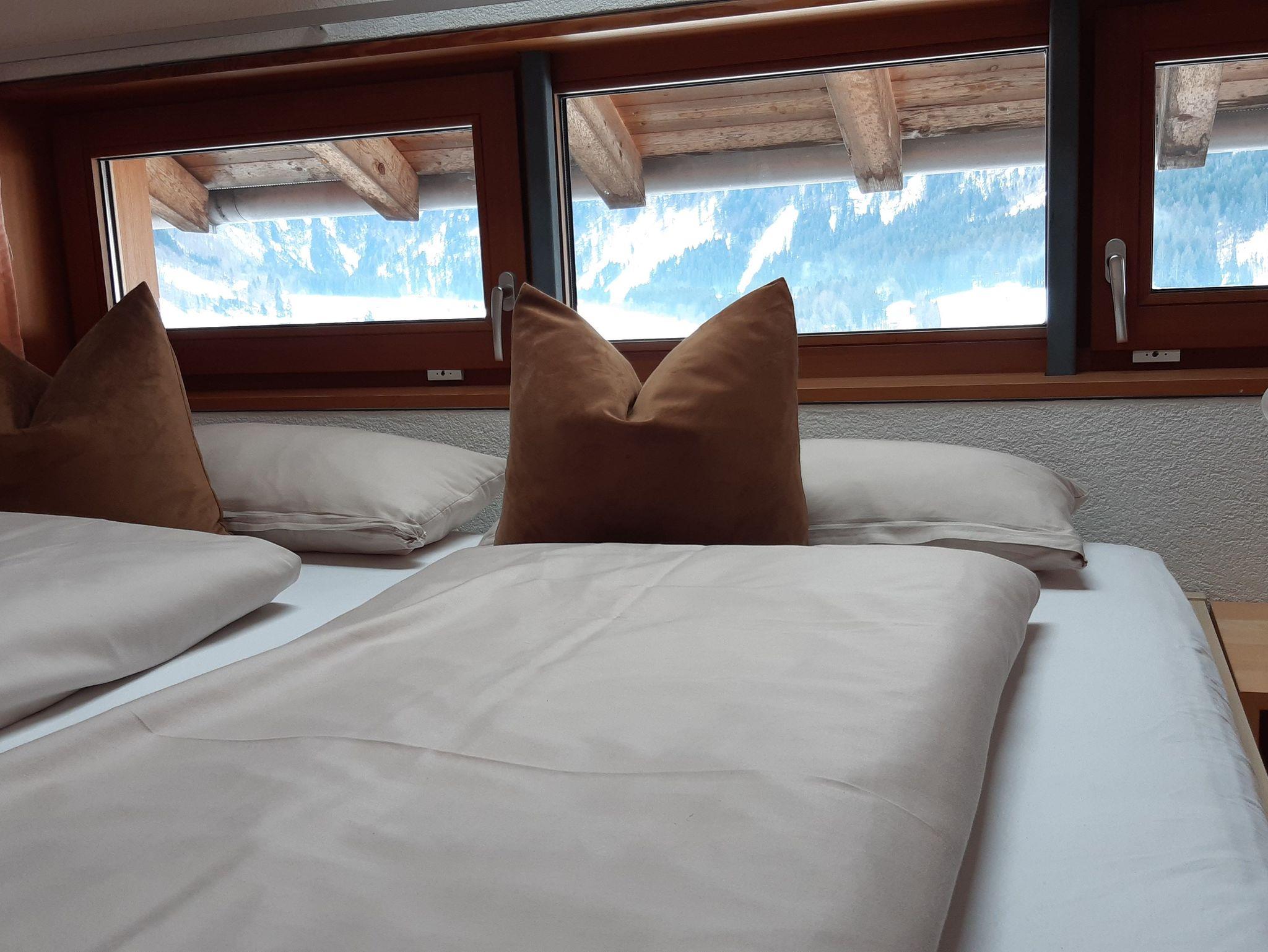 Unsere Wohnung Berg-Panorama verfügt über eine helle Wohnküche mit Fernsehsessel, 2 separate Doppelzimmer,Balkon mit herrlichem Ausblick, Dusche/WC, SAT-TV mit Flachbildschirm, kostenloses WLAN.