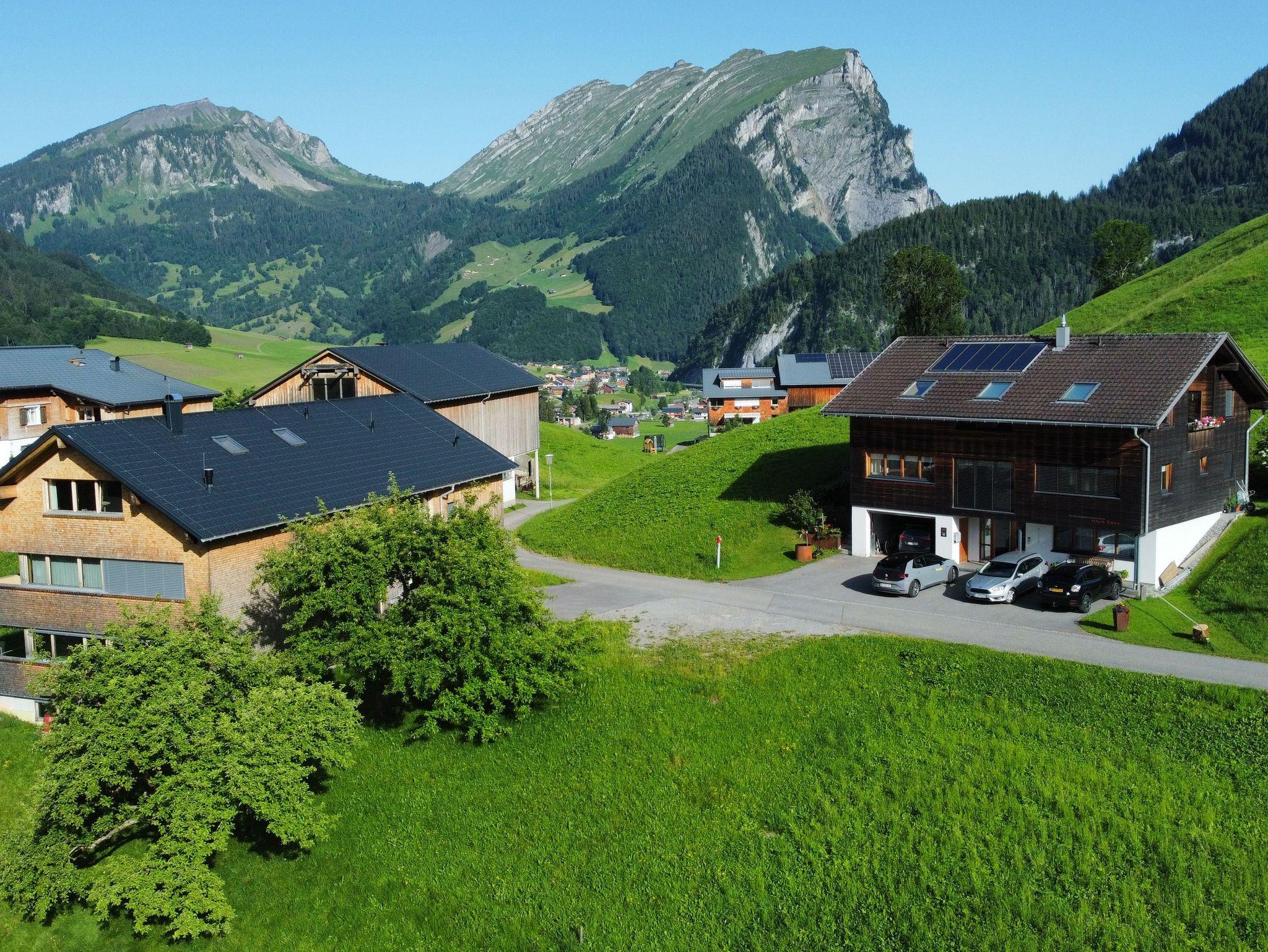 Unser Haus liegt in sonniger und sehr ruhiger Lage, abseits von Lärm und Hektik. Unsere zwei komfortabel eingerichteten Ferienwohnungen bieten Platz für 2 bis 5 Personen bzw. 2 bis 3 Personen. Auf unseren Balkonen haben Sie einen herrlichen Ausblick über ganz Schoppernau bzw. Au.