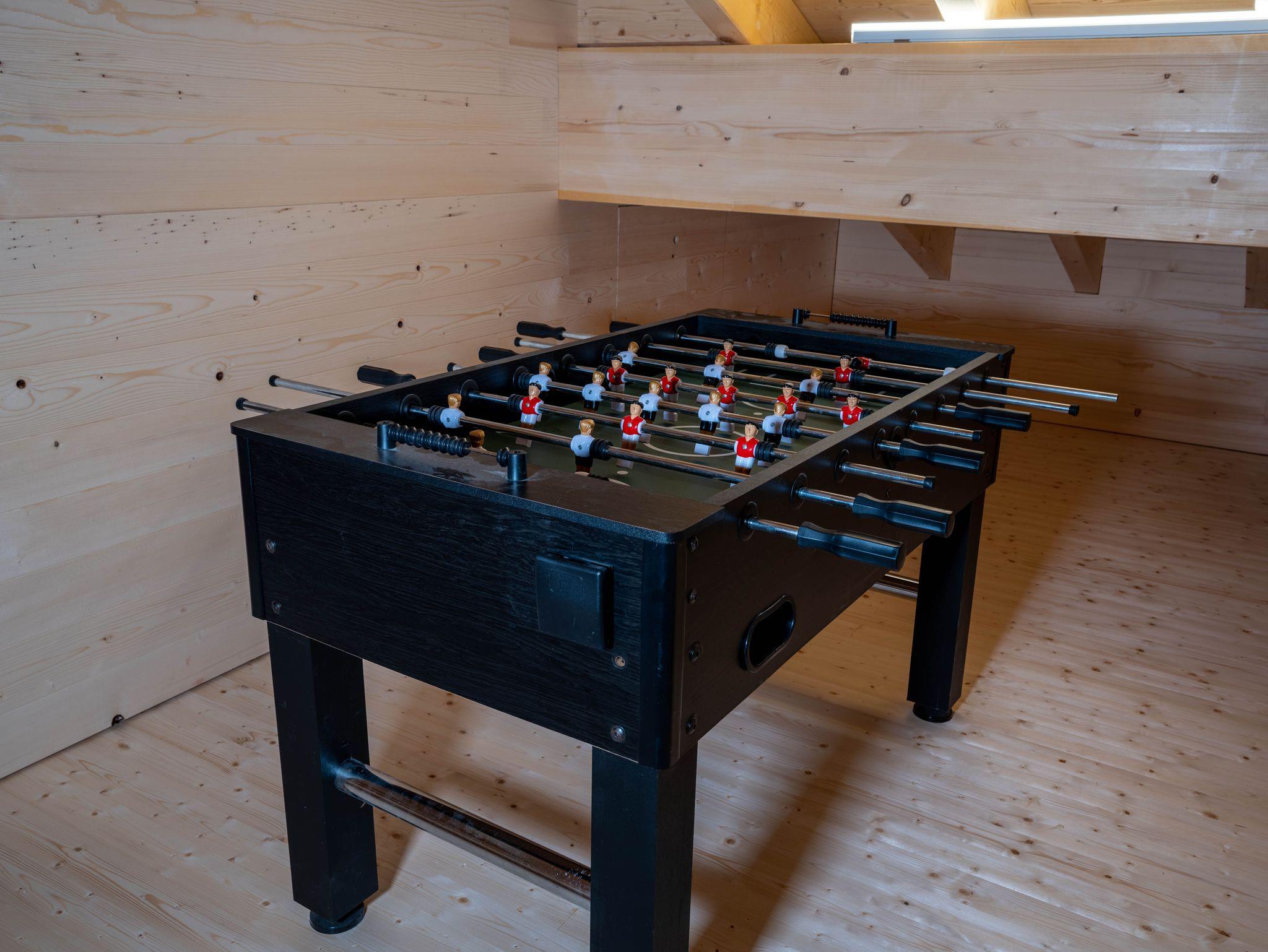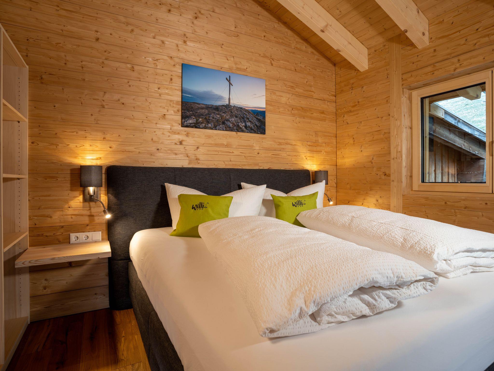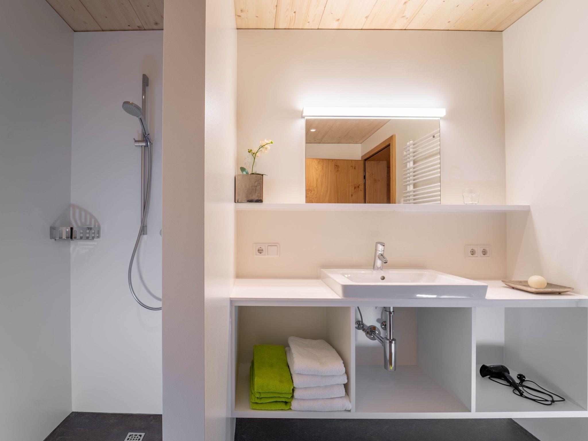 Es ist mit vier Doppelzimmern, einer Wohnküche und zwei separaten Nasszellen mit Dusche und WC ausgestattet. Sein geräumiger und zum Raum hin offener Dachboden eignet sich gerade für Kinder als Spiel- oder einfach als Rückzugsraum.
