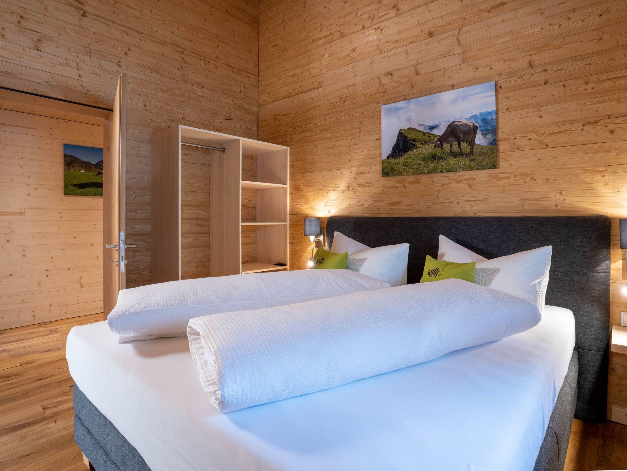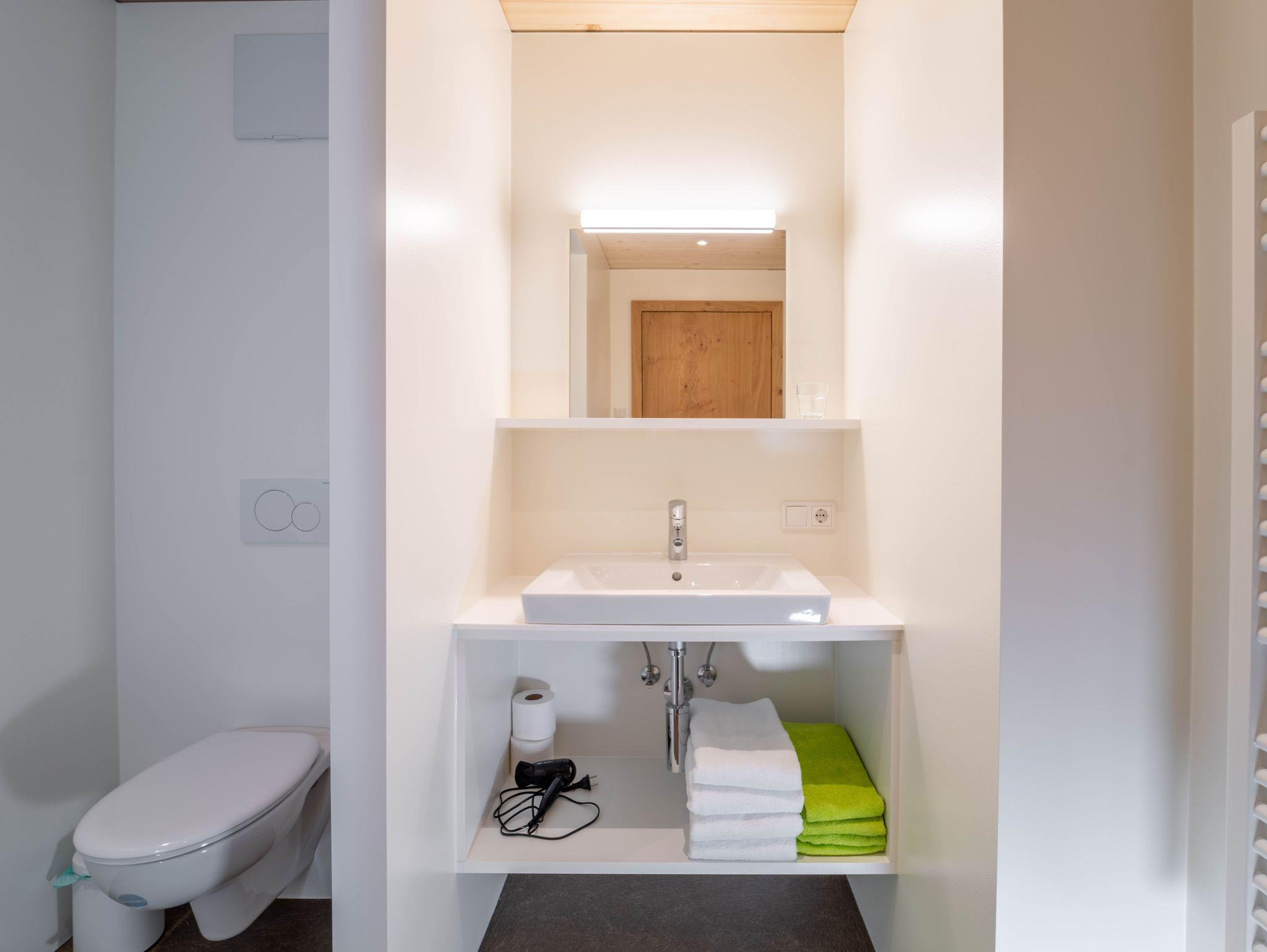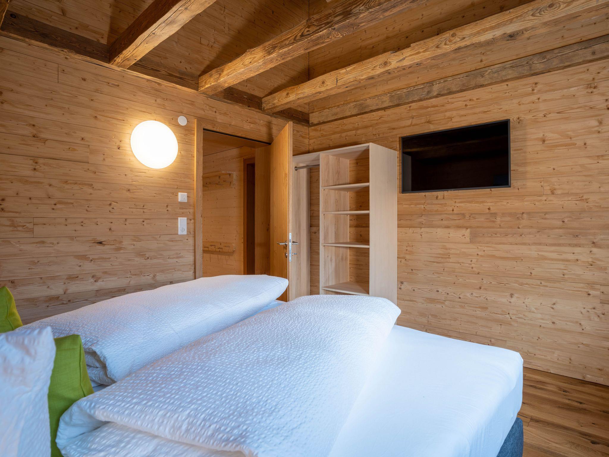 Es ist mit vier Doppelzimmern, einer Wohnküche und zwei separaten Nasszellen mit Dusche und WC ausgestattet. Sein geräumiger und zum Raum hin offener Dachboden eignet sich gerade für Kinder als Spiel- oder einfach als Rückzugsraum.