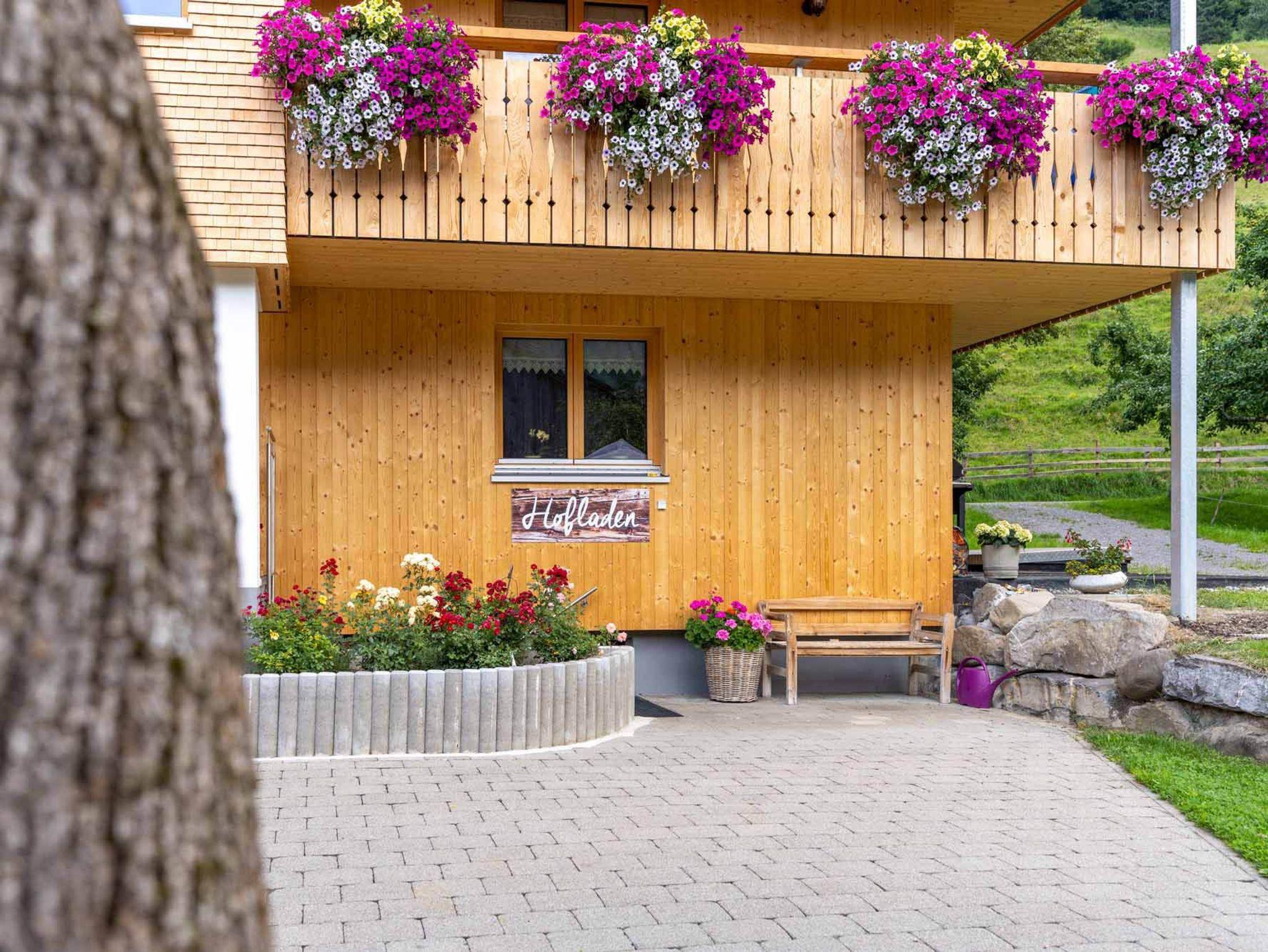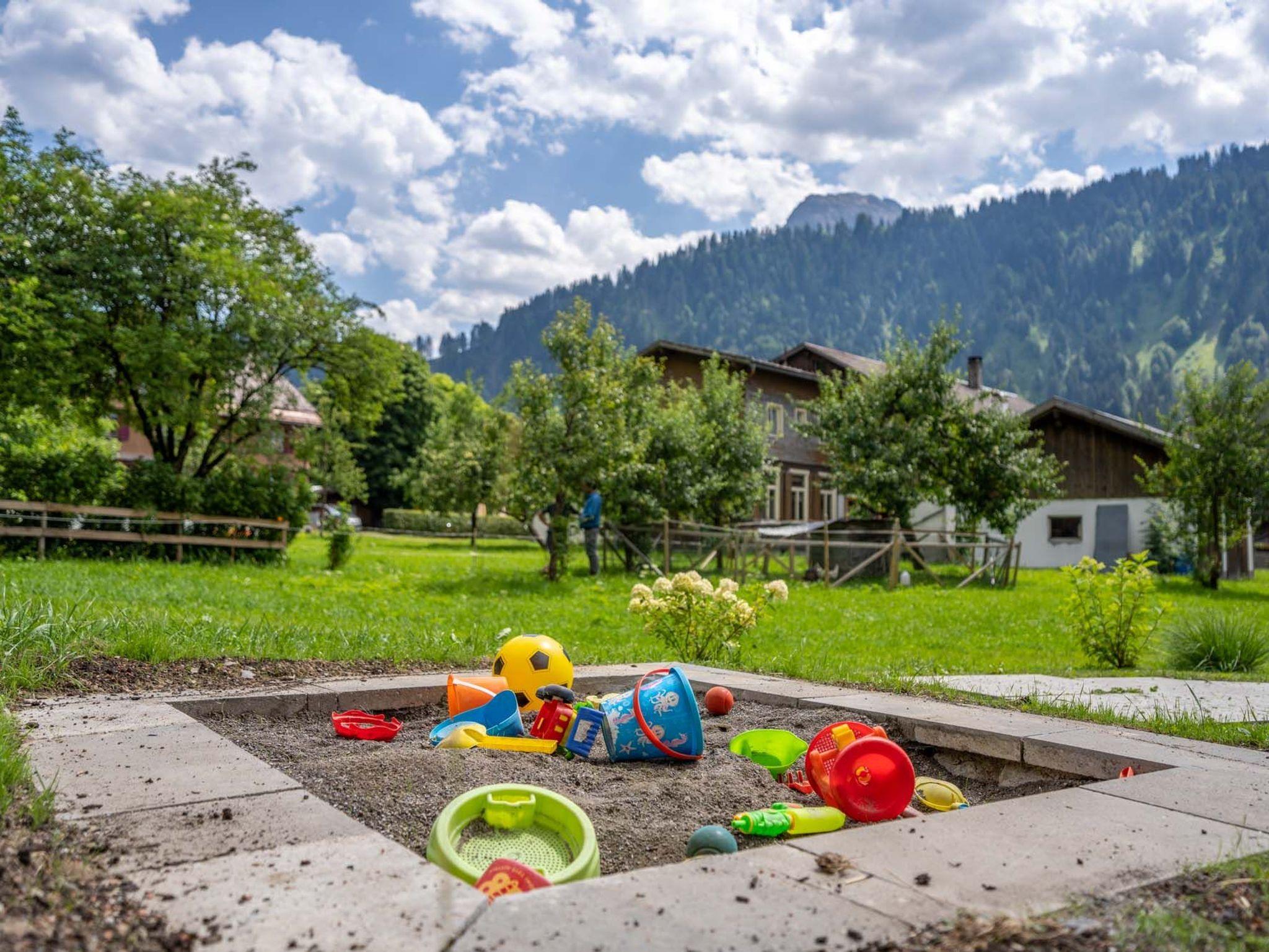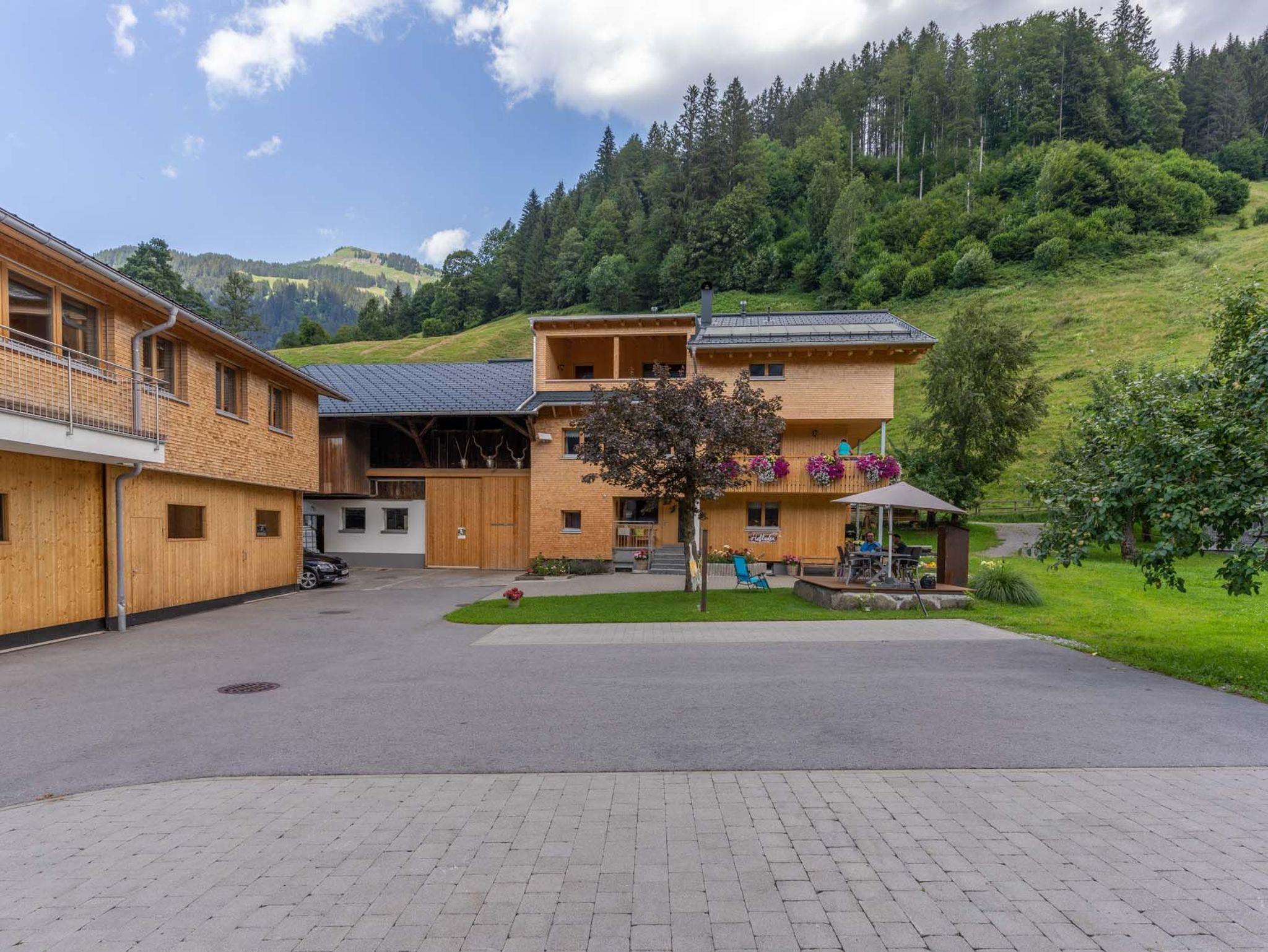 Wenn Sie es lieber gemütlich angehen wollen, unser gepflegter Hofplatz bietet sich an zum Spielen, Sitzen und Liegen, oder um einfach die Natur zu genießen. Sollten Sie Spaß im kühlen Nass bevorzugen: das beheizte Freibad von Schoppernau liegt wenige Gehminuten von unserem Haus entfernt.