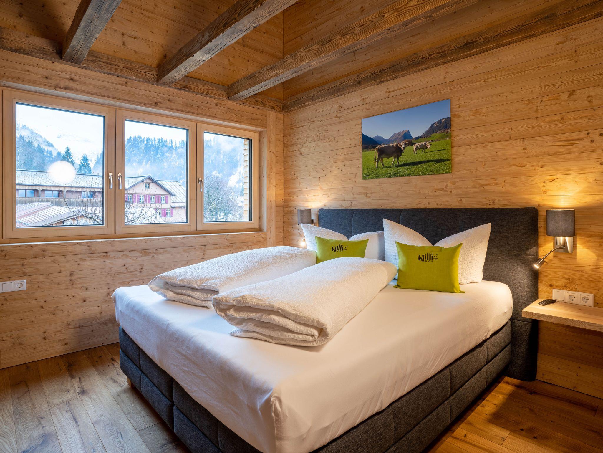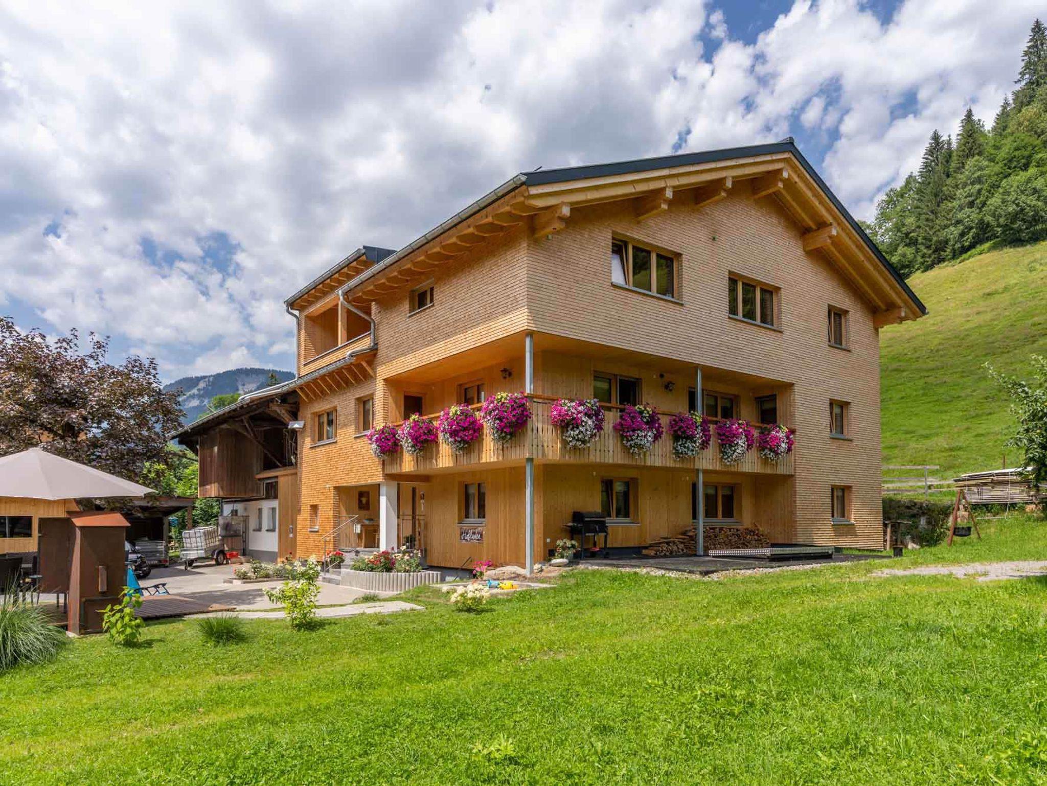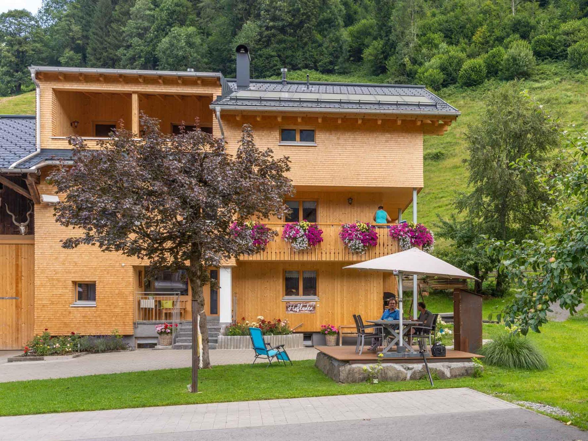 Wenn Sie es lieber gemütlich angehen wollen, unser gepflegter Hofplatz bietet sich an zum Spielen, Sitzen und Liegen, oder um einfach die Natur zu genießen. Sollten Sie Spaß im kühlen Nass bevorzugen: das beheizte Freibad von Schoppernau liegt wenige Gehminuten von unserem Haus entfernt.