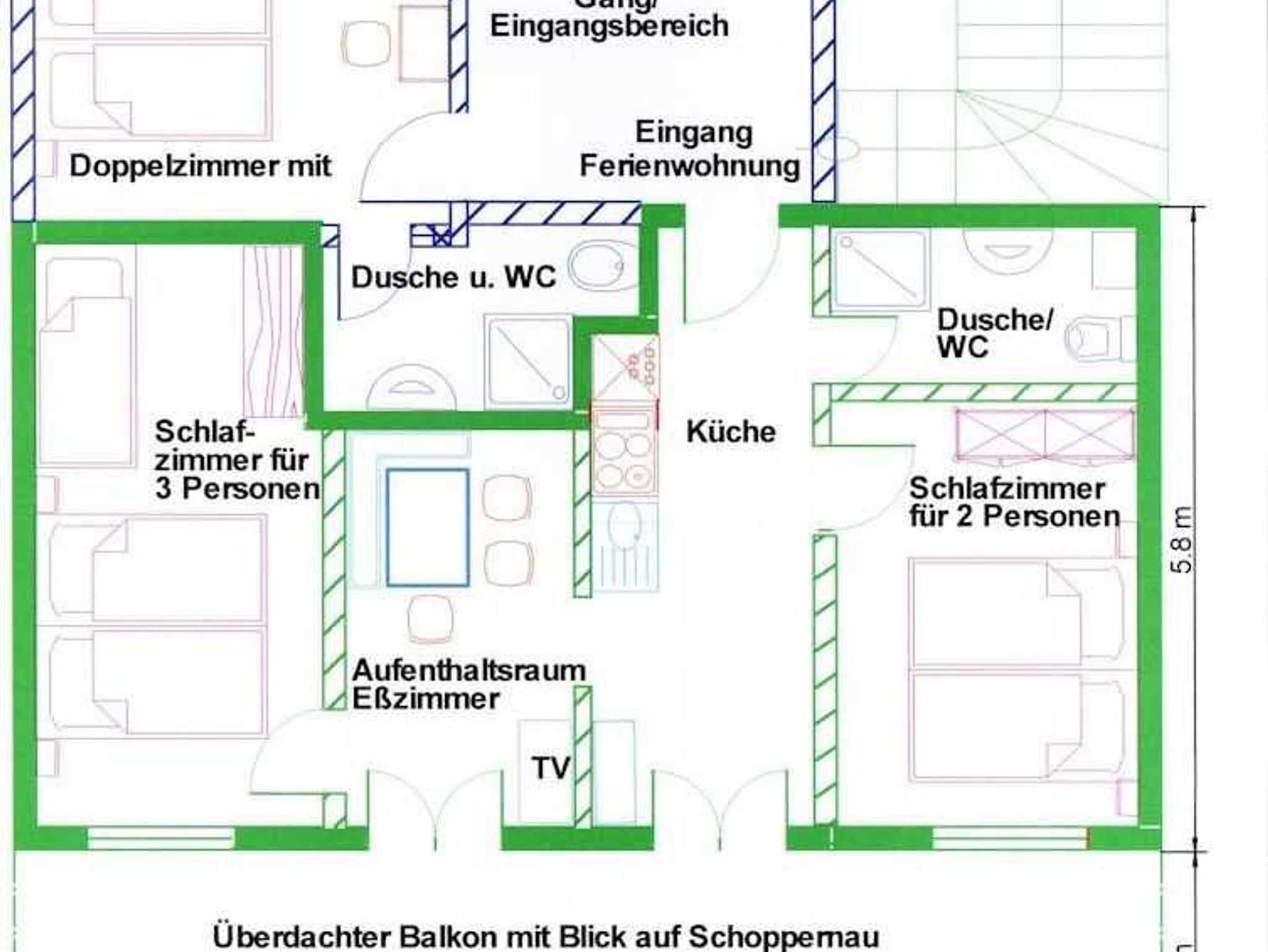 (renoviert 2009) mit 20 m² großem Balkon mit Blickrichtung Schoppernau - bestehend aus 2 getrennten Schlafzimmern (1 Doppel- und 1 Dreibettzimmer) 1 Flat-TV, Küche mit Geschirrspüler und Kühlschrank, Bad mit Dusche/WC; Achtung die Ausstattung ist nicht mit den neuen Apartments vergleichbar