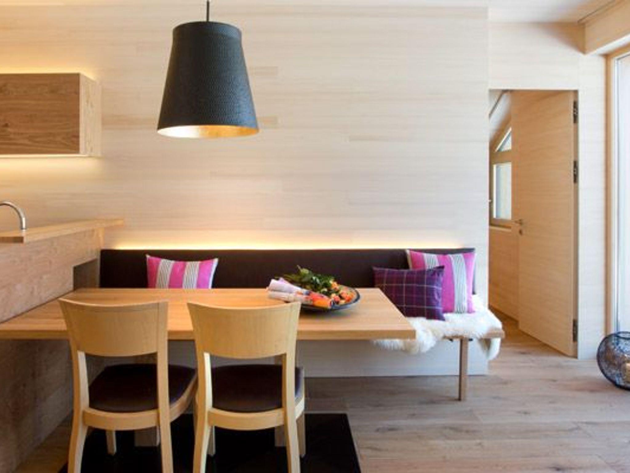Alle Apartments sind mit hochwertigen Holzböden (Eiche Parkett), Wandvertäfelungen aus heimischer Weißtanne, Decken aus heimischer Weißtanne und Lehmputz ausgestattet.