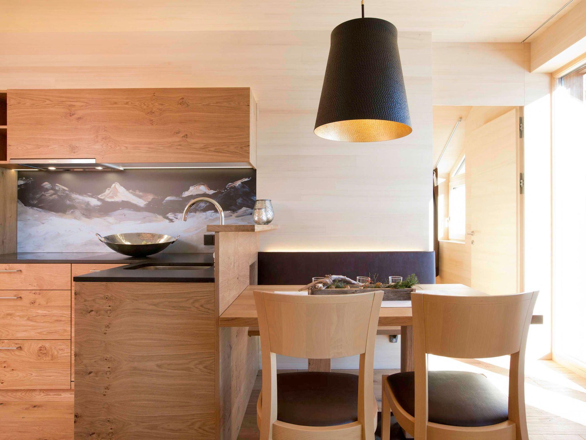 Alle Apartments sind mit hochwertigen Holzböden (Eiche Parkett), Wandvertäfelungen aus heimischer Weißtanne, Decken aus heimischer Weißtanne und Lehmputz ausgestattet.