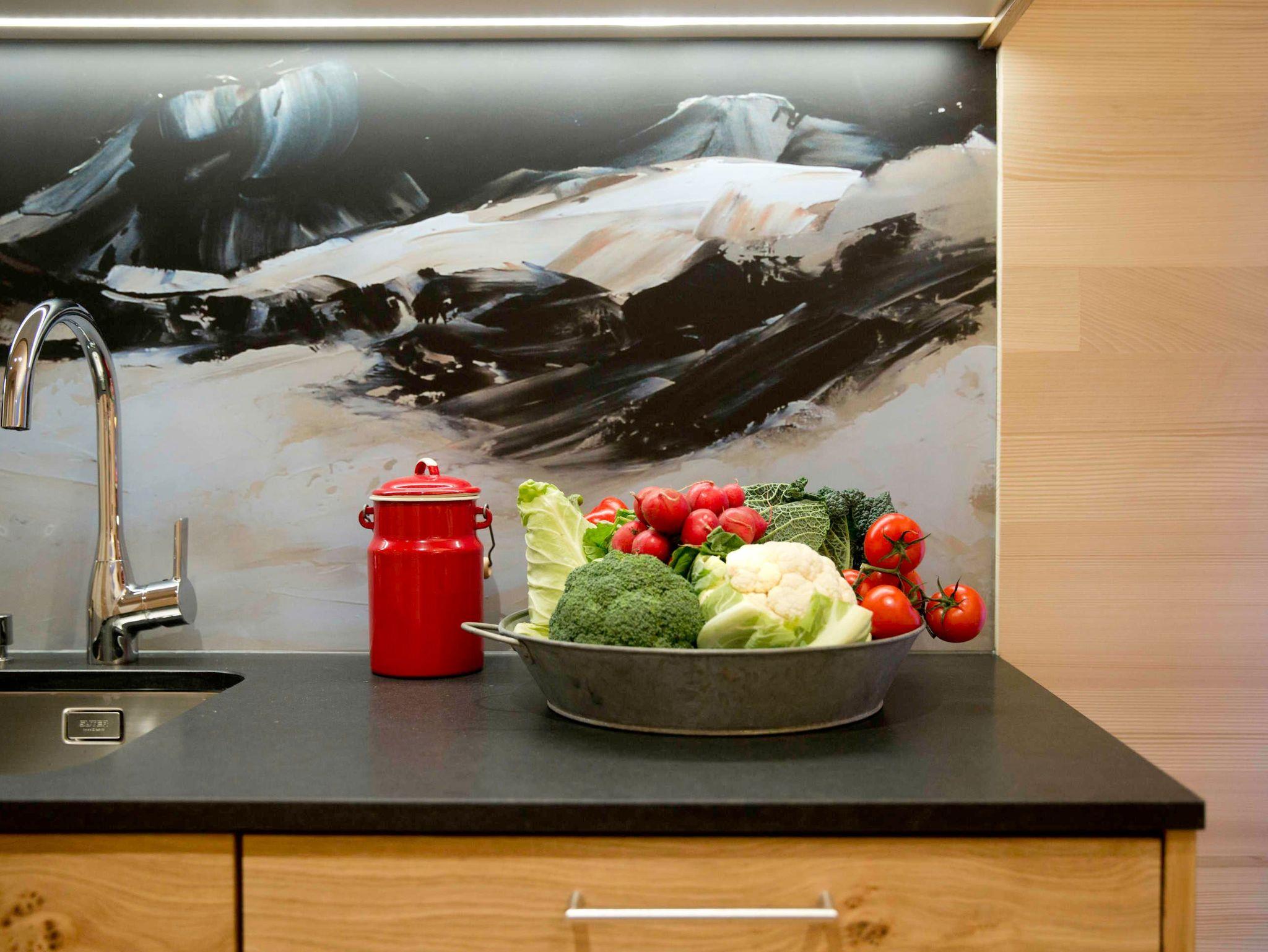 > Top ausgestattete Küche mit Cerankochfeld, Backofen, Geschirrspüler, Kühlschrank mit Gefrierfach; Nespresso-Kapselmaschine, Filterkaffeemaschine, Toaster, Wasserkocher, Mixer