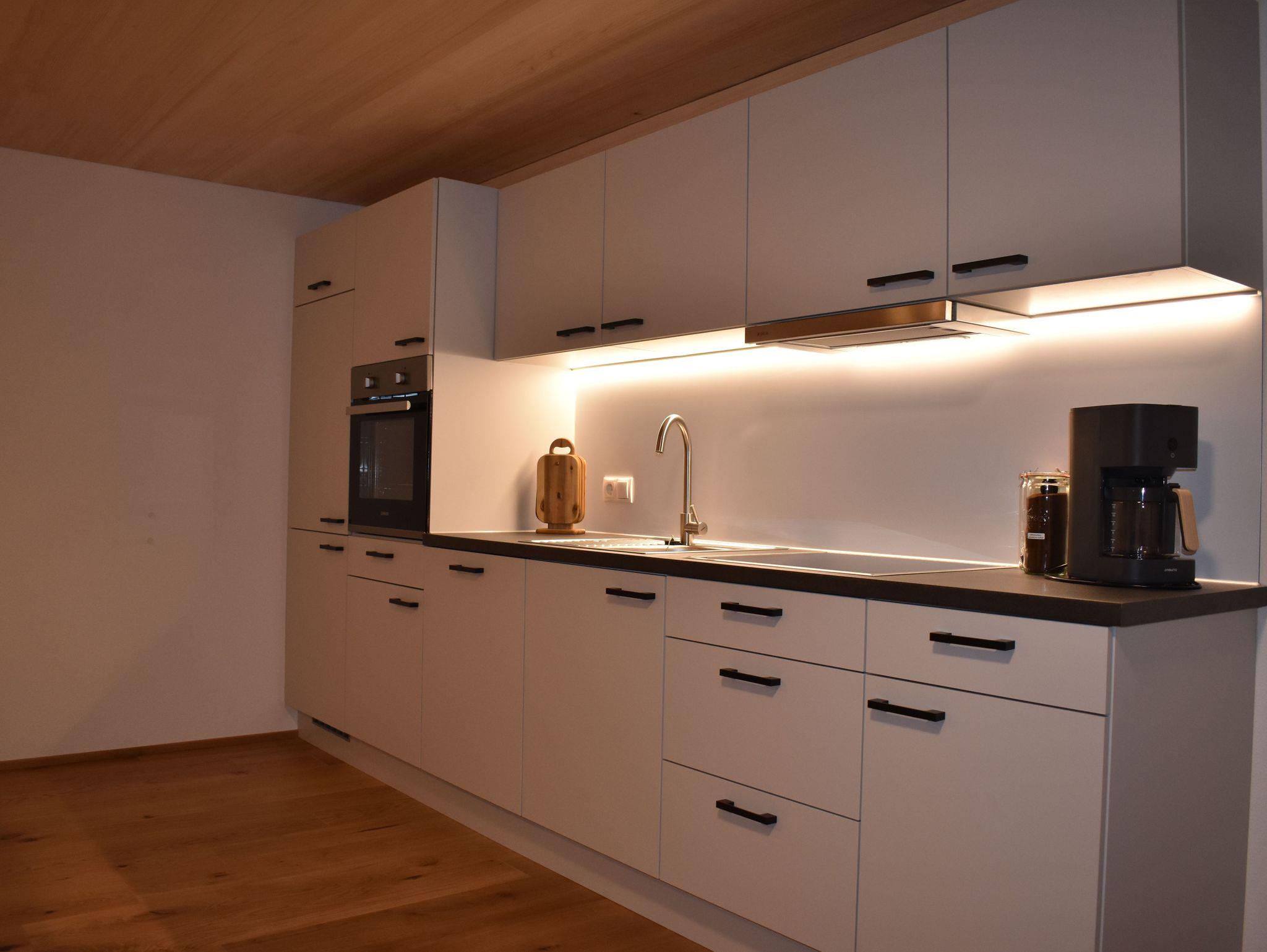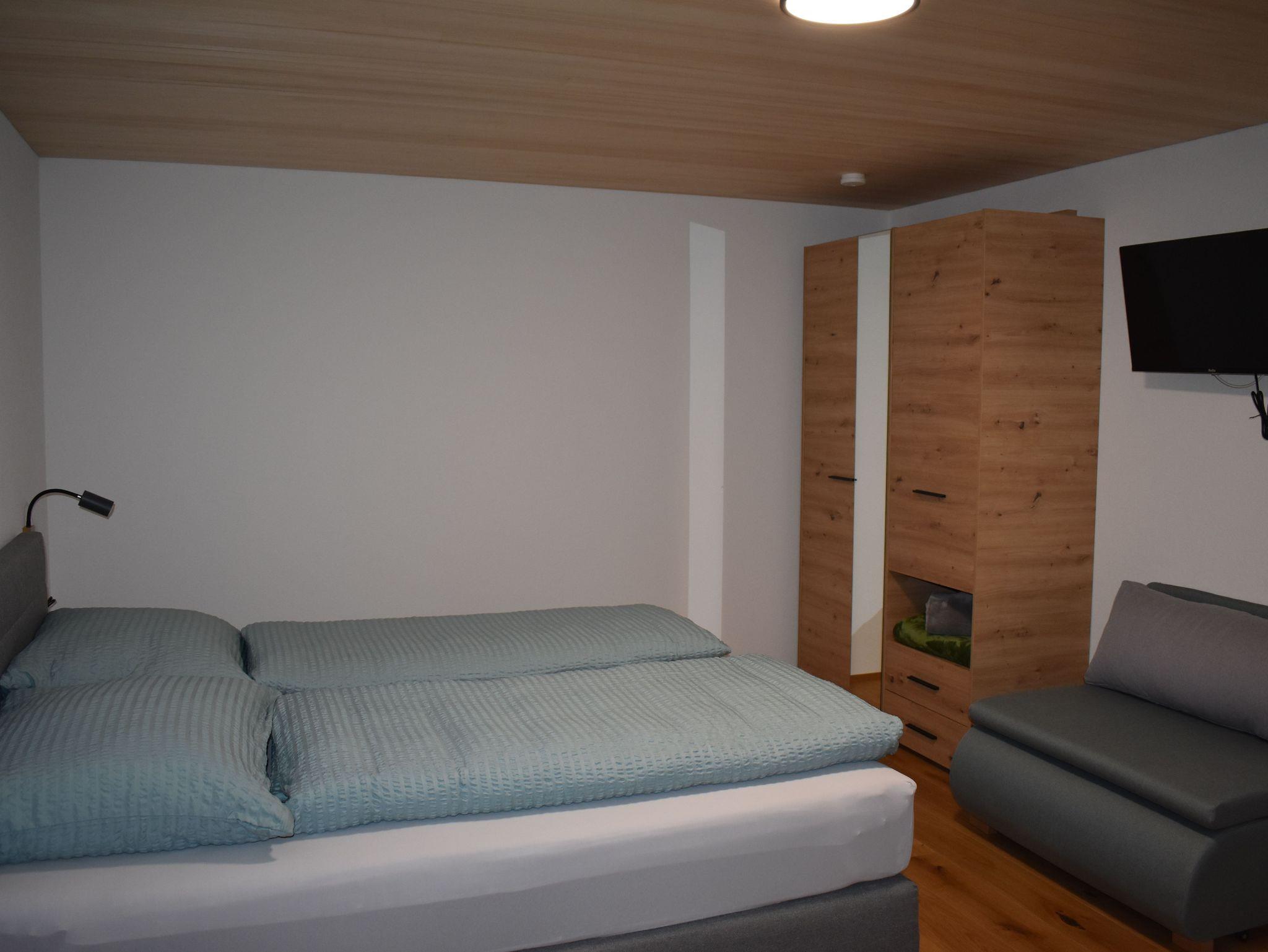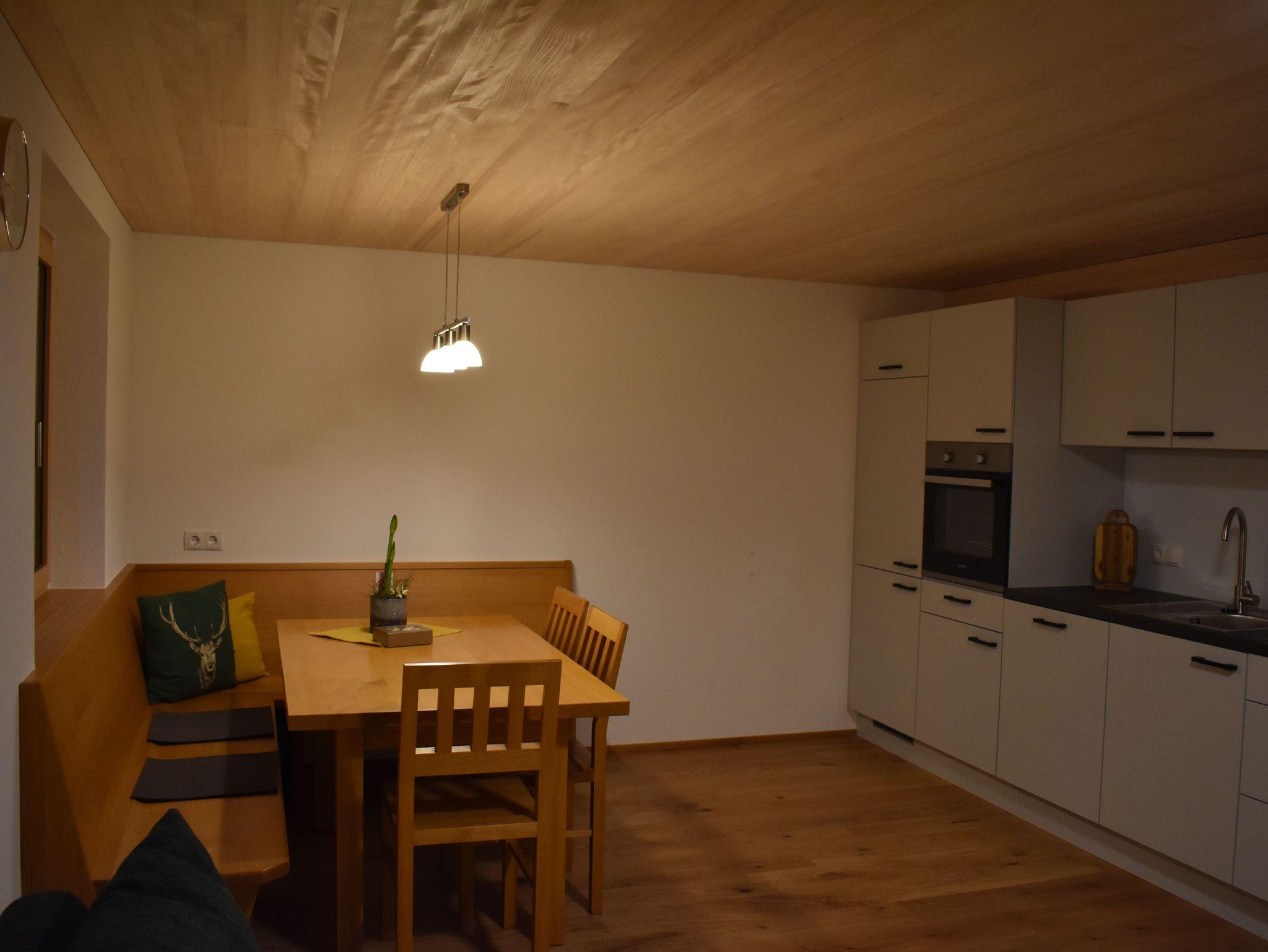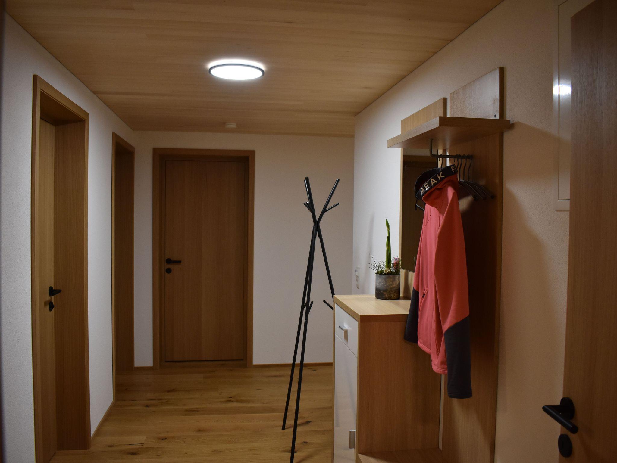 Die Wohnung verfügt über einen komplett ausgestatteten Wohn-Ess-Bereich mit Ausziehcouch und TV. 1 Schlafzimmer mit Doppelbett und TV, 1 Schlafzimmer mit Doppelbett mit zusätzlichem Einzelbett und TV, 1 Bad mit Dusche inklusive Föhn und Handtücher, 1 separates WC. Viel Platz bietet auch noch der Flur mit Garderobe. Im Vorraum befindet sich der Ski und Schuhraum. Kostenloses Wlan und eine E-Bike Lademöglichkeit sind vorhanden. Kinderbett und Hochstuhl stellen wir auf Anfrage zur Verfügung.