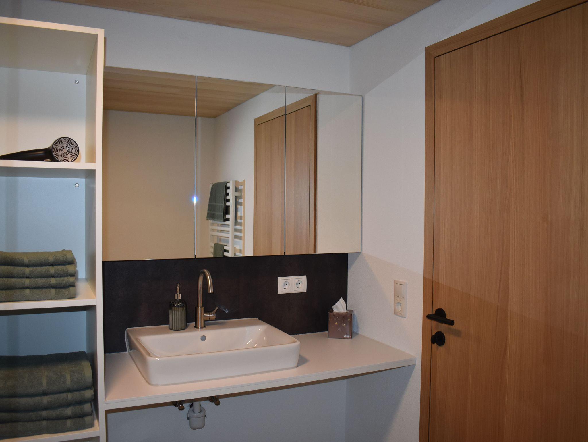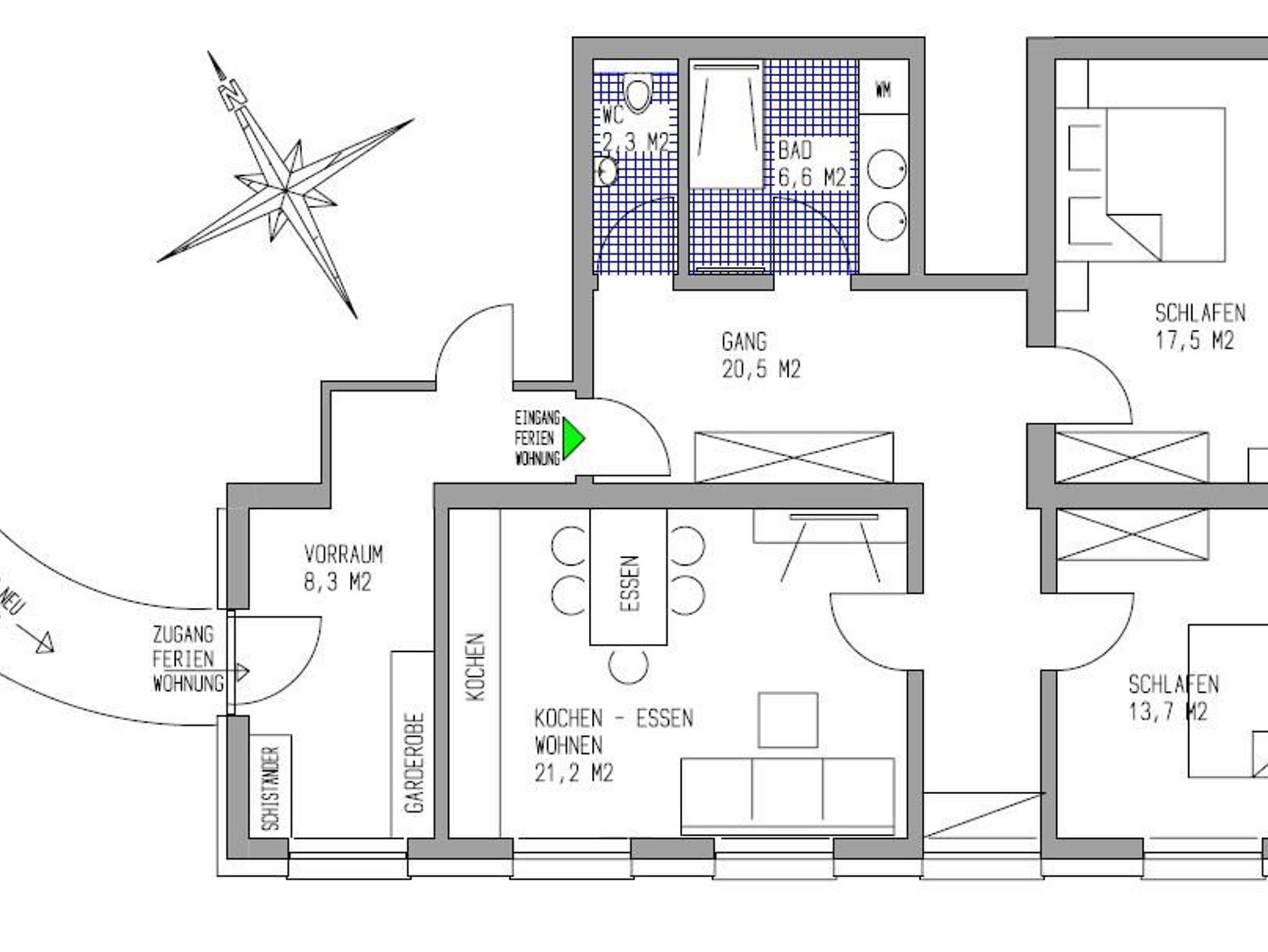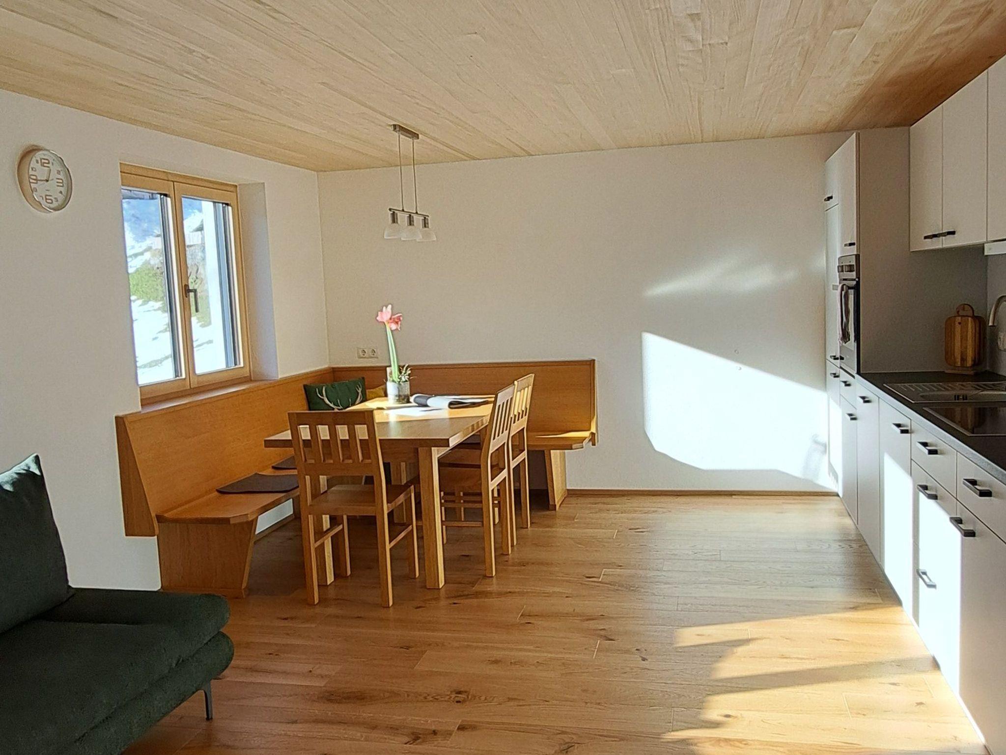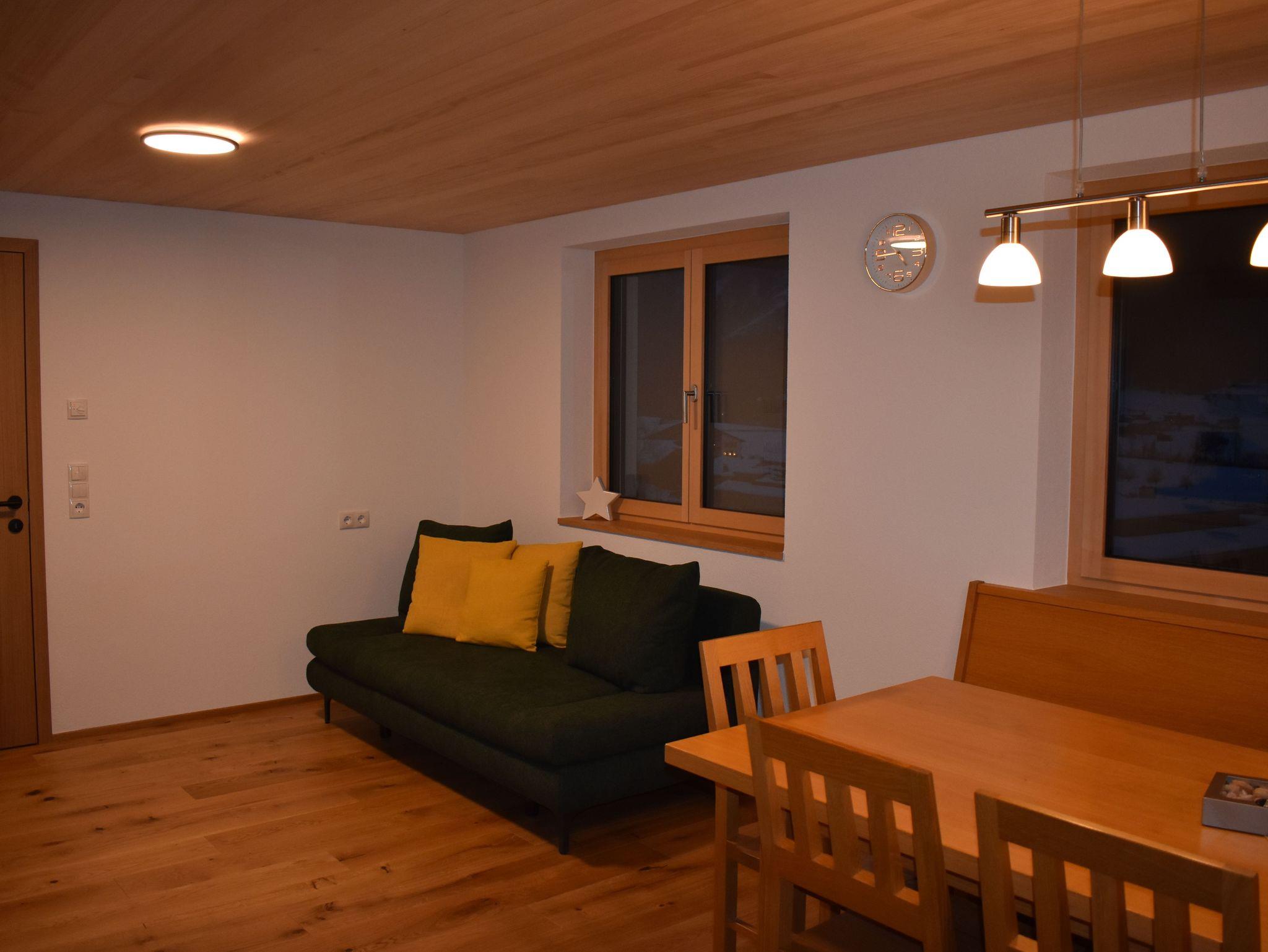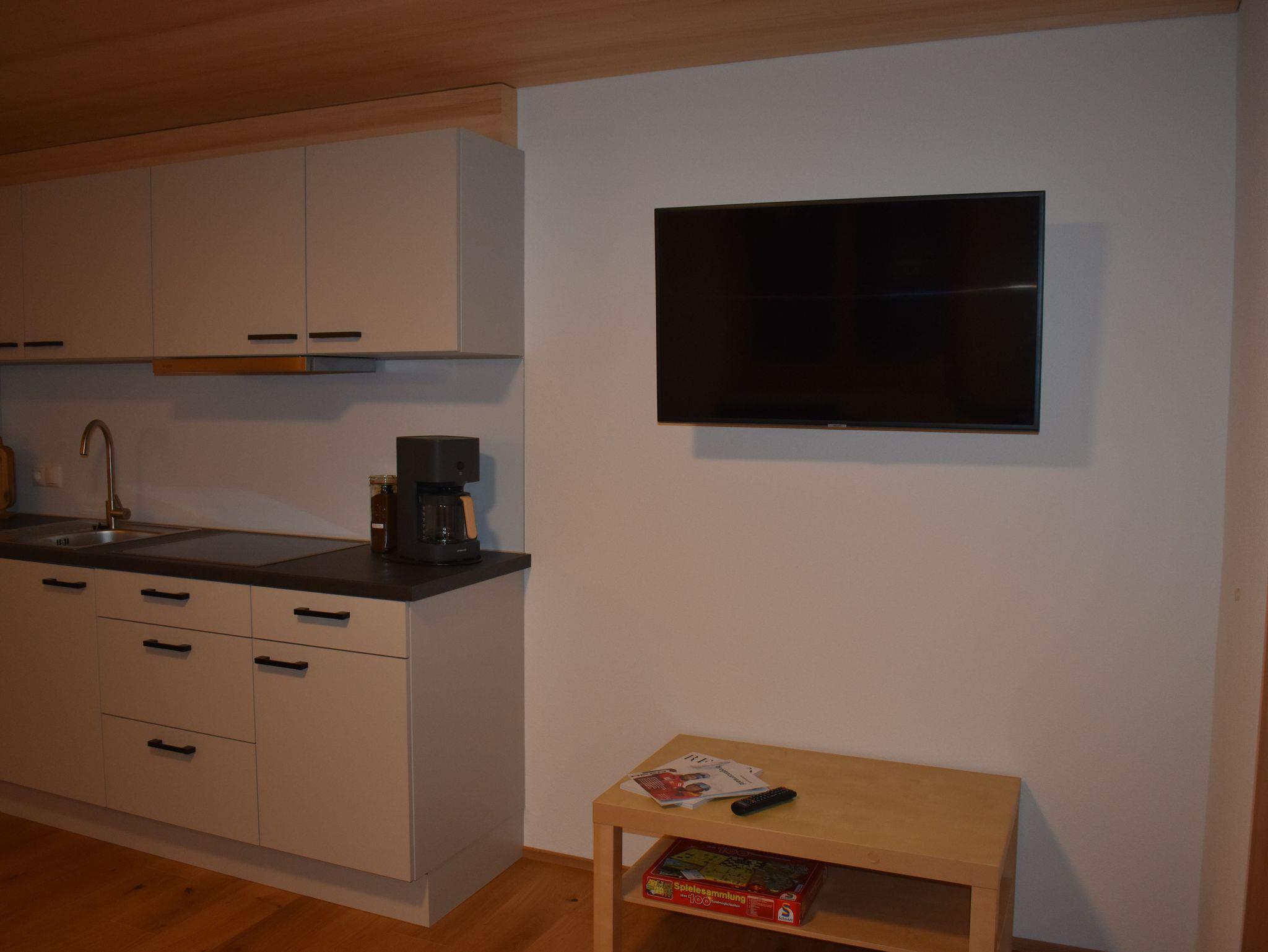 Die Wohnung verfügt über einen komplett ausgestatteten Wohn-Ess-Bereich mit Ausziehcouch und TV. 1 Schlafzimmer mit Doppelbett und TV, 1 Schlafzimmer mit Doppelbett mit zusätzlichem Einzelbett und TV, 1 Bad mit Dusche inklusive Föhn und Handtücher, 1 separates WC. Viel Platz bietet auch noch der Flur mit Garderobe. Im Vorraum befindet sich der Ski und Schuhraum. Kostenloses Wlan und eine E-Bike Lademöglichkeit sind vorhanden. Kinderbett und Hochstuhl stellen wir auf Anfrage zur Verfügung.