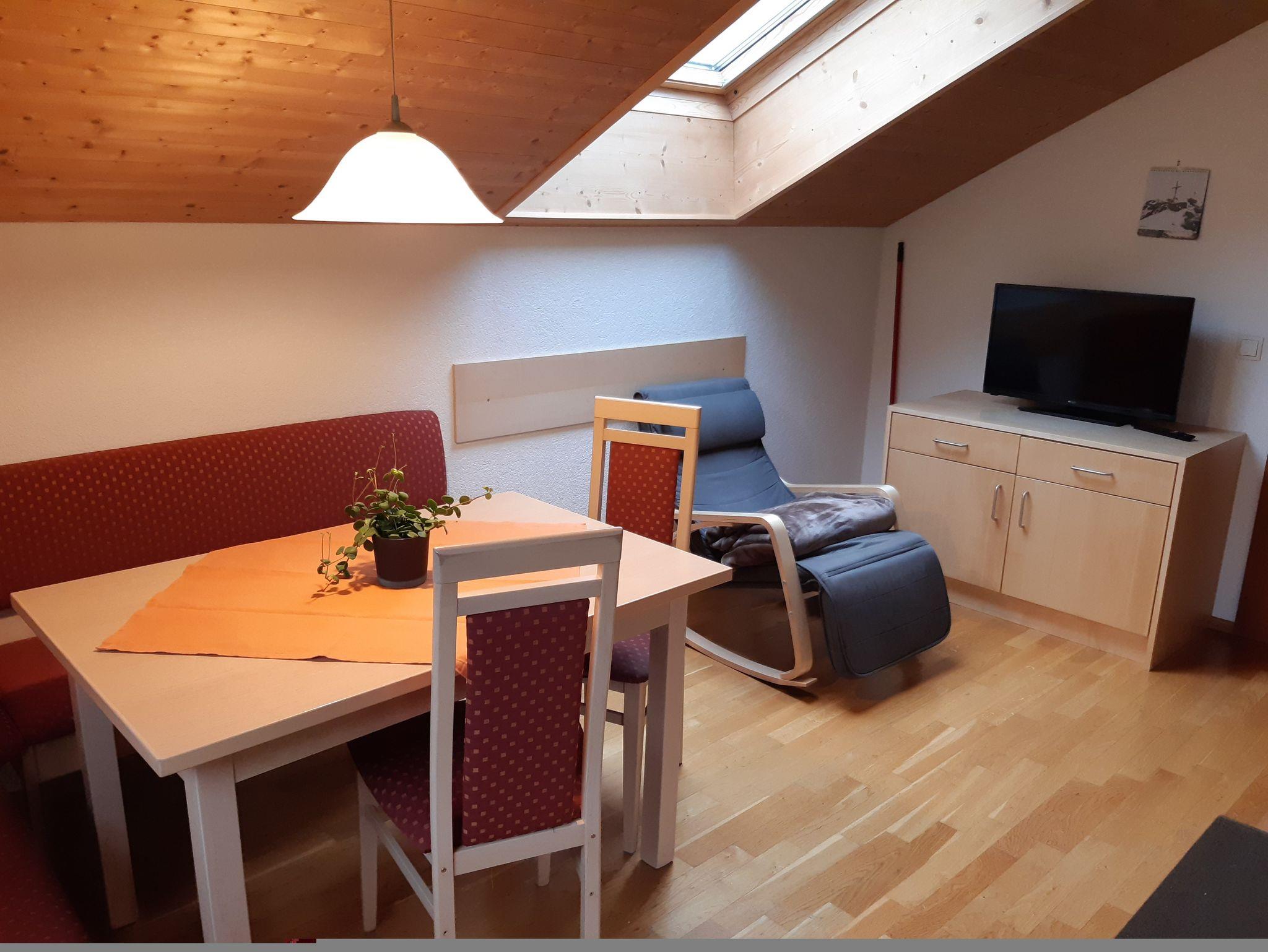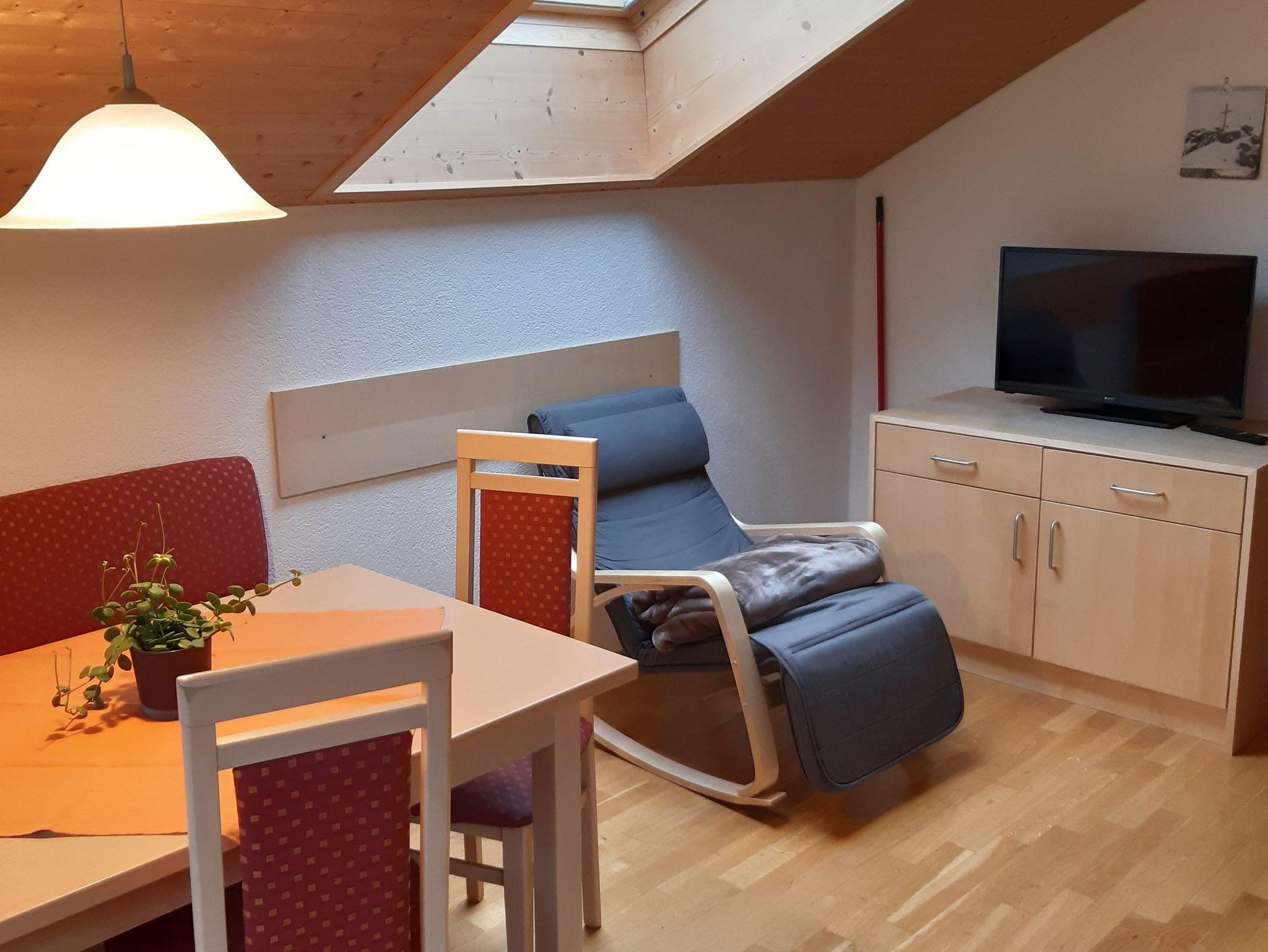 Unsere Wohnung Dorfblick verfügt über eine helle Wohnküche mit Fernsehsessel, separates Schlafzimmer, Dusche/WC, SAT-TV mit Flachbildschirm, kostenloses WLAN, und Balkon mit herrlichem Ausblick auf Schoppernau.