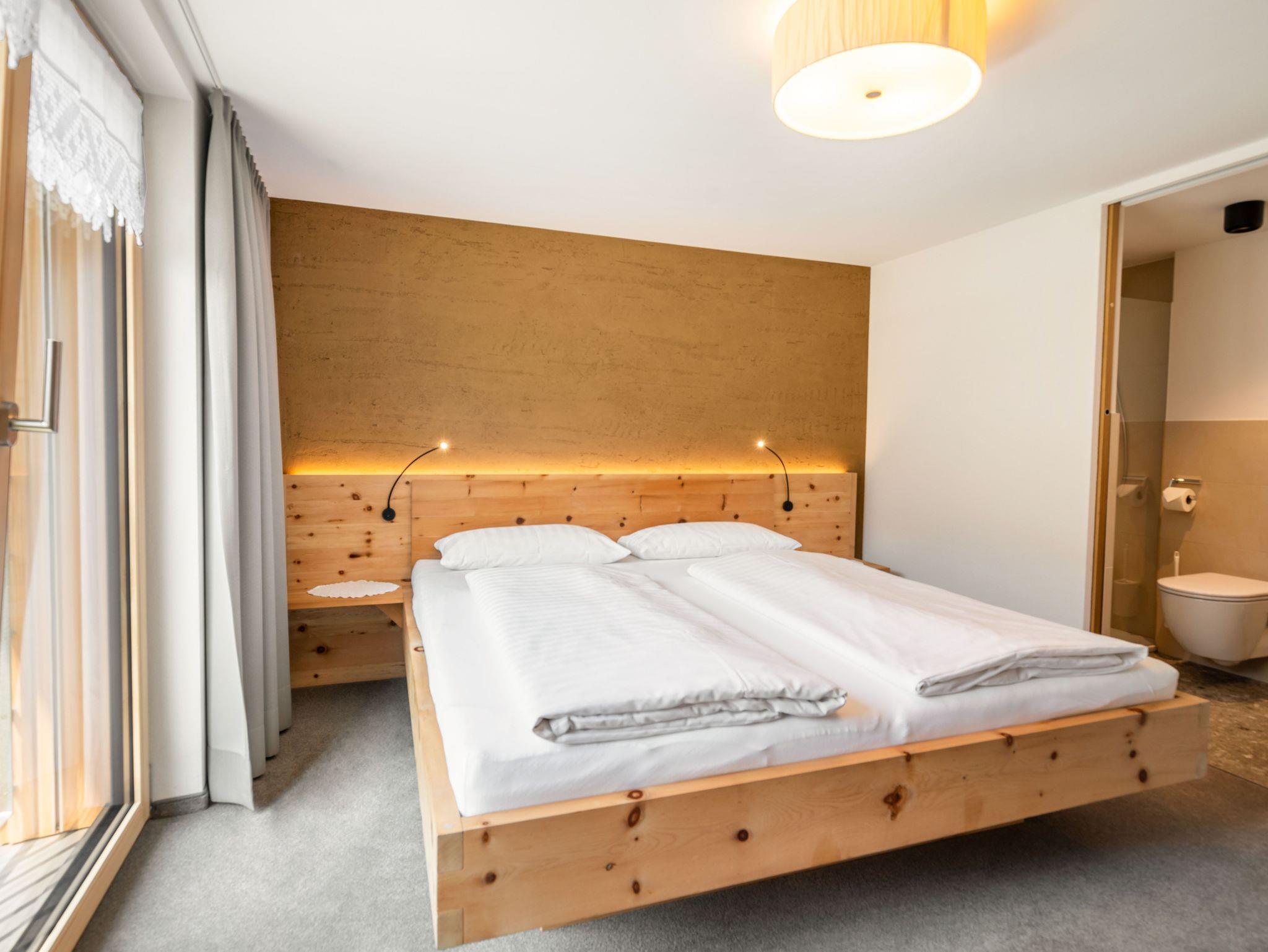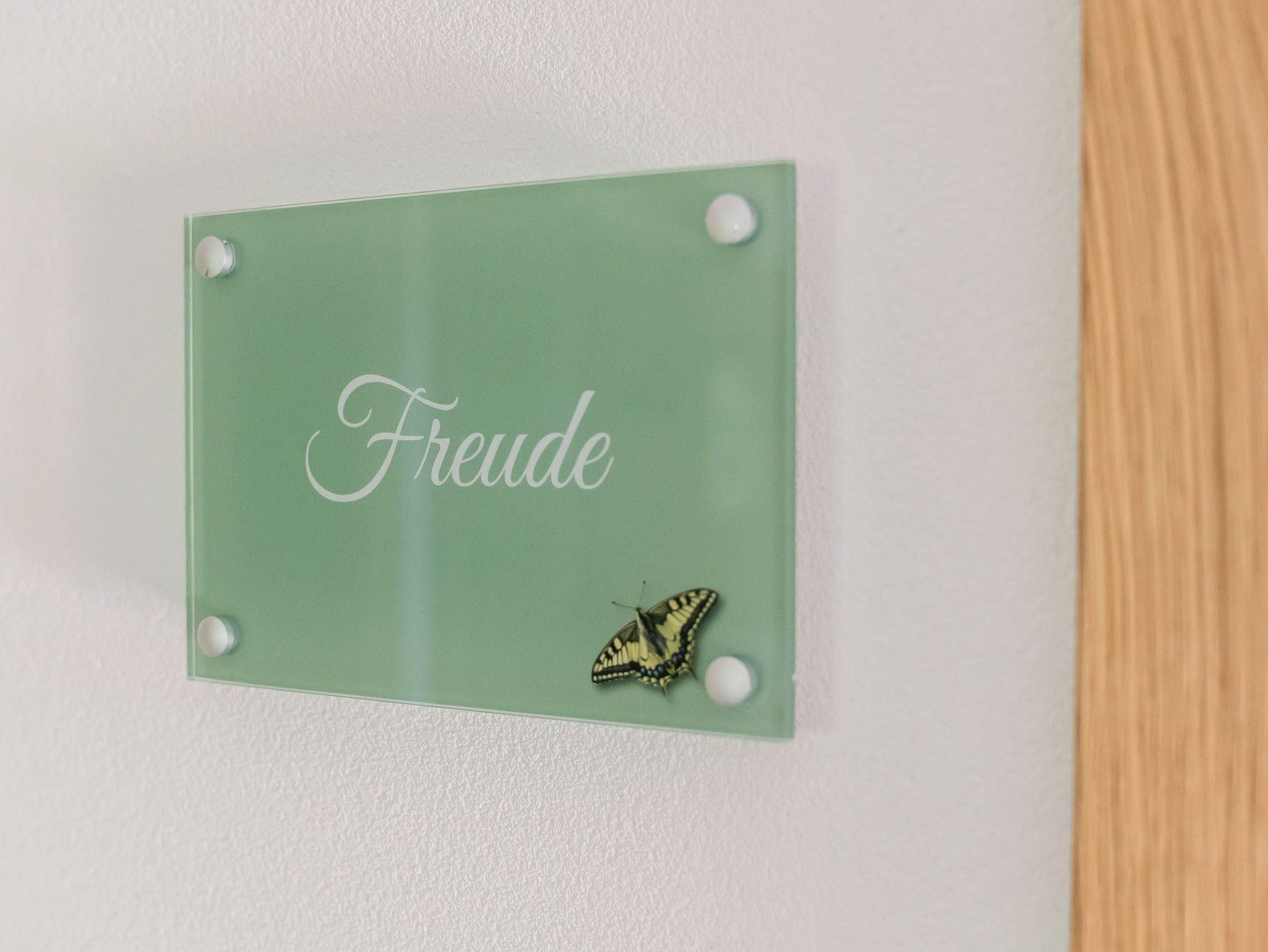 Das Zimmer Freude kann zu jeder Ferienwohnung dazugebucht werden, falls in der jeweiligen Wohnung zu wenig Platz ist. Es ist ein helles Doppelzimmer mit Dusche und WC.