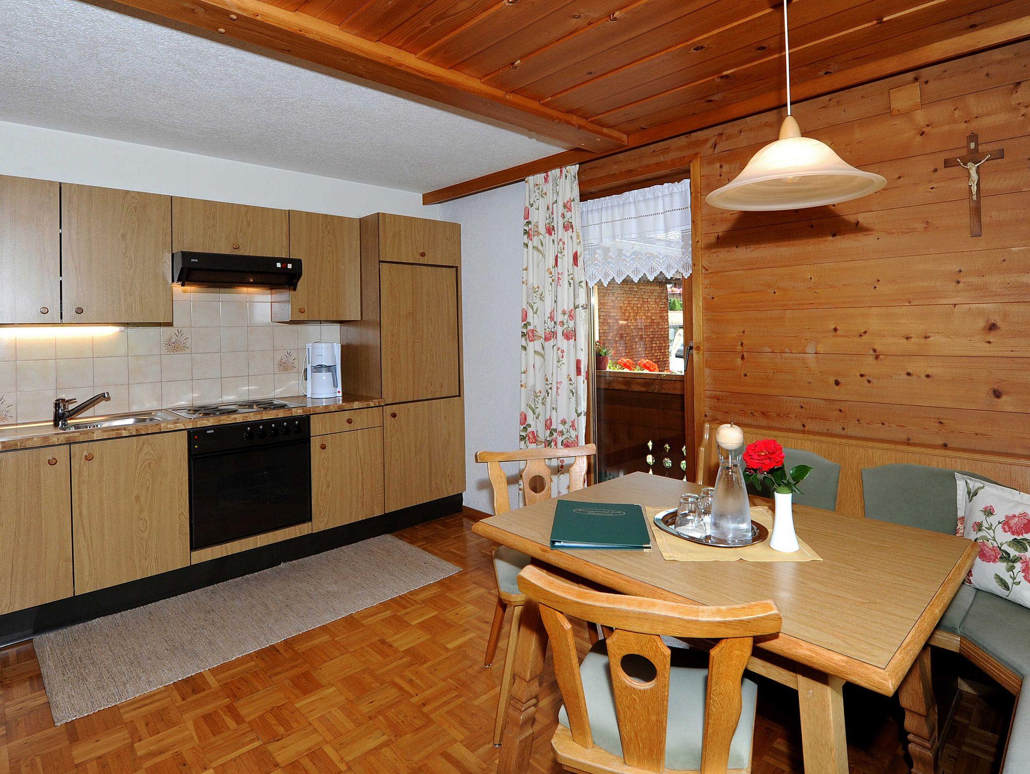 Unsere Ferienwohnung, sehr ruhig mit wunderbarem Blick zur Künzelspitze und ins Grüne, deshalb ist unsere Wohnung bei unseren Stammgästen seit Jahren sehr beliebt, da auch ein Balkon mit Sitzgelegenheit im Stil des Bregenzer Waldes zur alleinigen Nutzung während Ihres Aufenthaltes bei uns zur Verfügung steht.